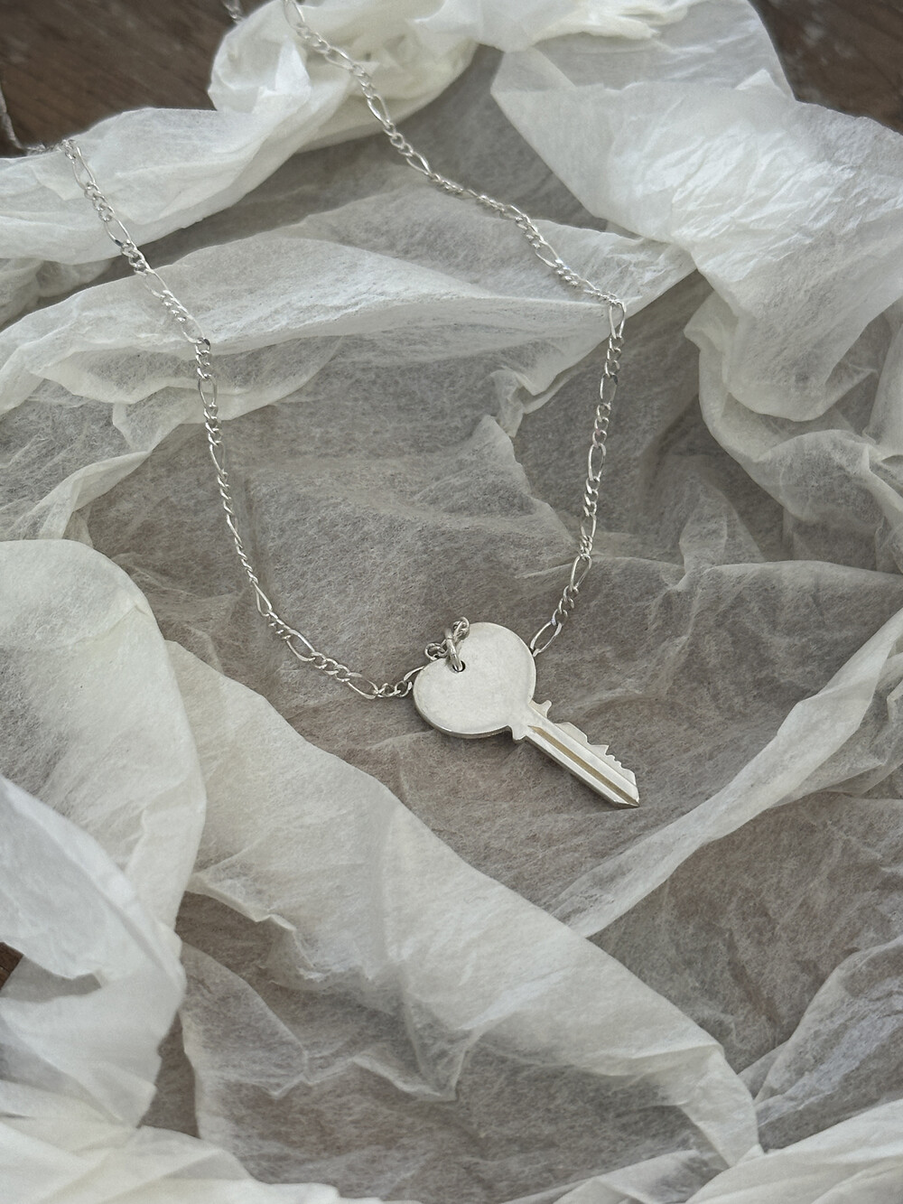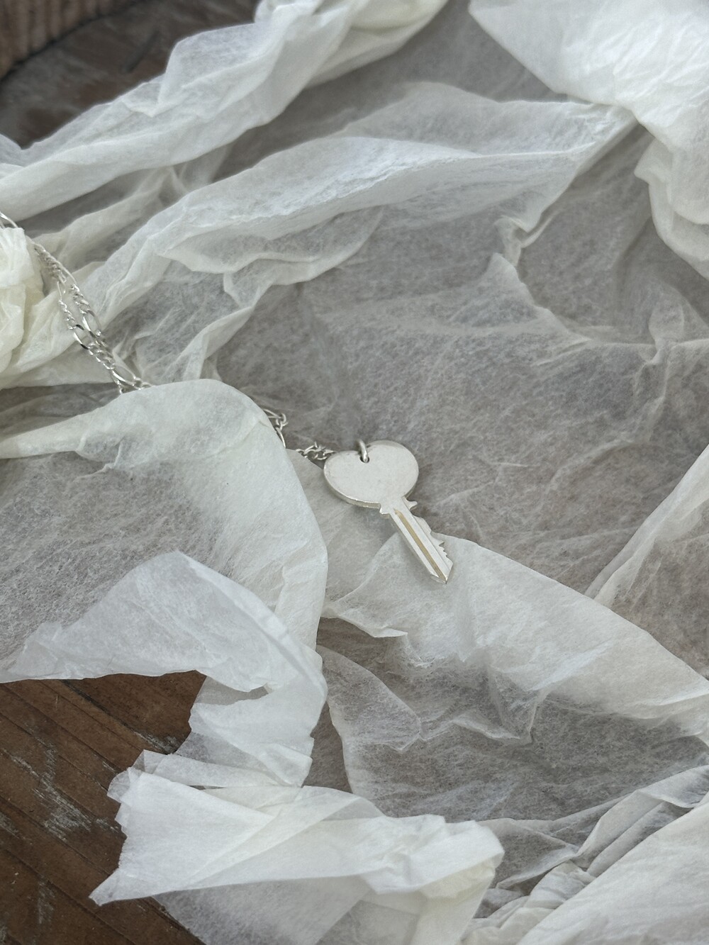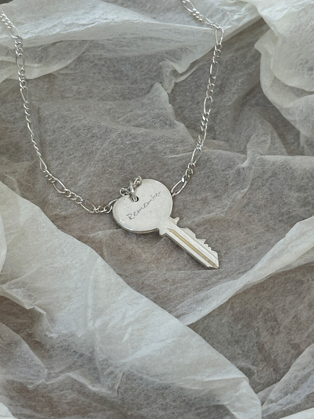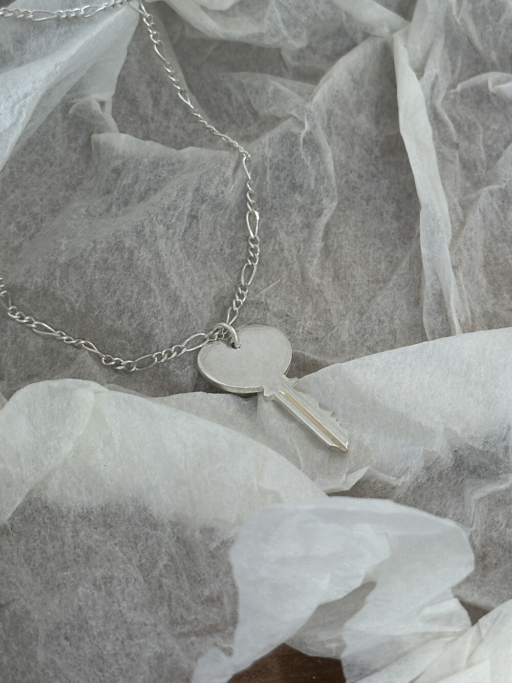 Silver heart get lucky key necklace : 실버 하트 겟 럭키 키 목걸이