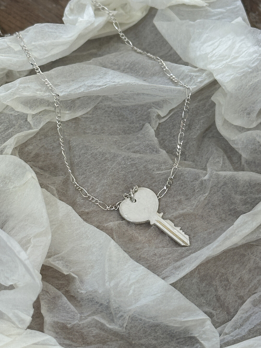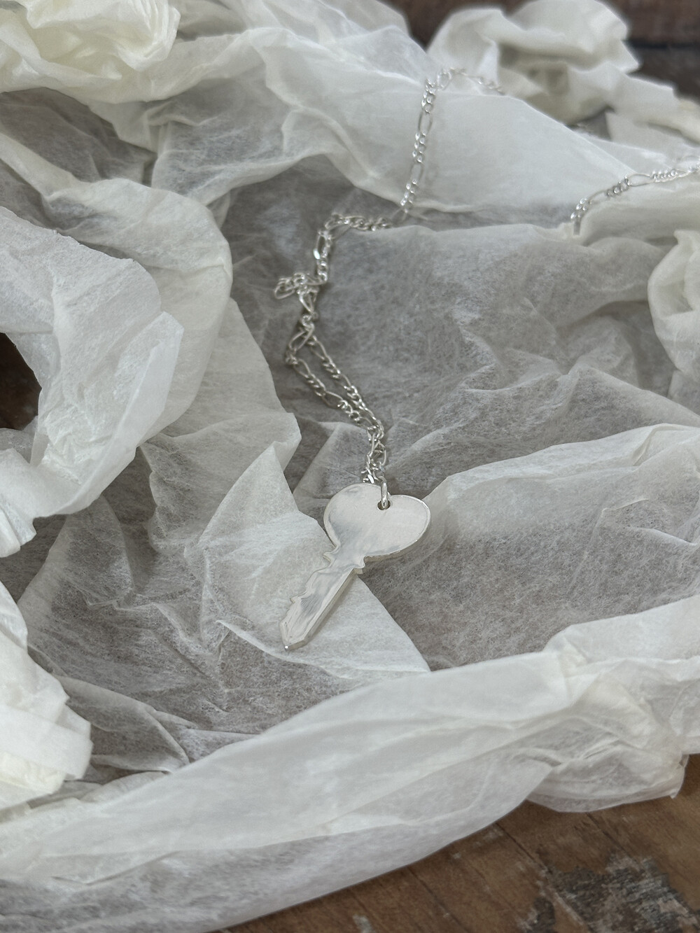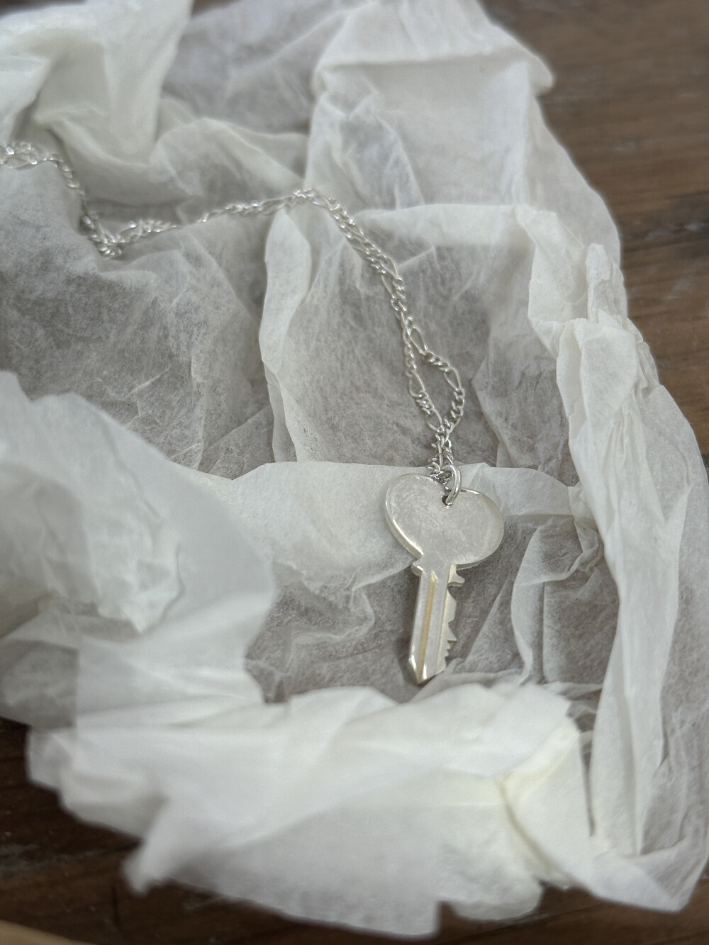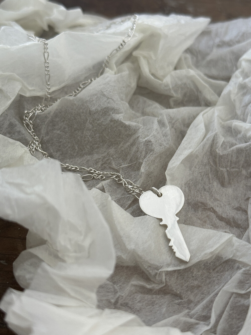 Silver heart get lucky key necklace : 실버 하트 겟 럭키 키 목걸이