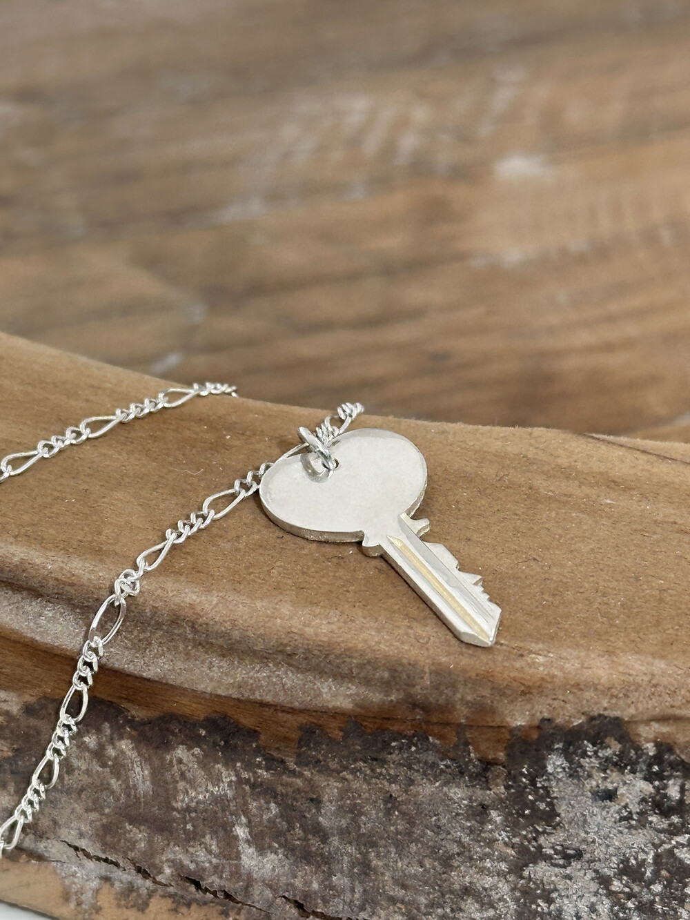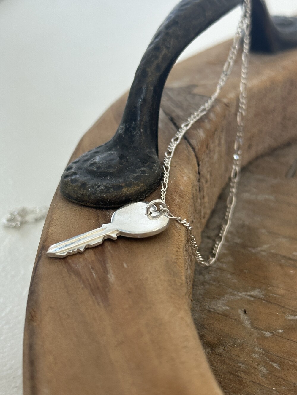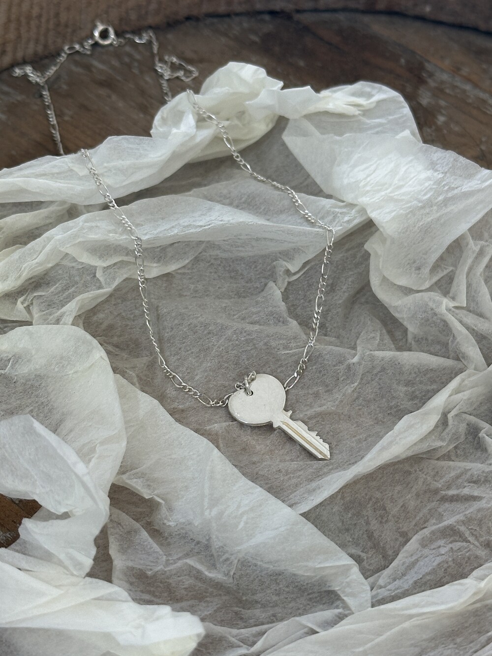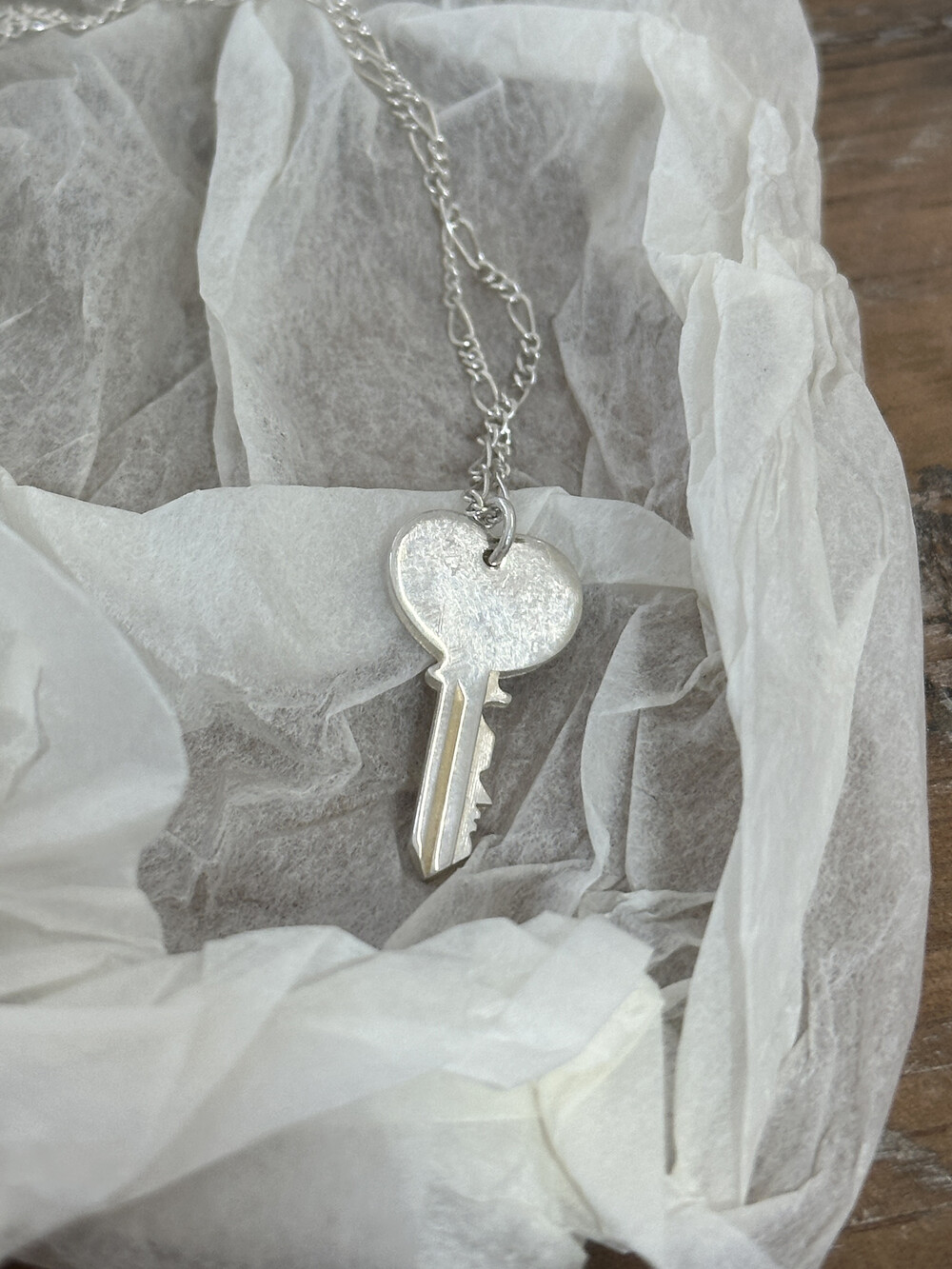 Silver heart get lucky key necklace : 실버 하트 겟 럭키 키 목걸이