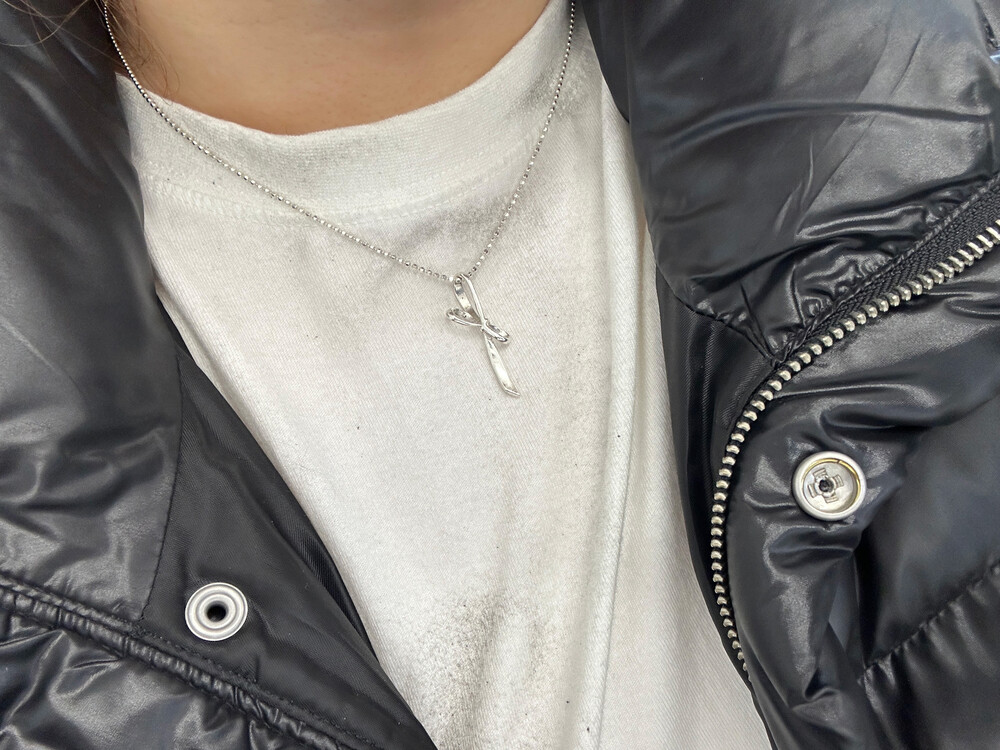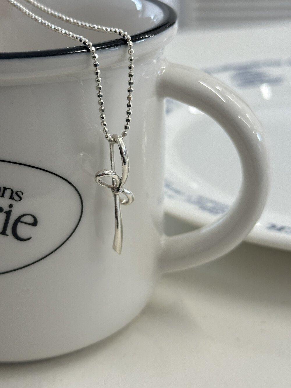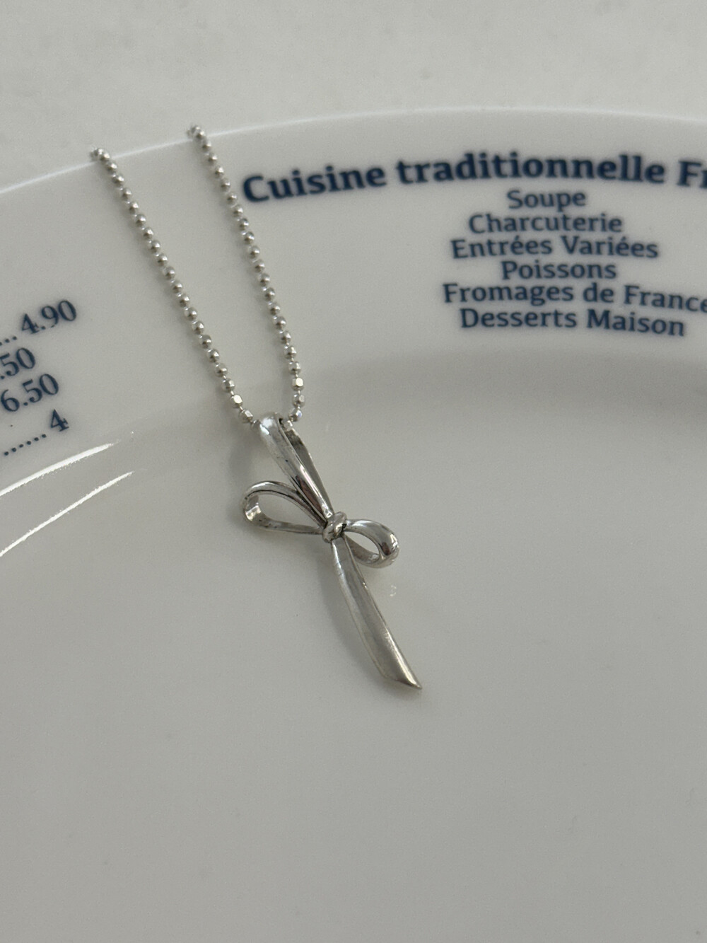 silver ballerina ribbon necklace 발레리나 리본 목걸이