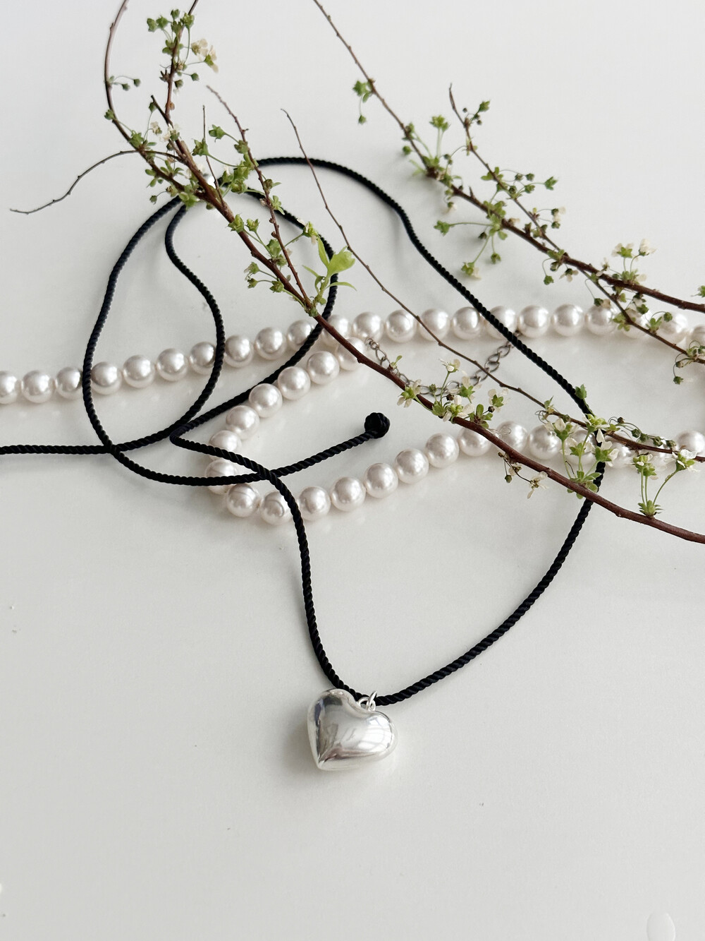 실버 블랙 코튼 매직 하트 목걸이