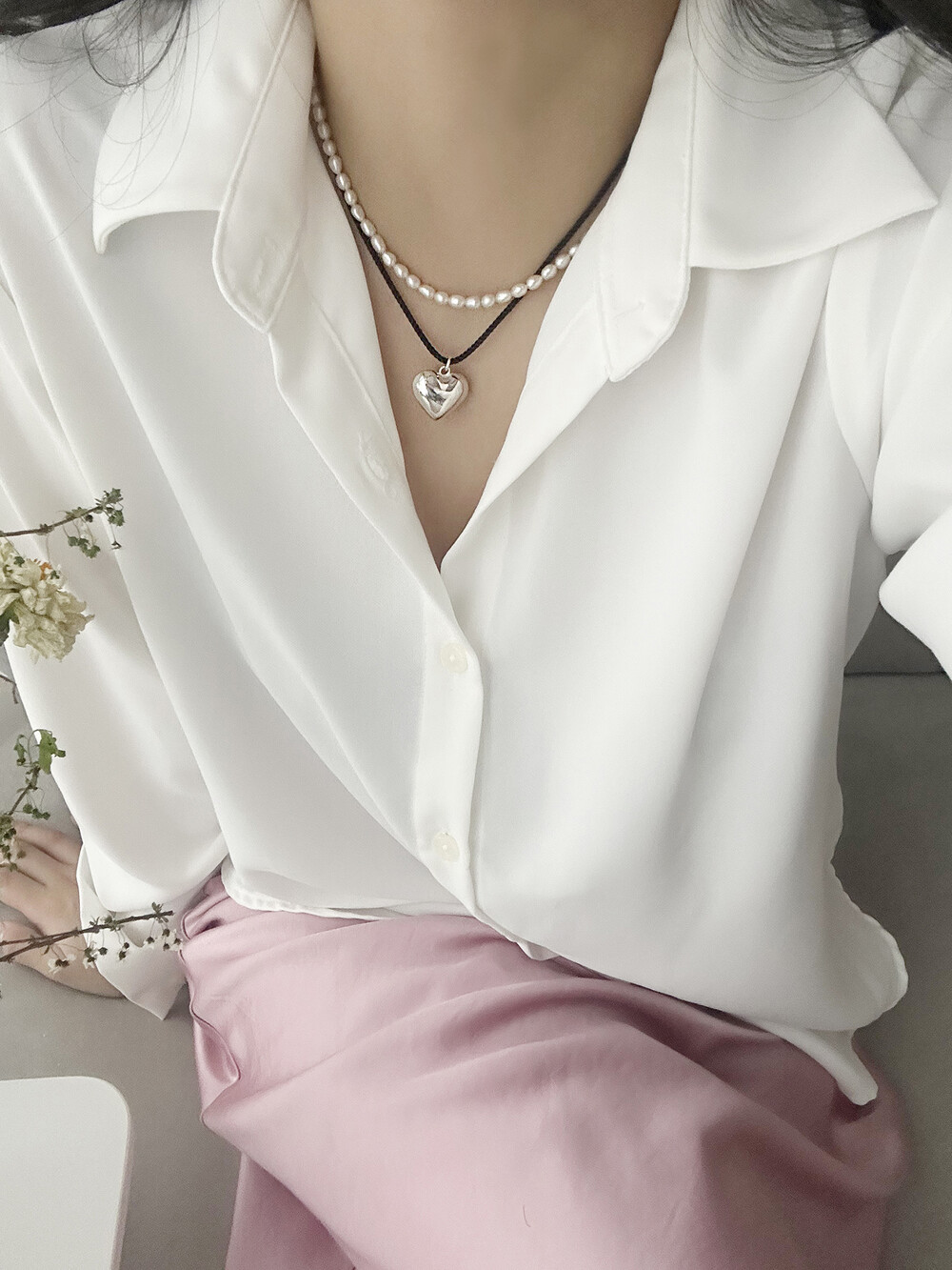 4mm 밥풀 담수 진주 목걸이와 코디