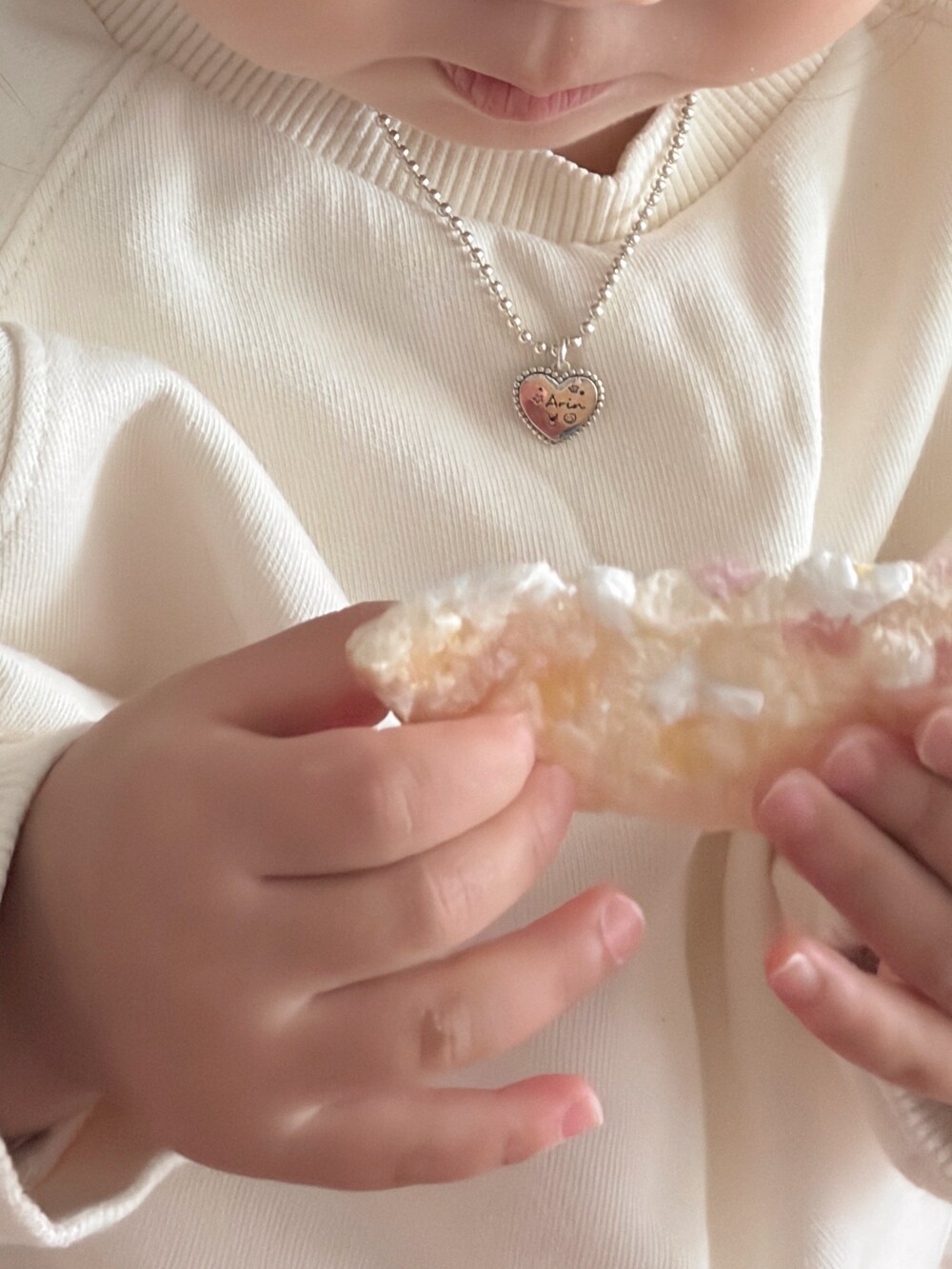 하트 사이즈가 미니멀하고 가벼워 아이들이 착용 하기에 불편하지 않아
