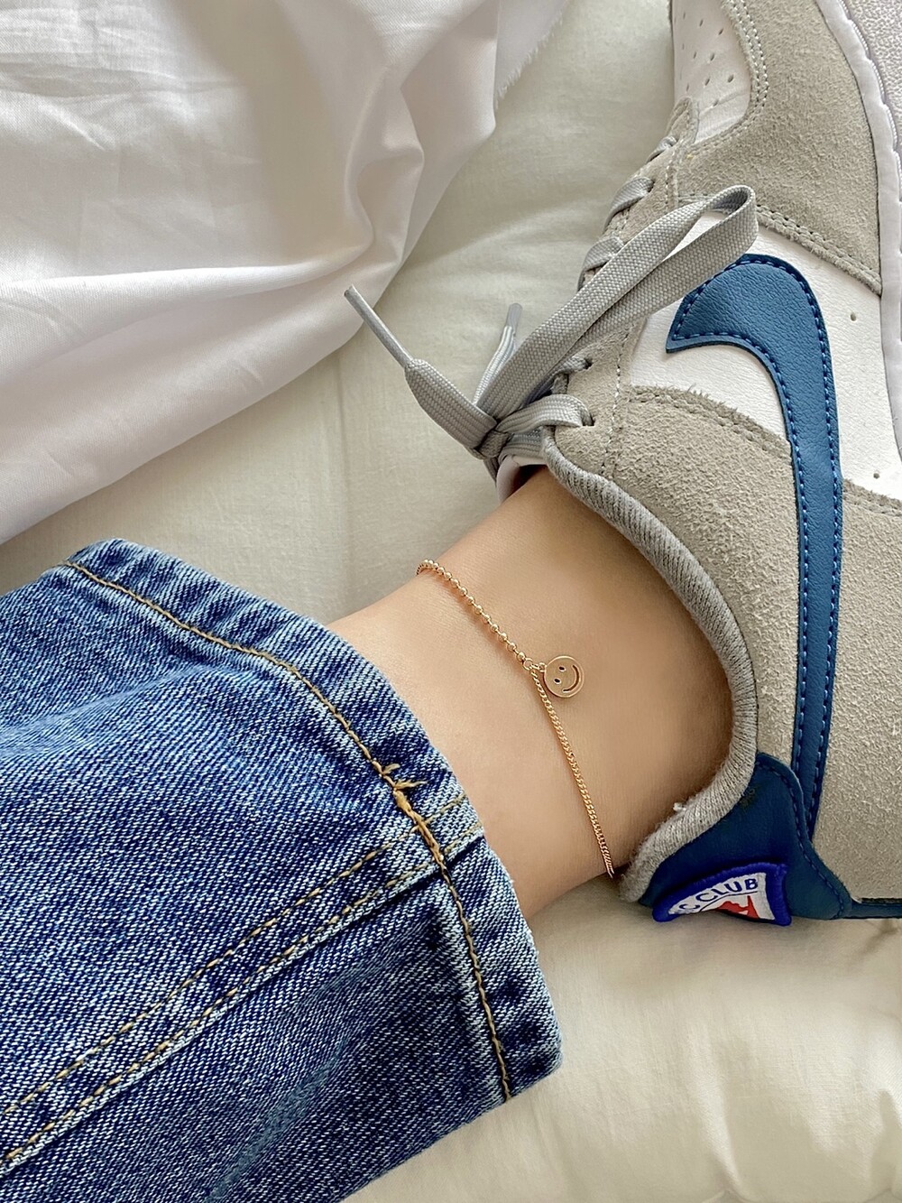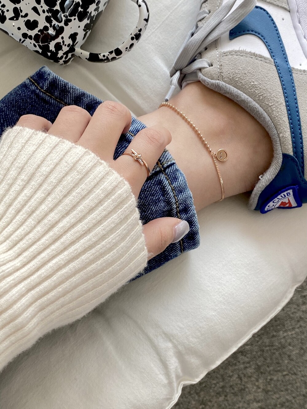 14K 18K 스마일 볼 체인 발찌 팔찌