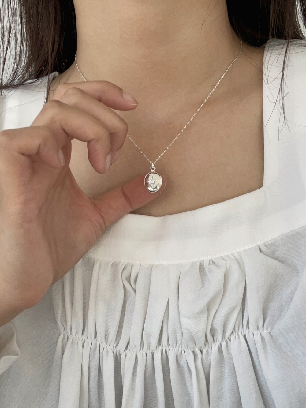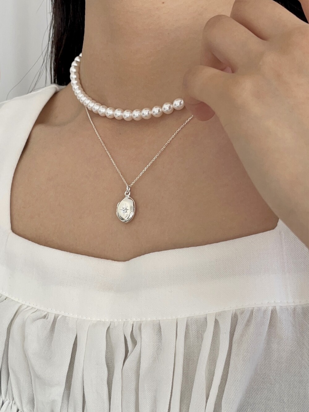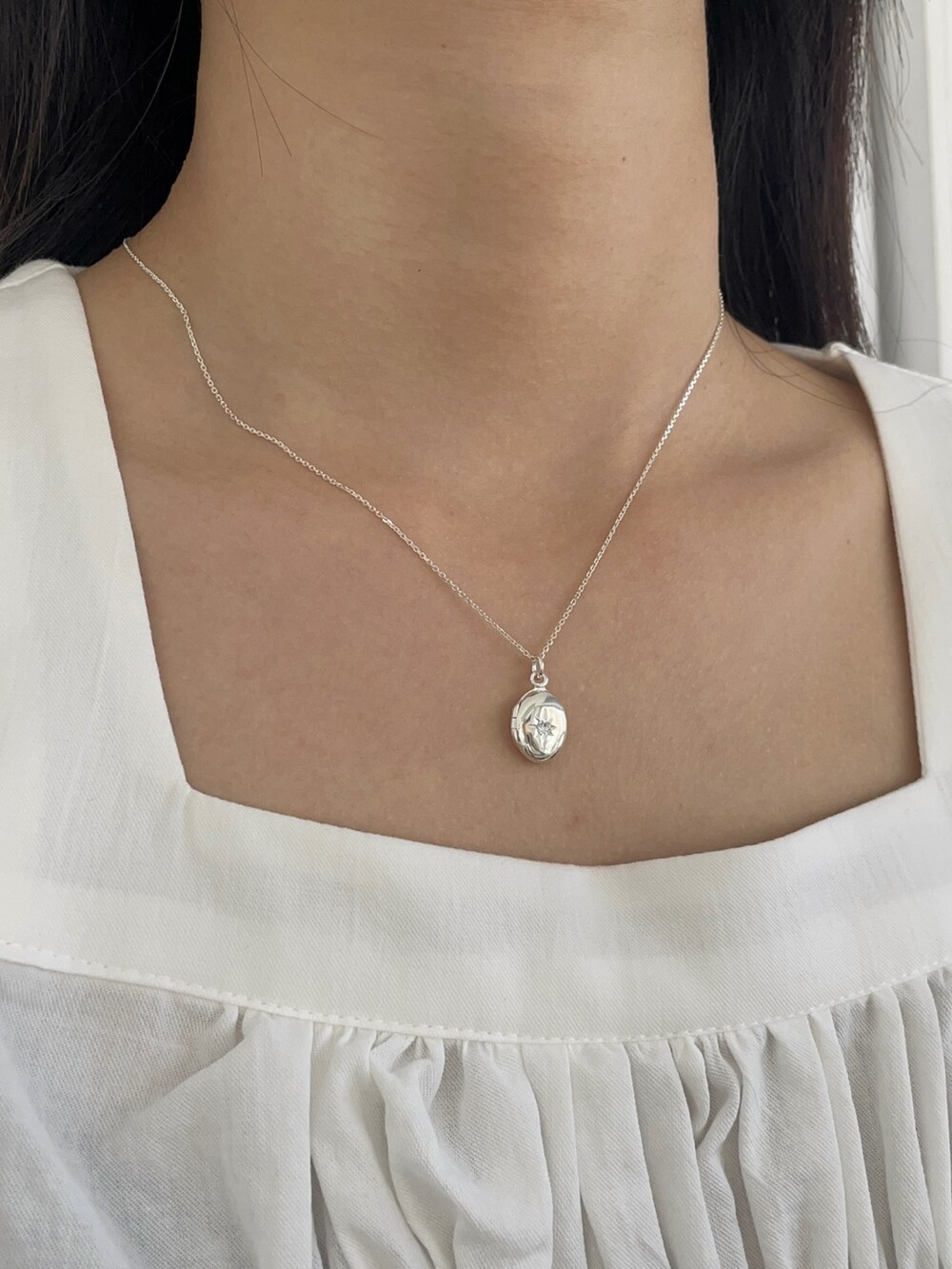 실버 별조각 이니셜 각인 로켓 목걸이