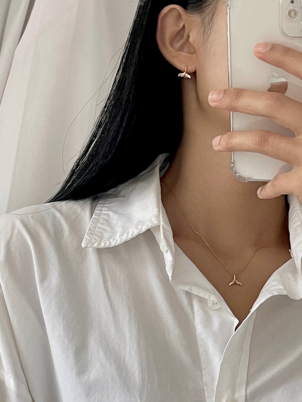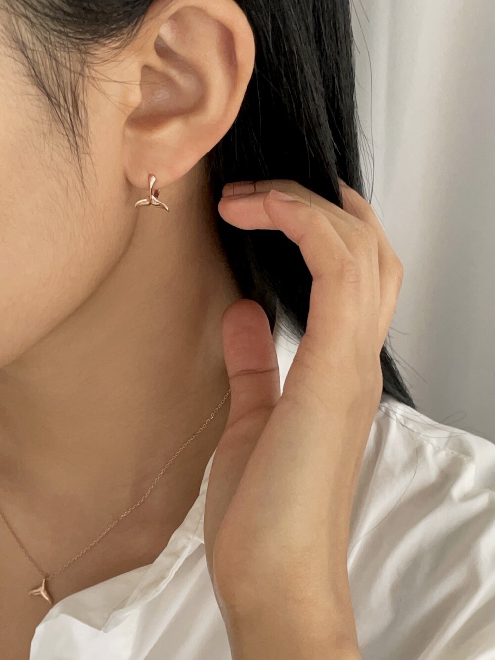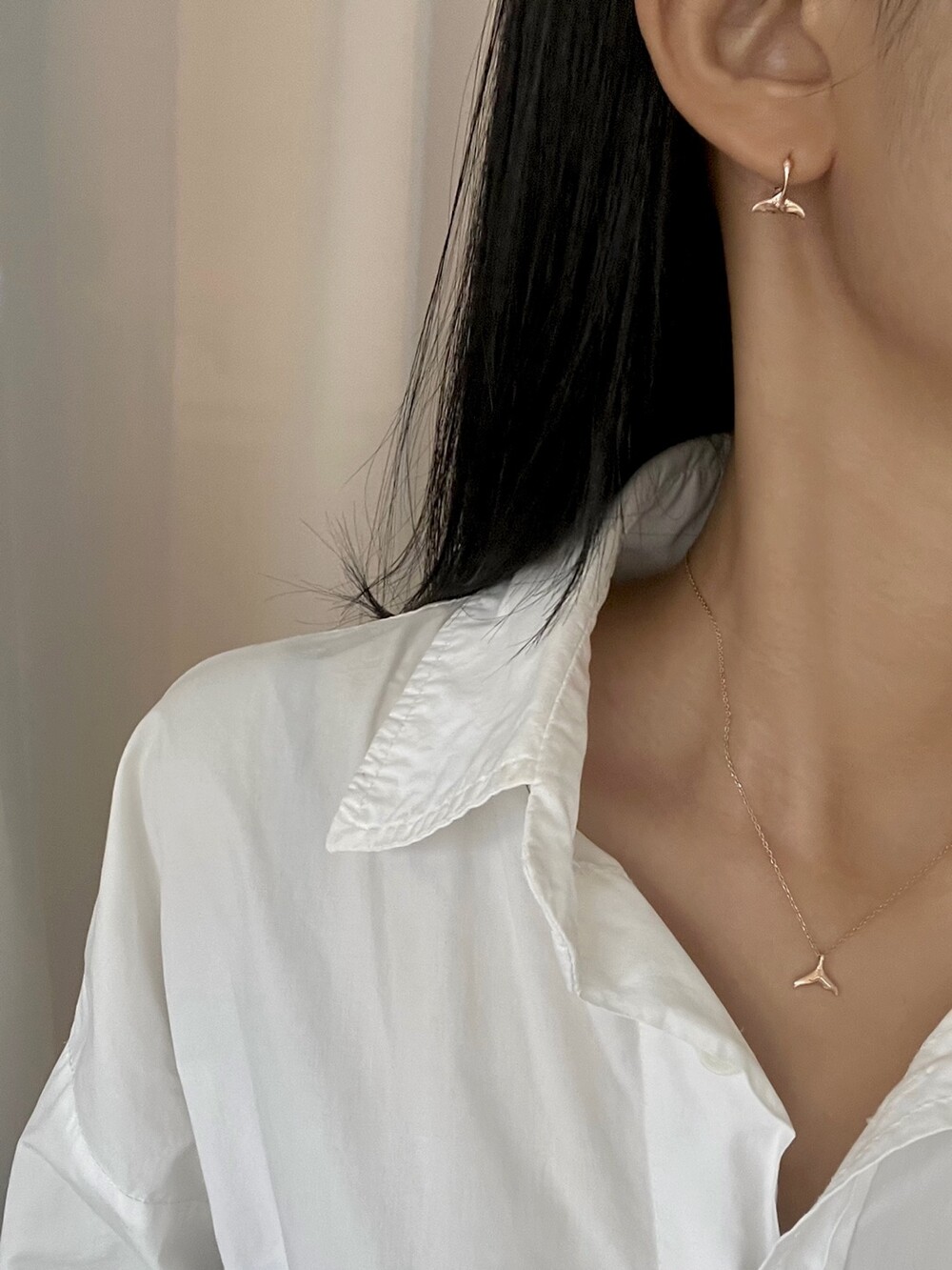 14K 18K 고래꼬리 원터치 링 귀걸이