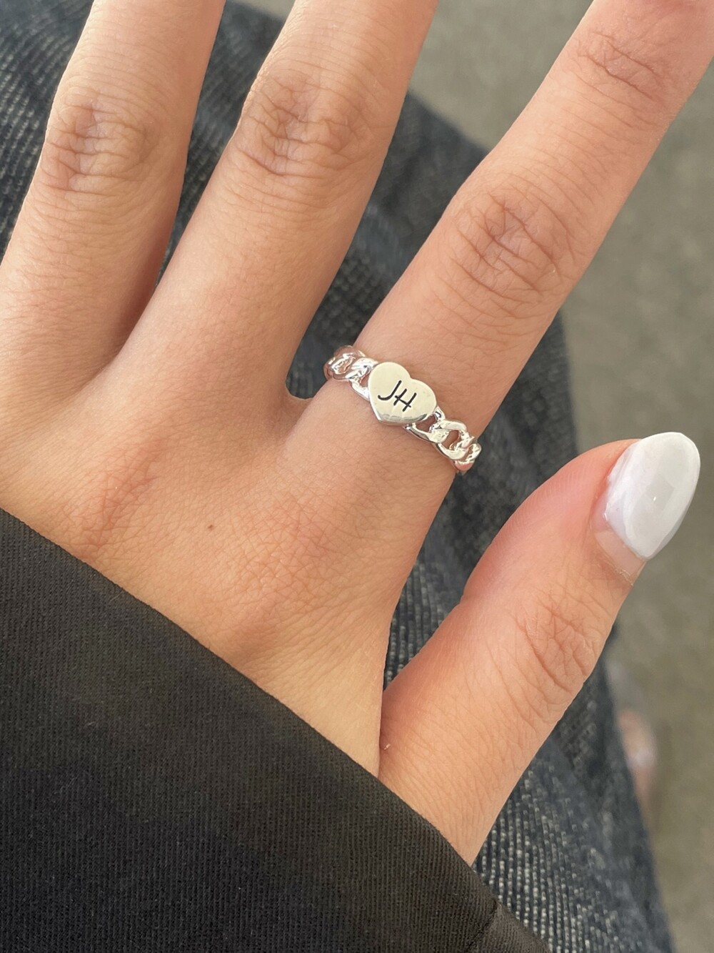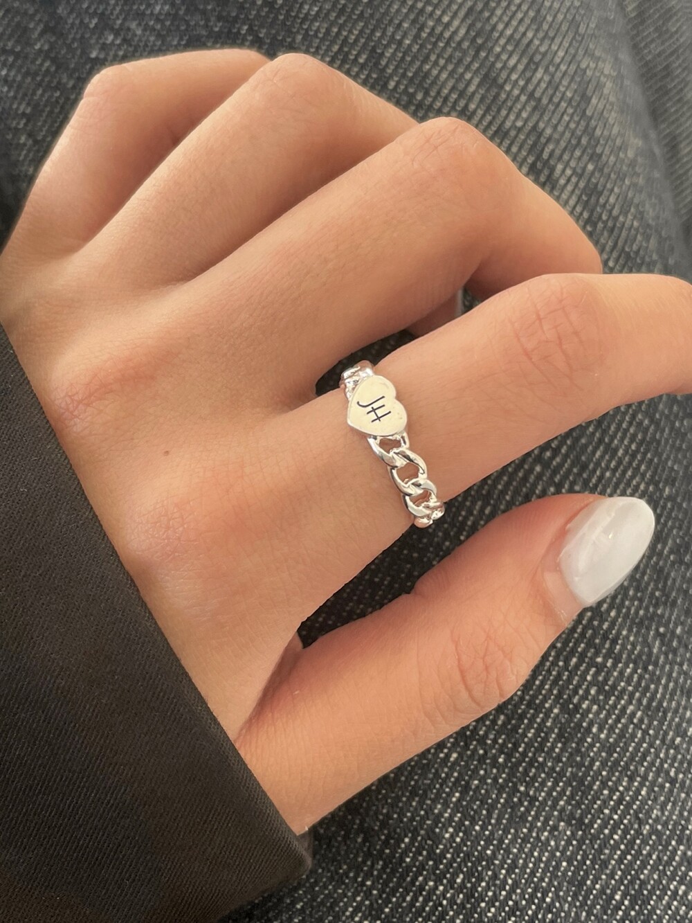 하트 코인에 이니셜 각인이 포인트가 되는 반지에요 :)