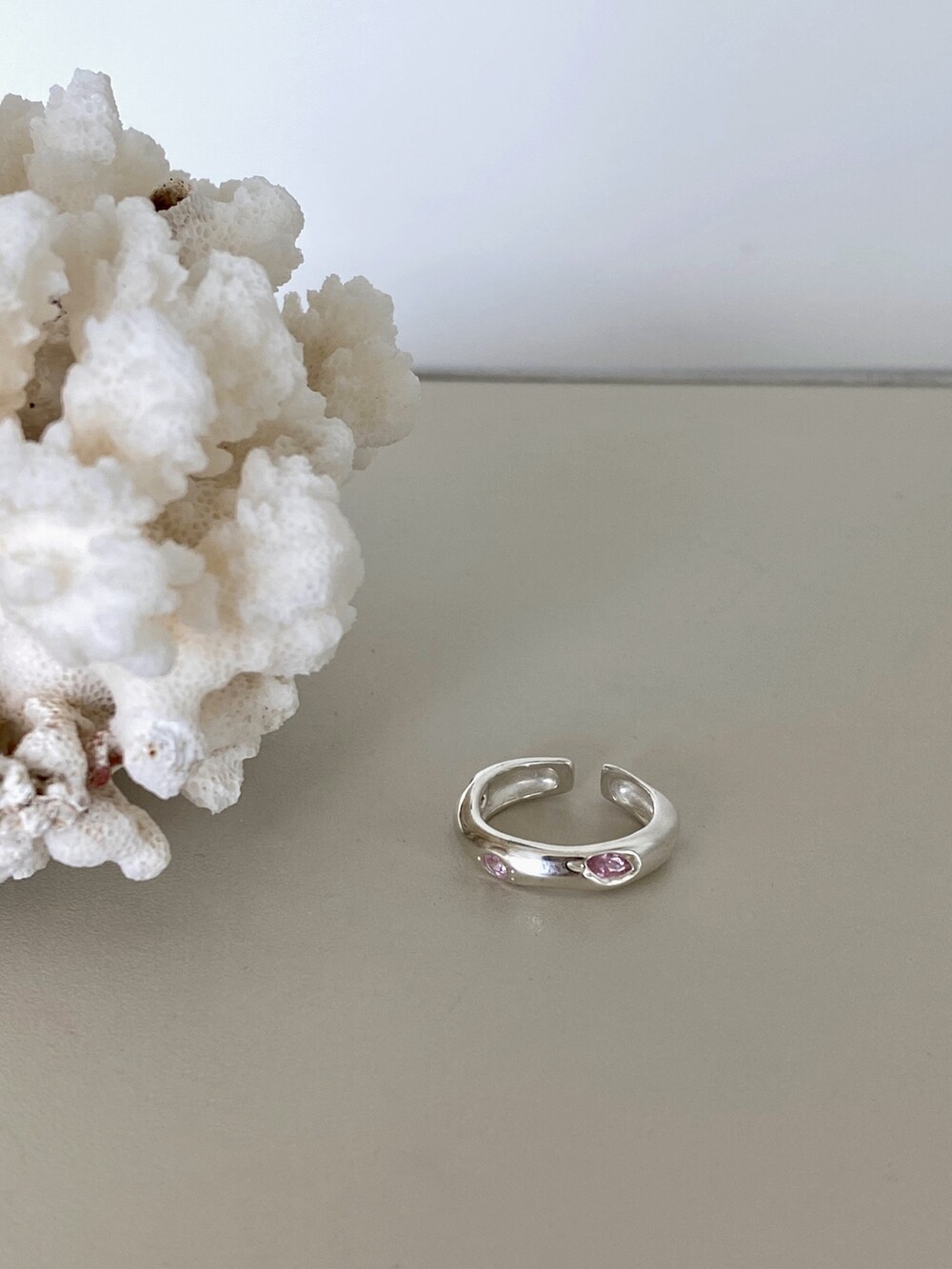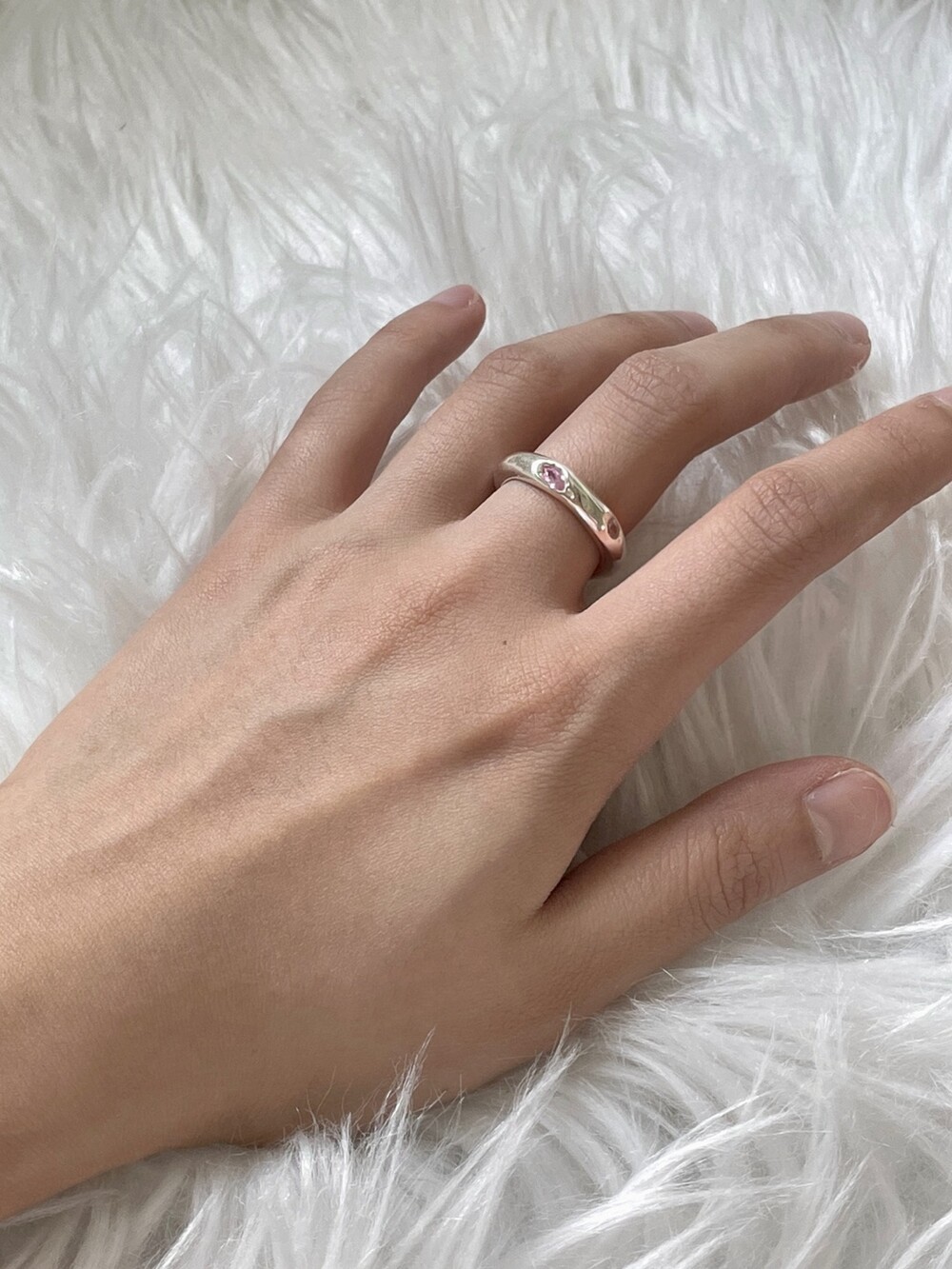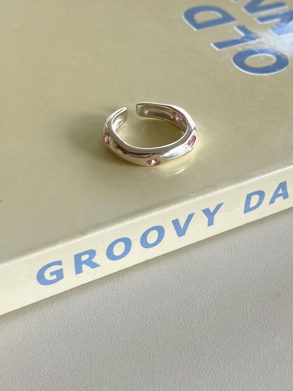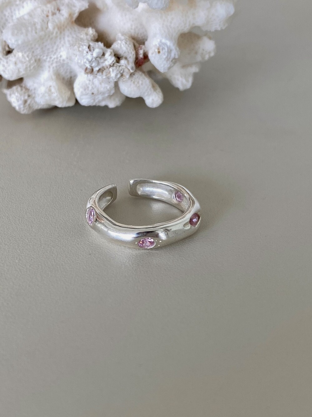 핑크 큐빅이 셋팅되어 유니크 하면서 귀여운 느낌의 반지 입니다 !