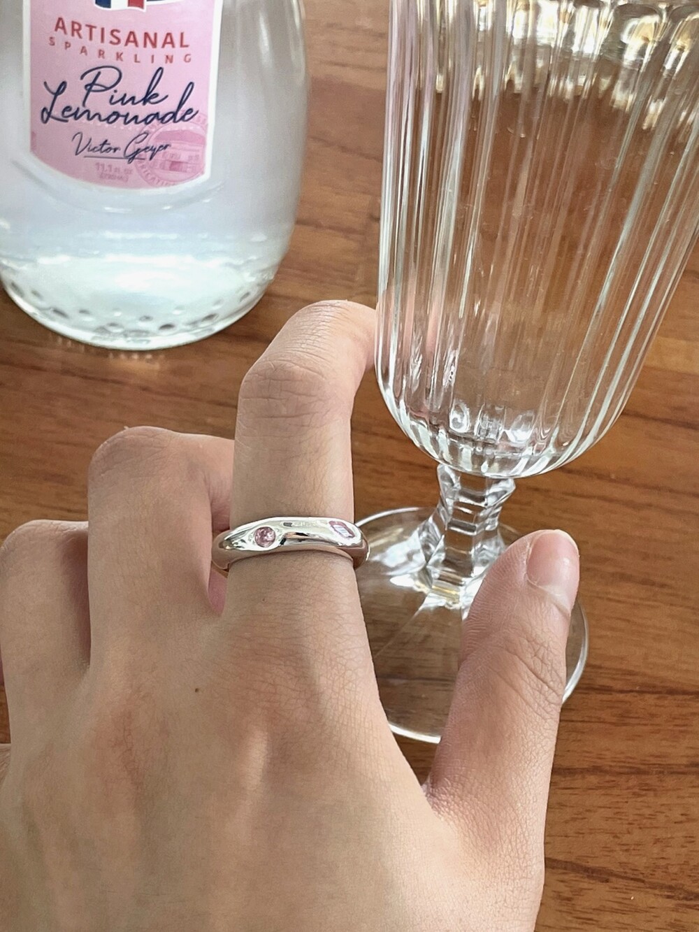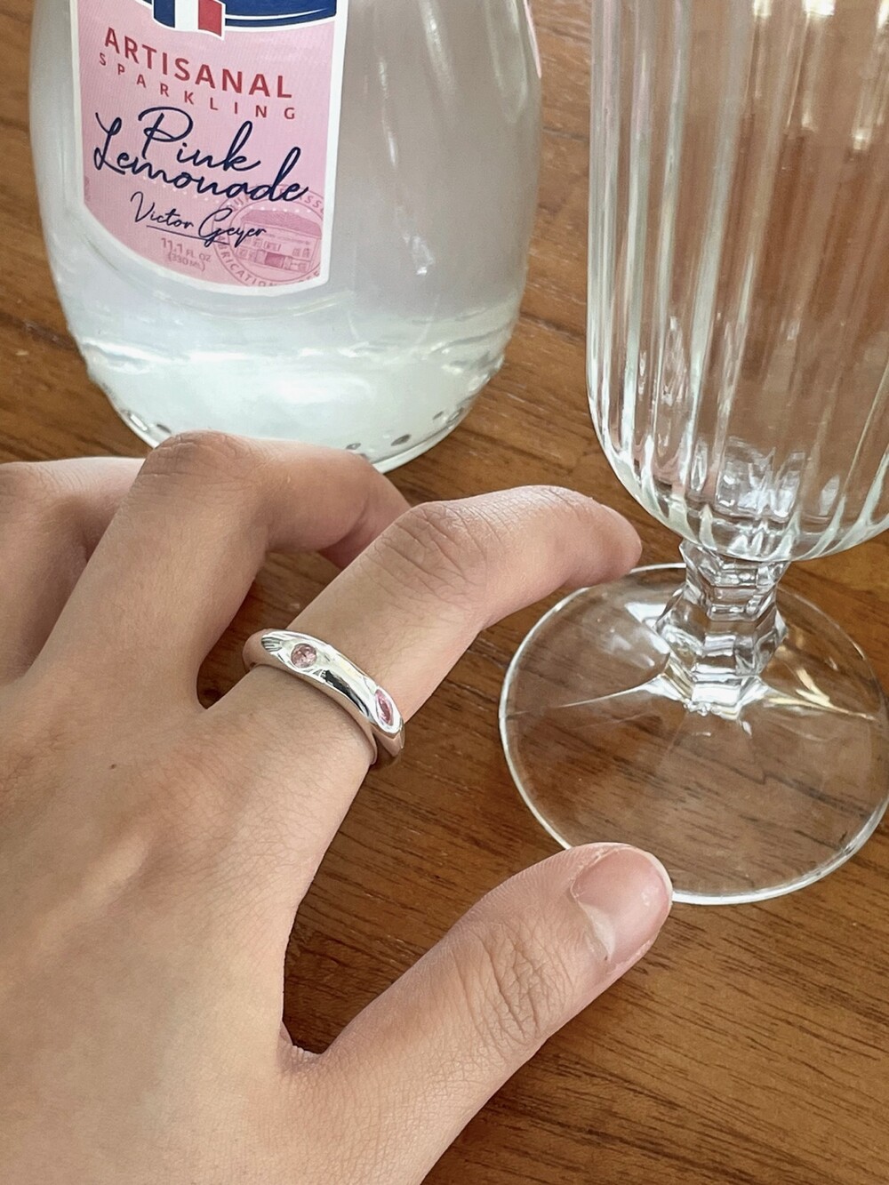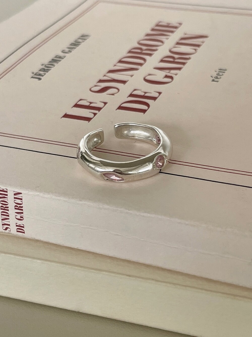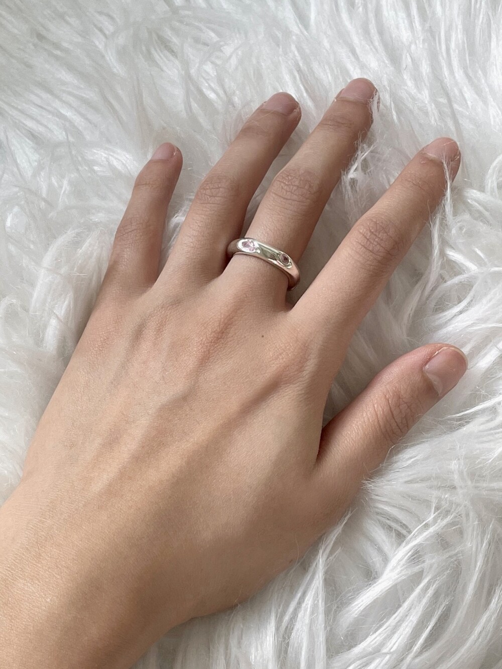 핑크 큐빅이 셋팅되어 유니크 하면서 귀여운 느낌의 반지 입니다 !