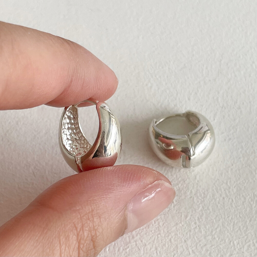 실버 스몰 그레인 원터치링 귀걸이