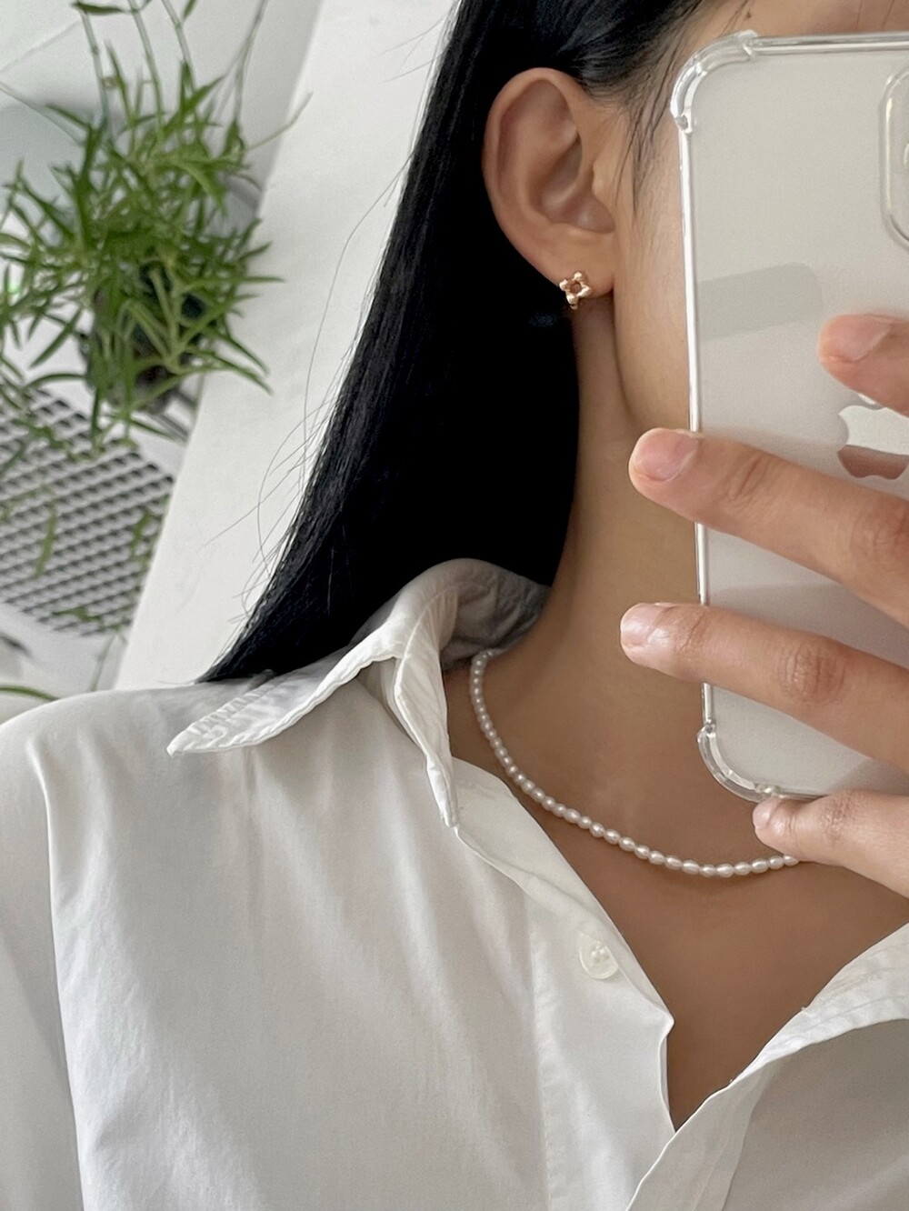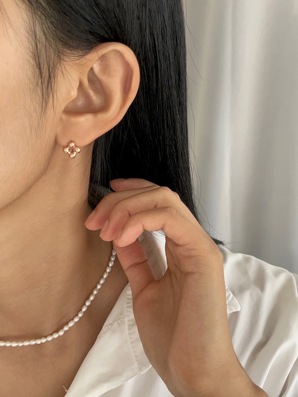 단추 원터치 링 귀걸이