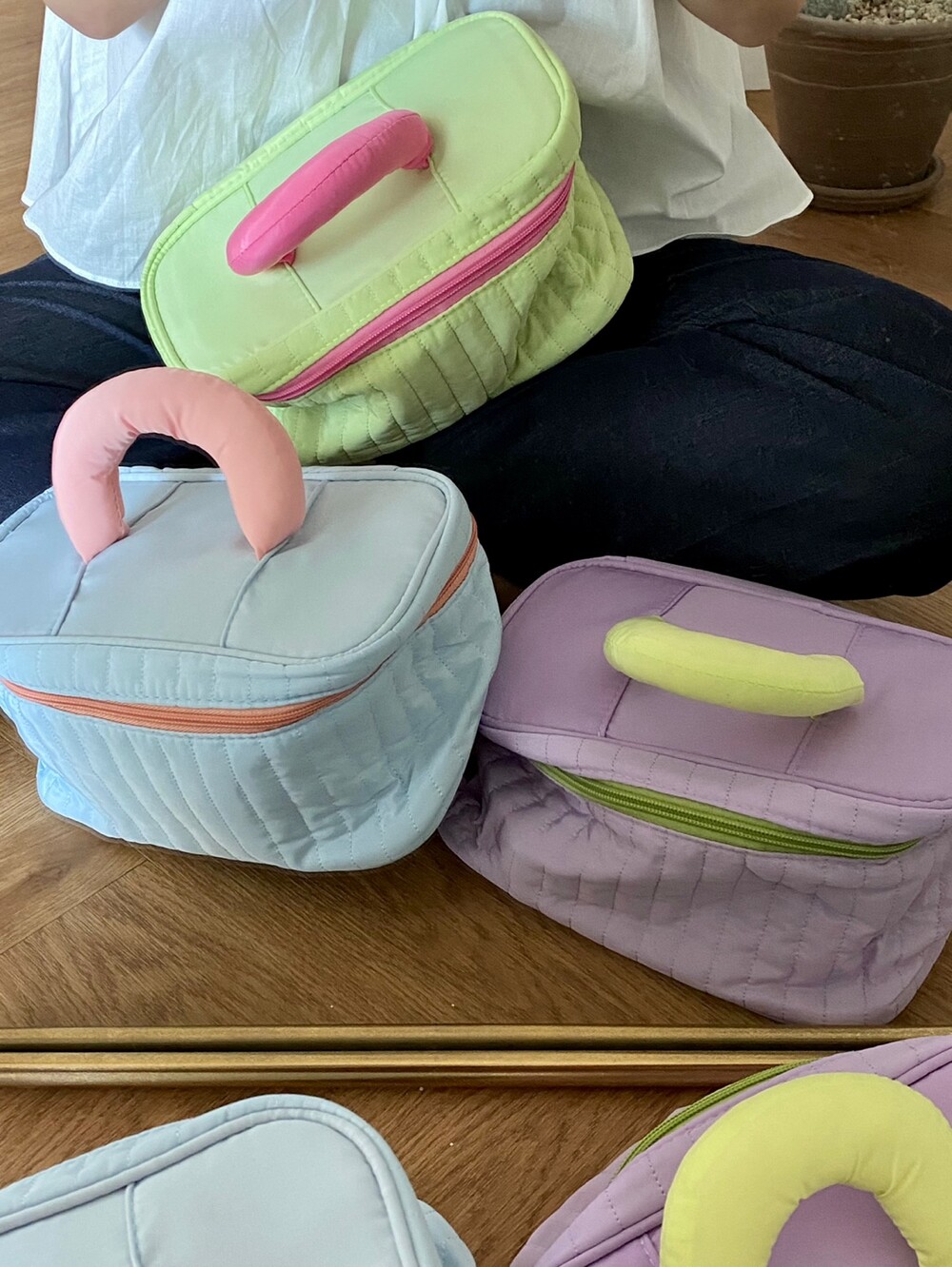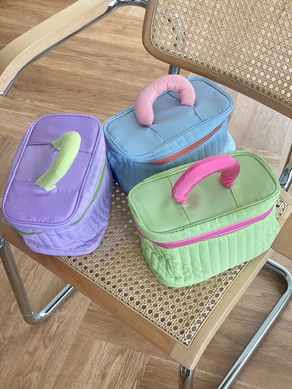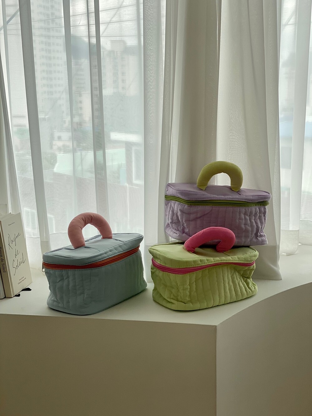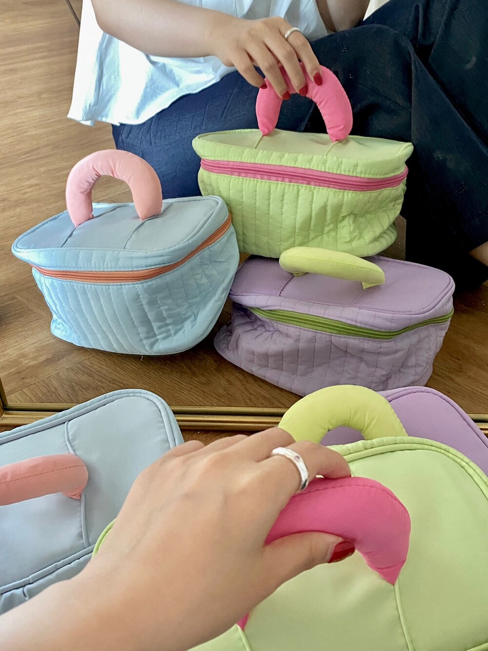 귀여운 손잡이가 있는 메이크업박스입니다.