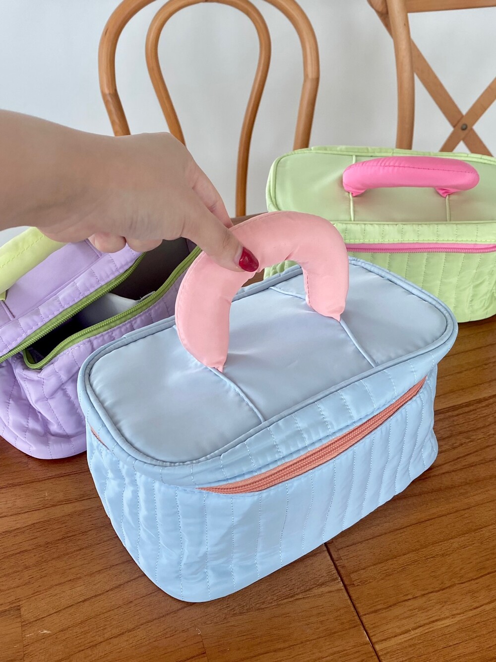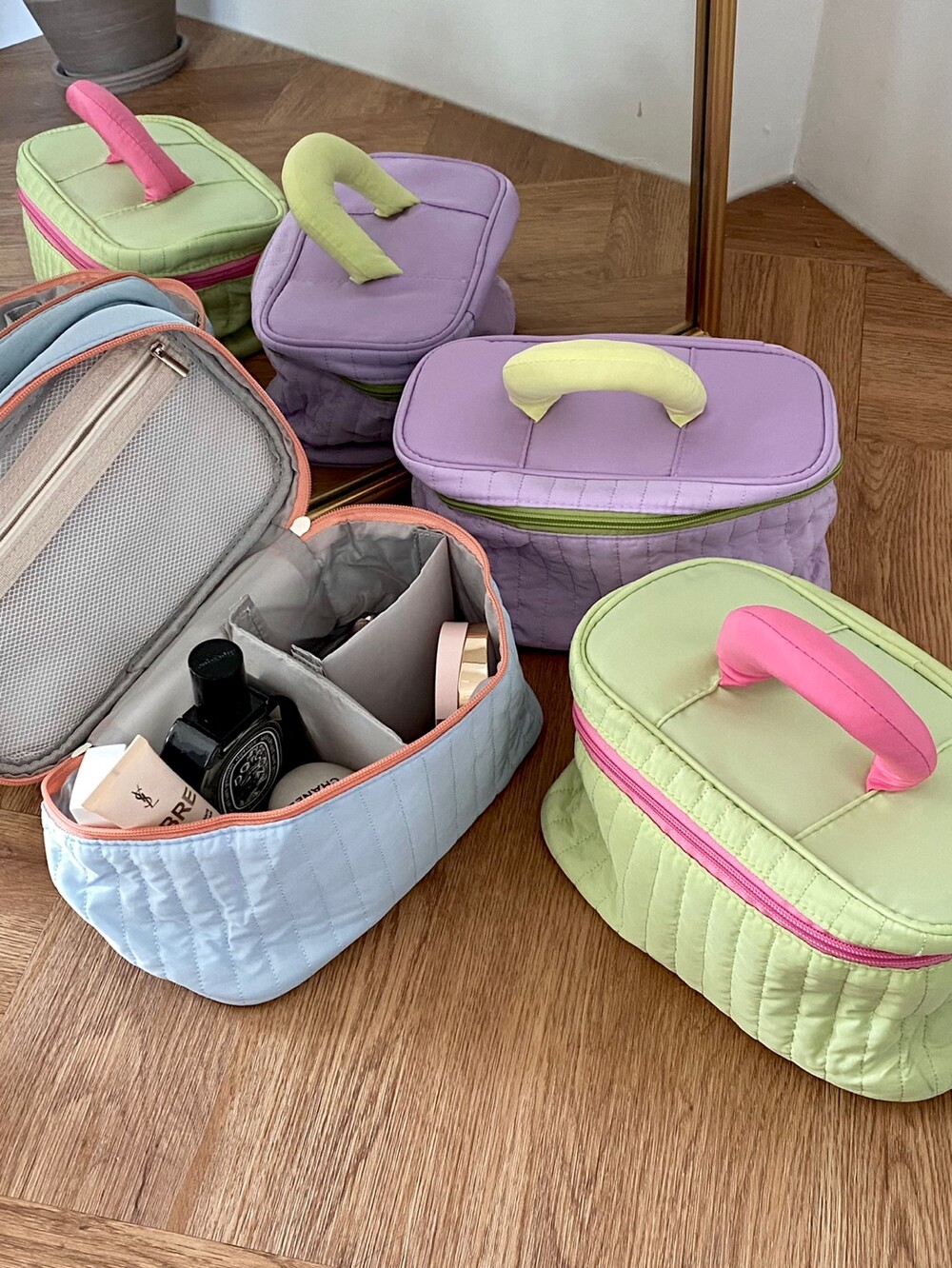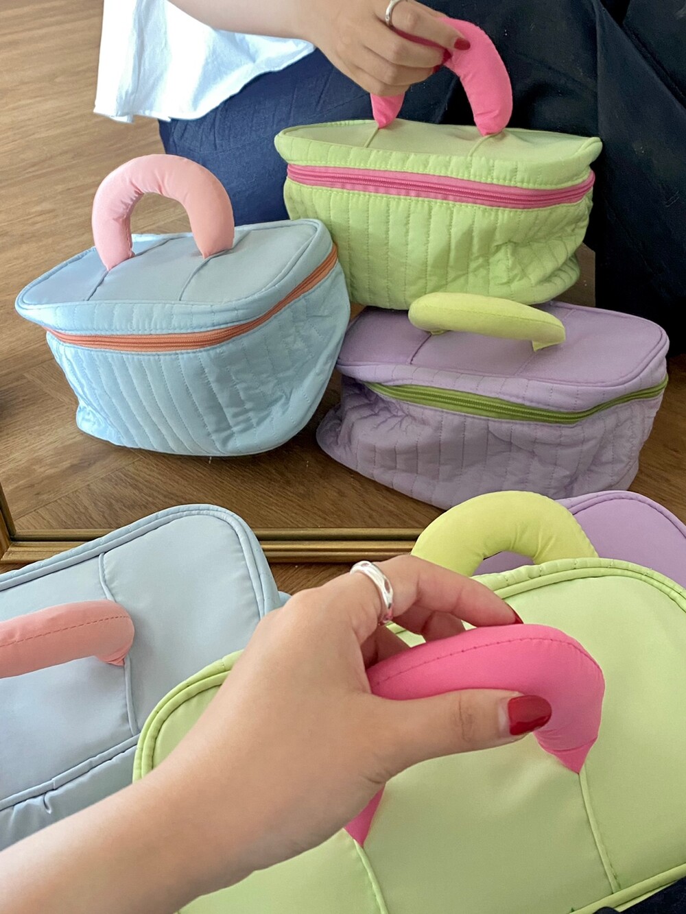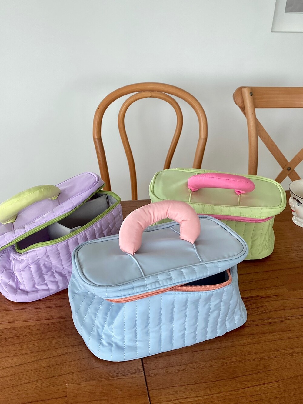 귀여운 손잡이가 있는 메이크업박스입니다.