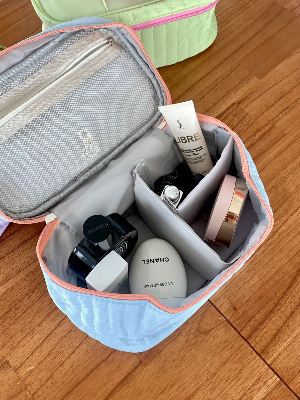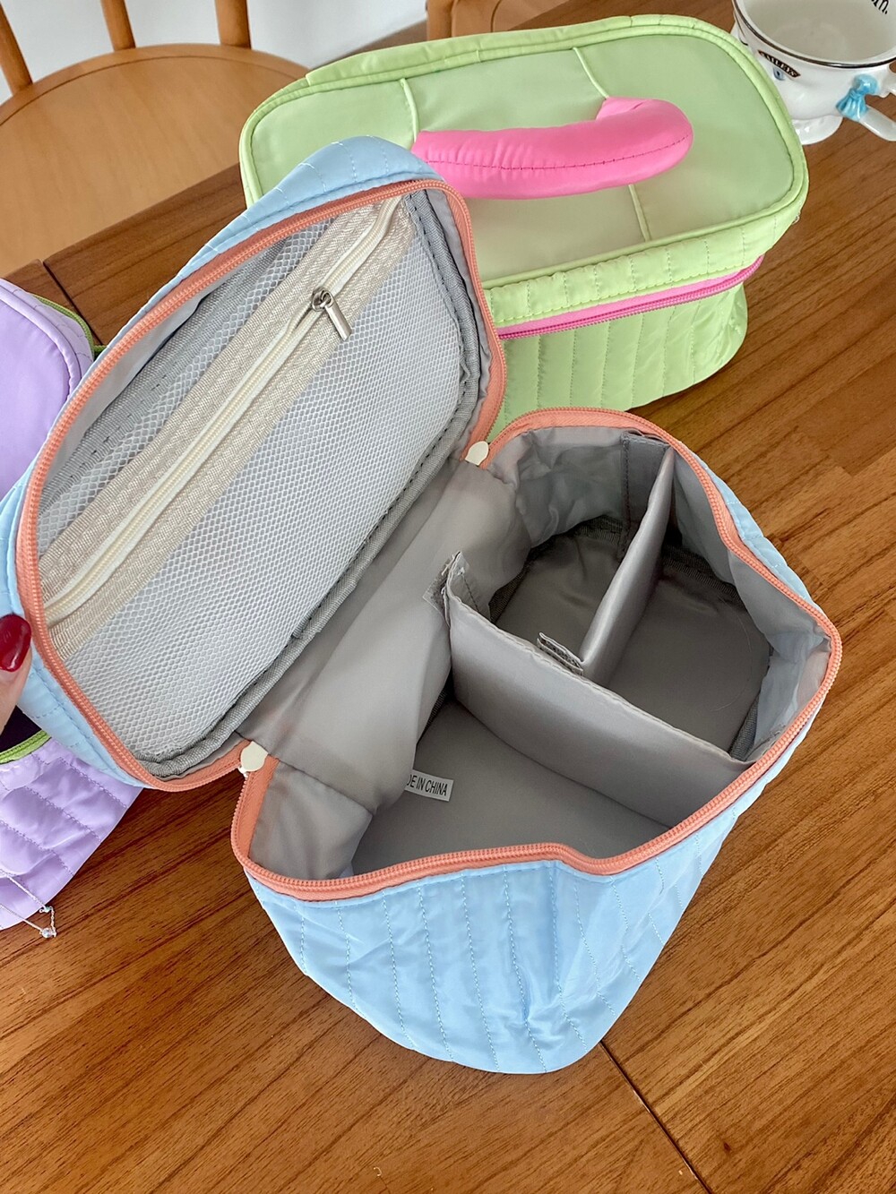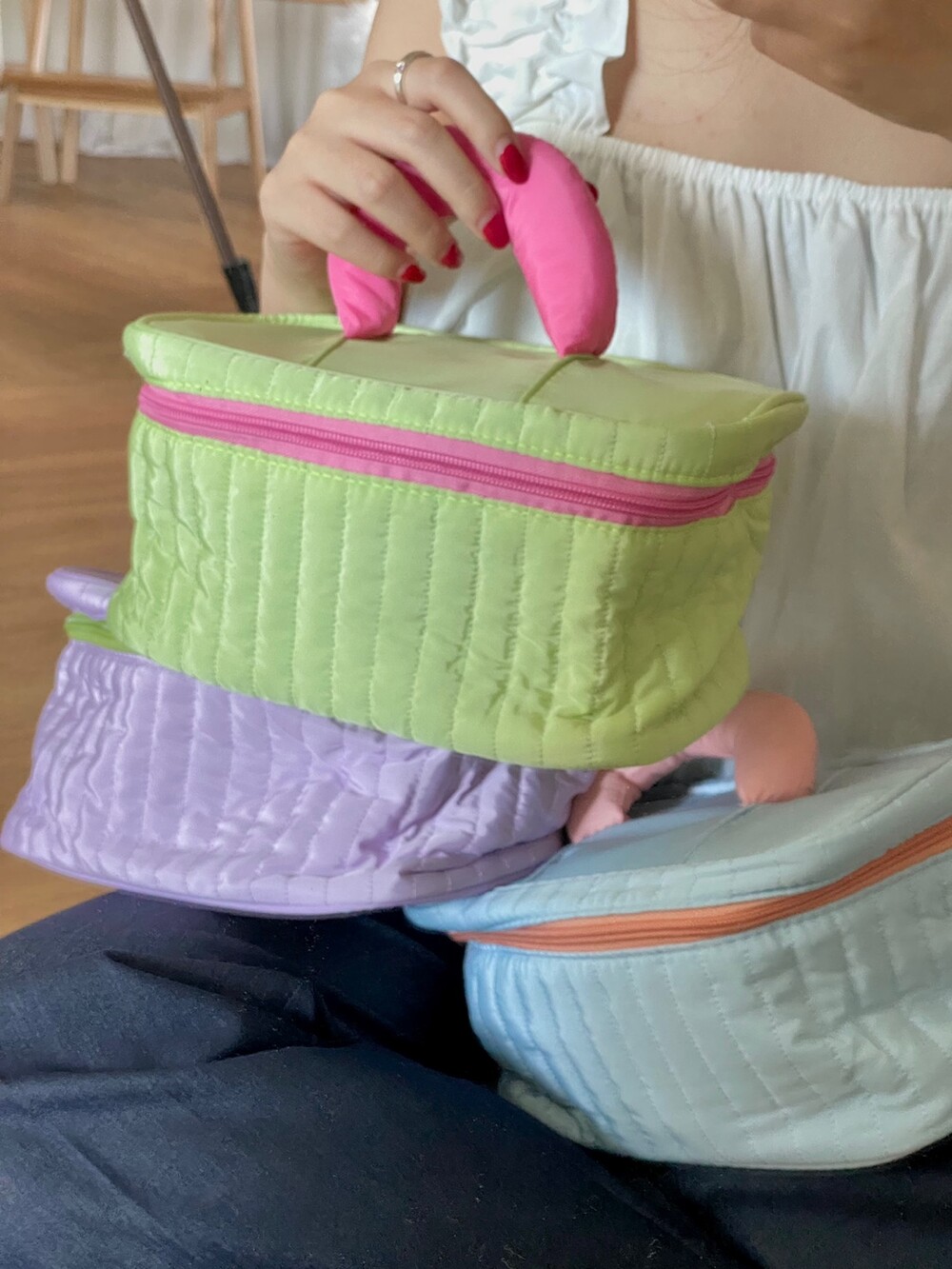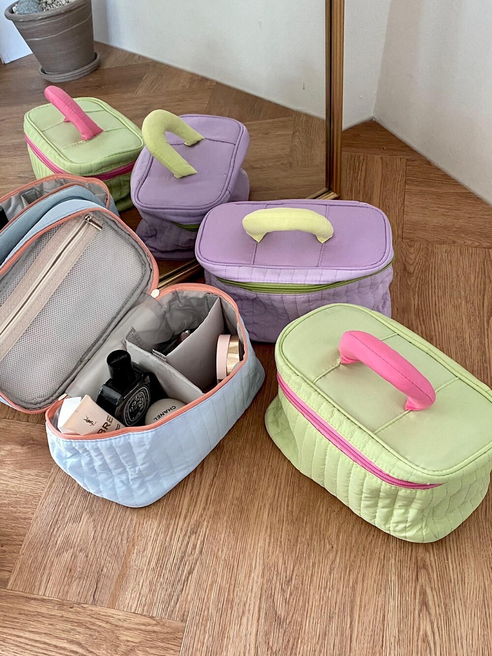 귀여운 손잡이가 있는 메이크업박스입니다.