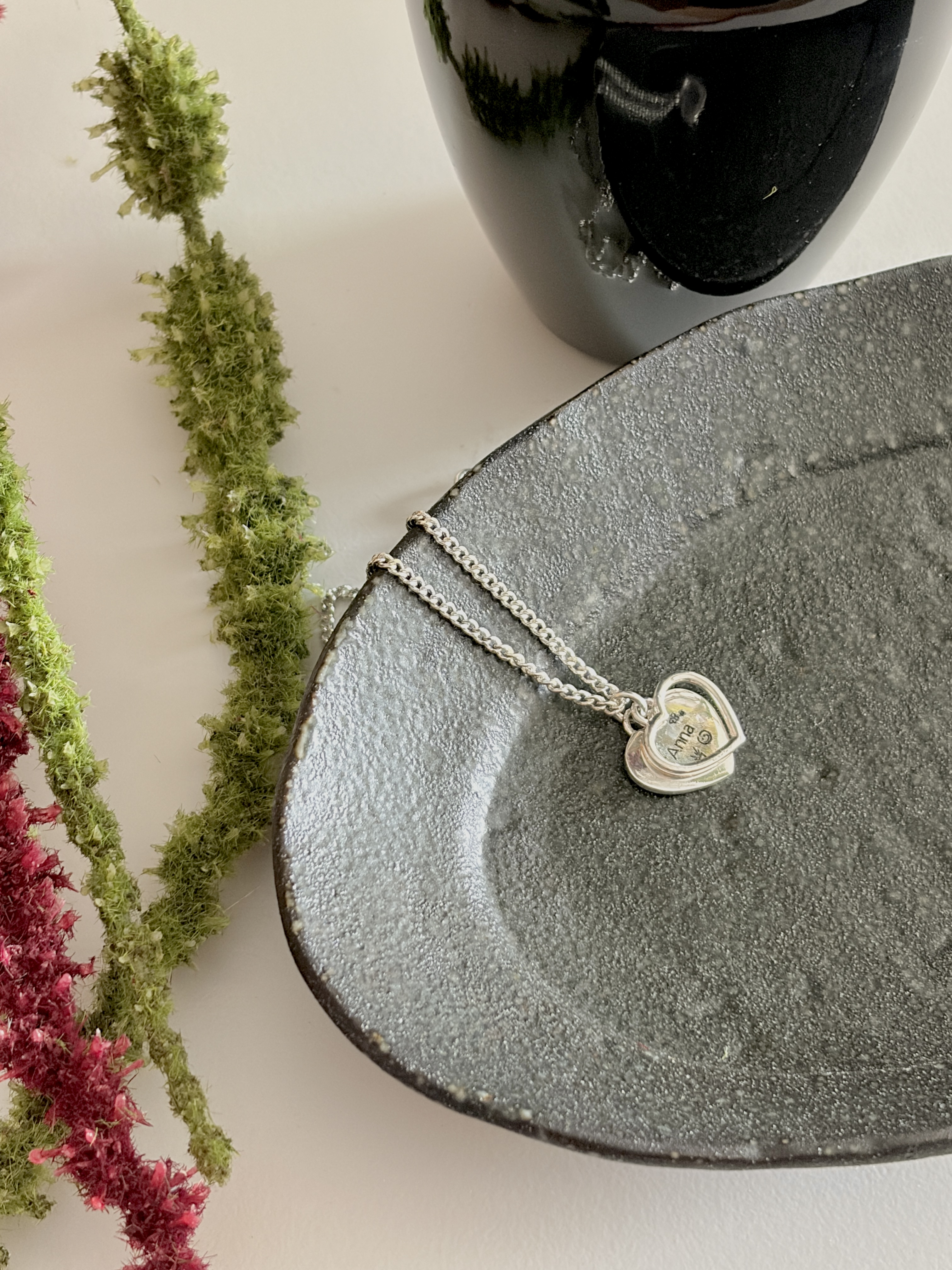 실버 베베 두들 트윈 하트 볼 체인 목걸이.