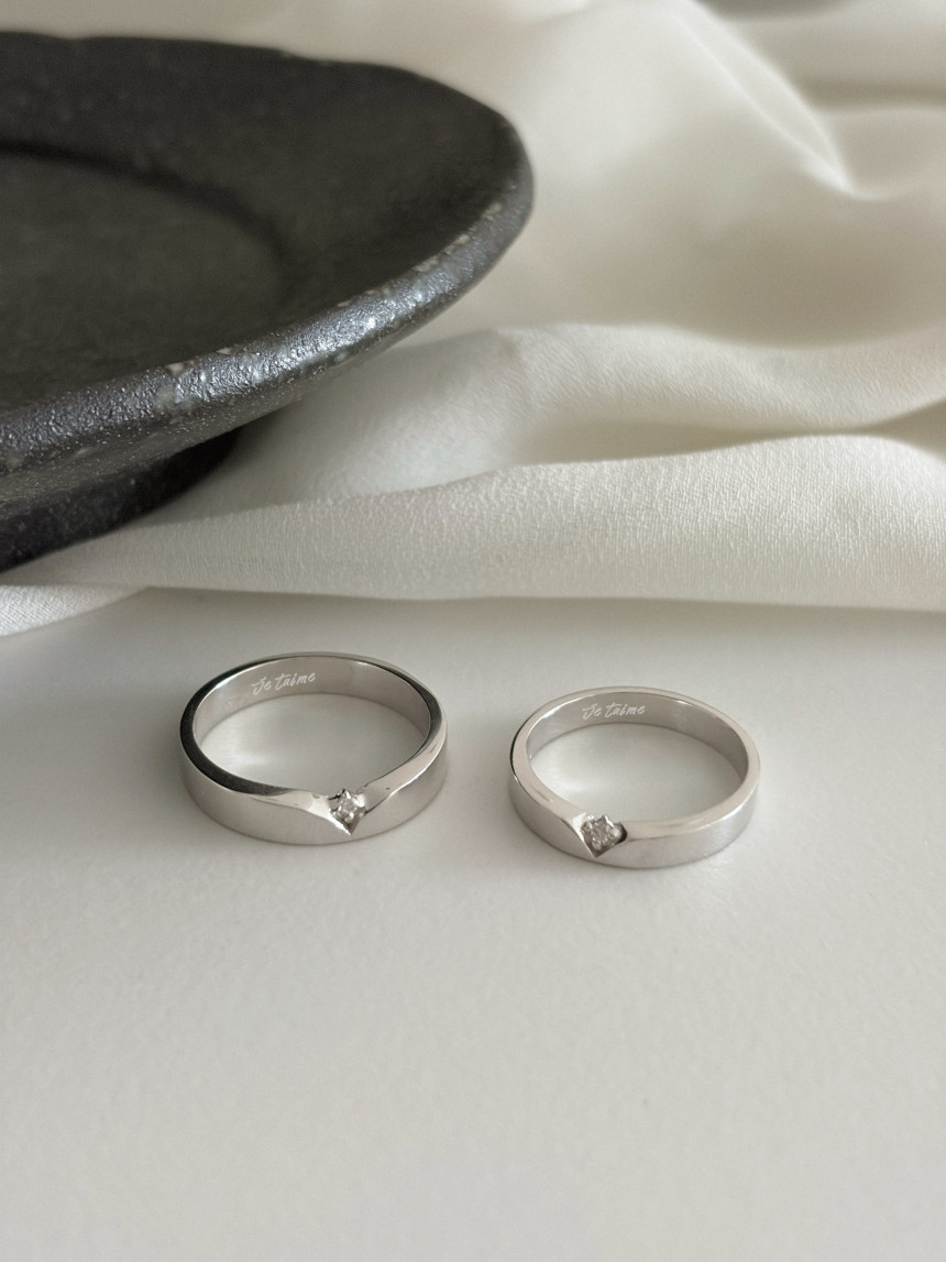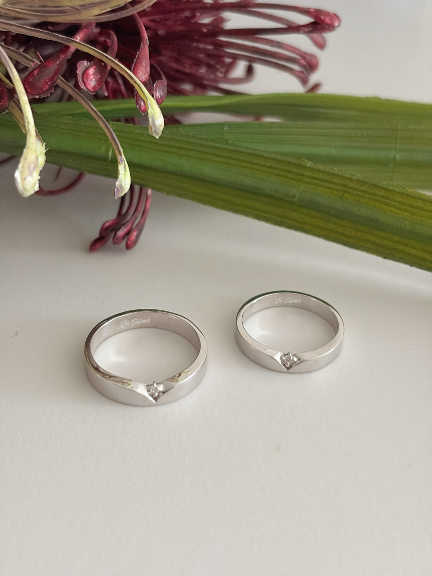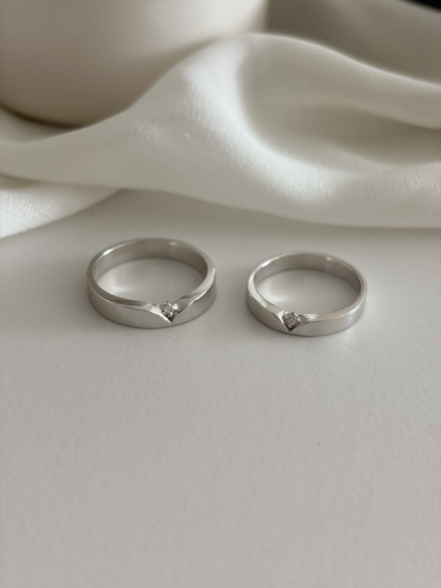 삼각 컷 디테일과 큐빅 포인트가 돋보이는 심플한 평반지 디자인