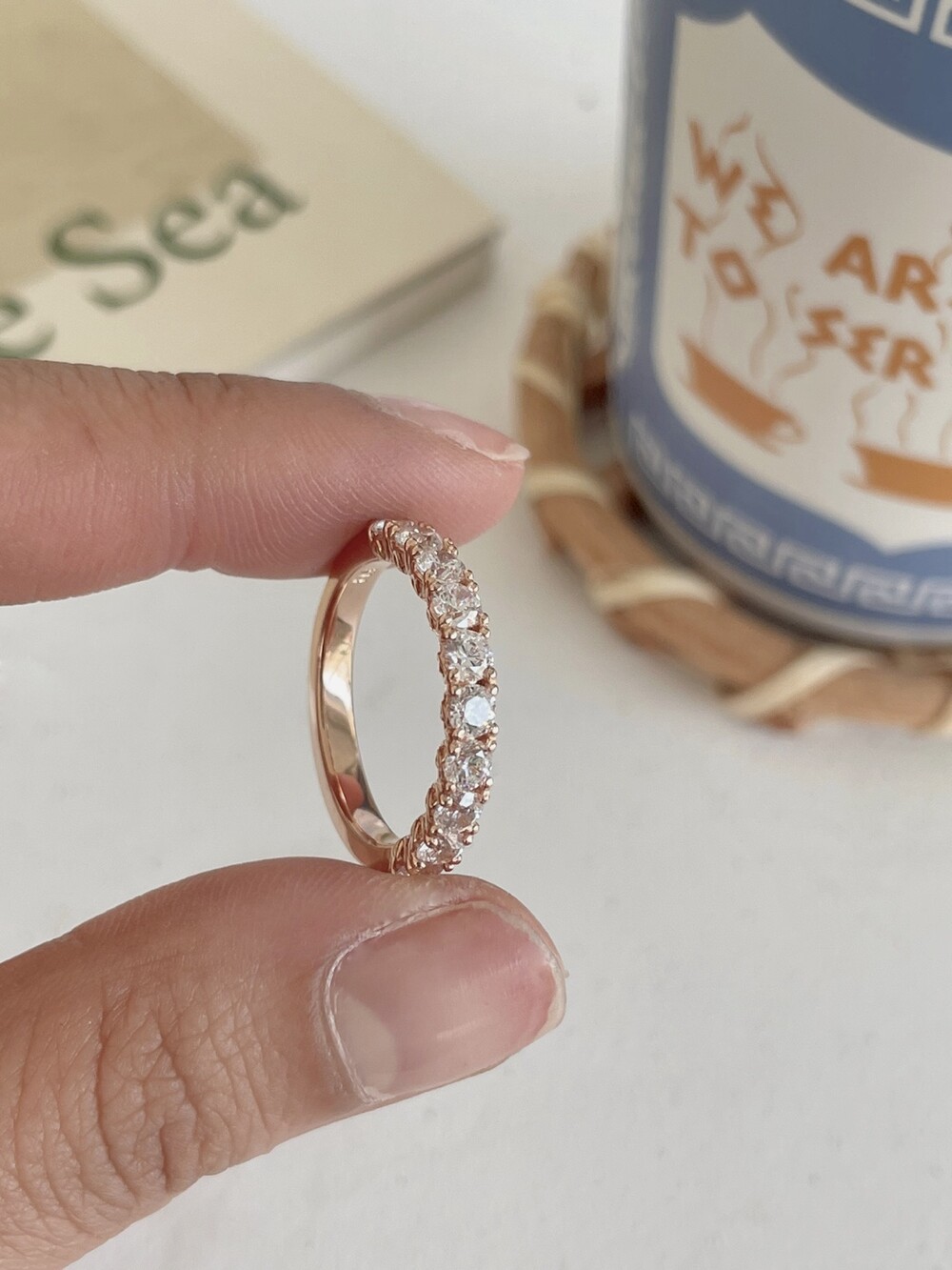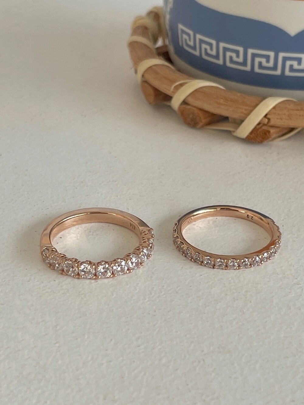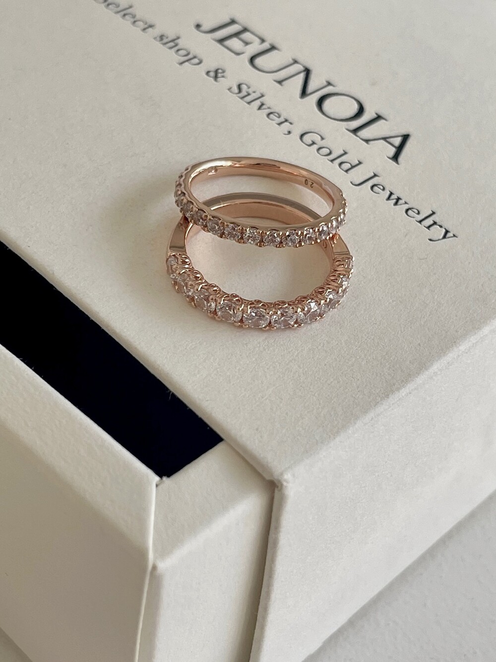윗면 전체에 큐빅이 셋팅되어 반짝이는 반지에요 !