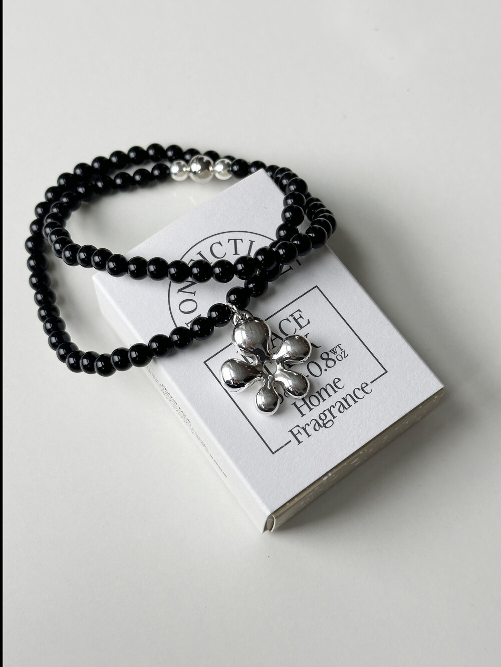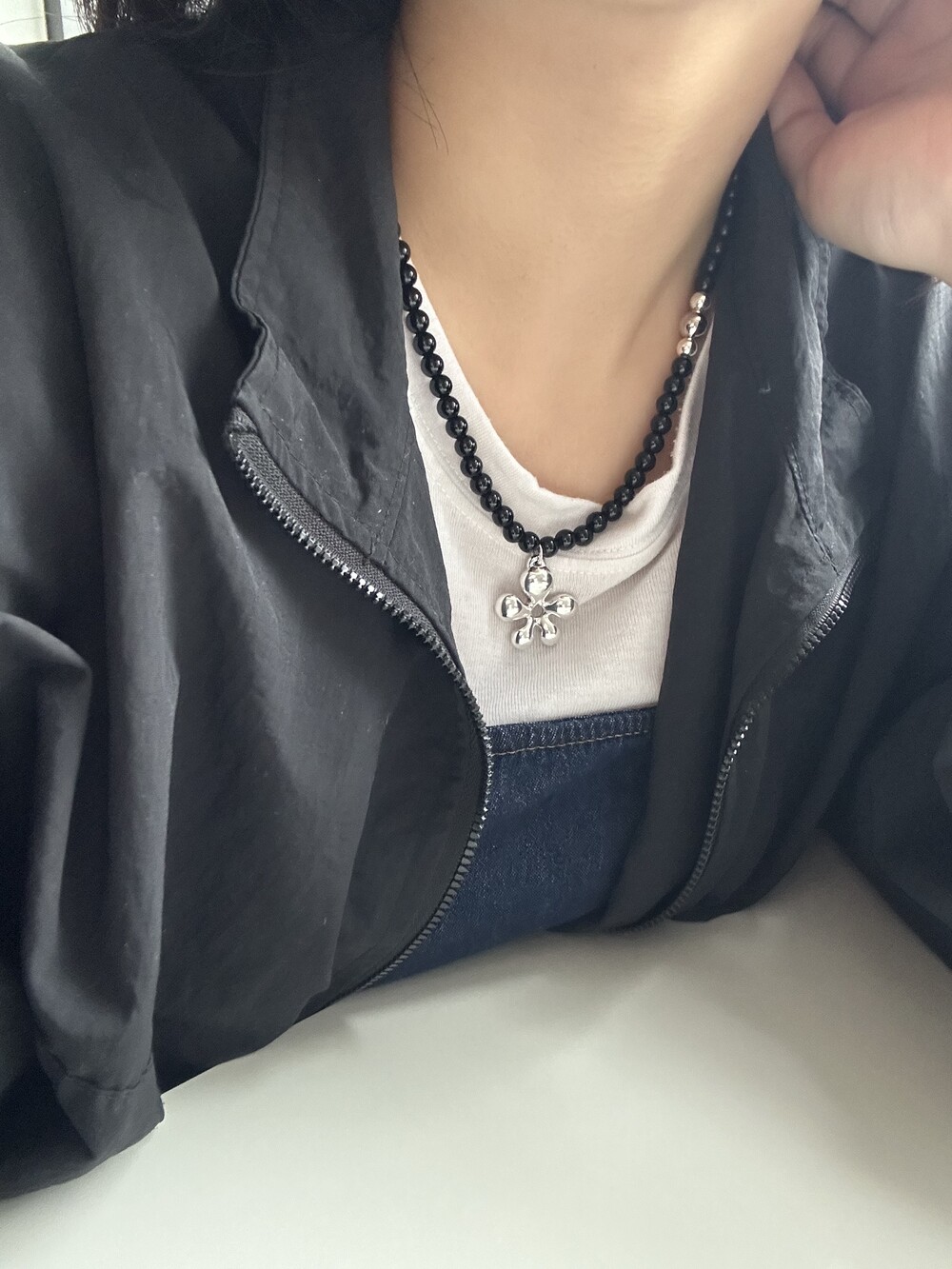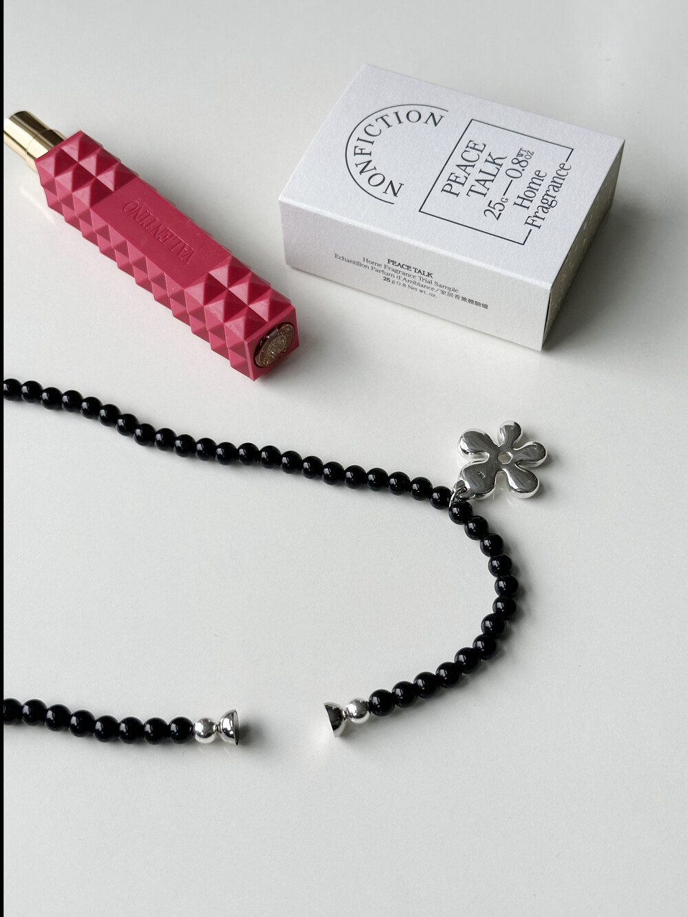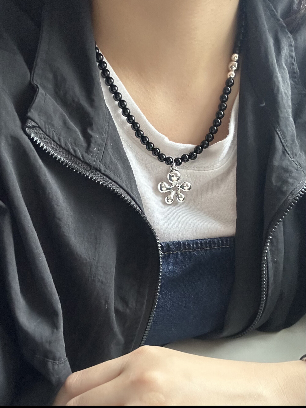 실버 블랙 오닉스 키치 꽃 자석 목걸이