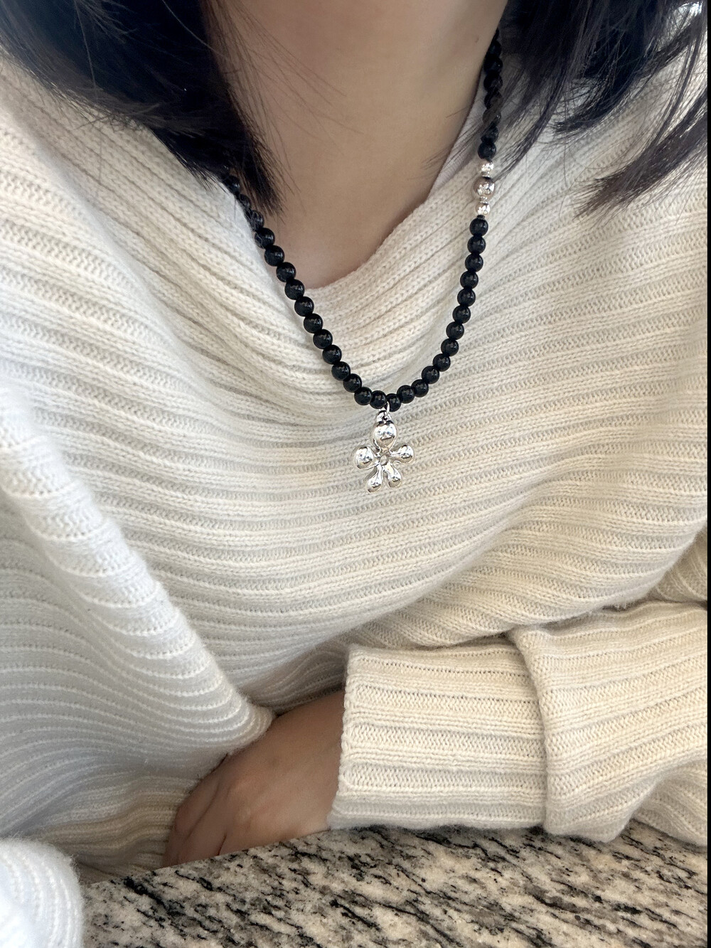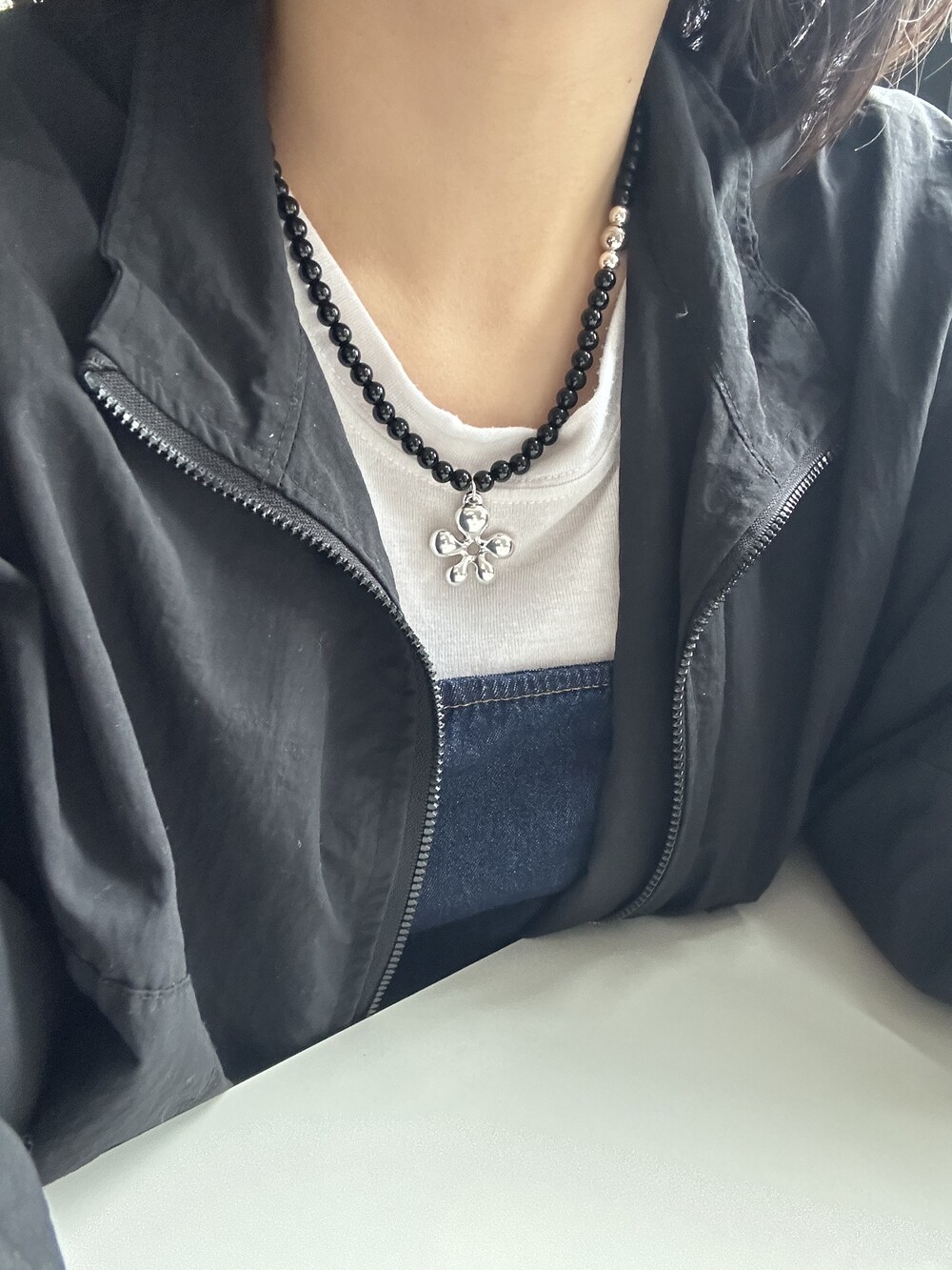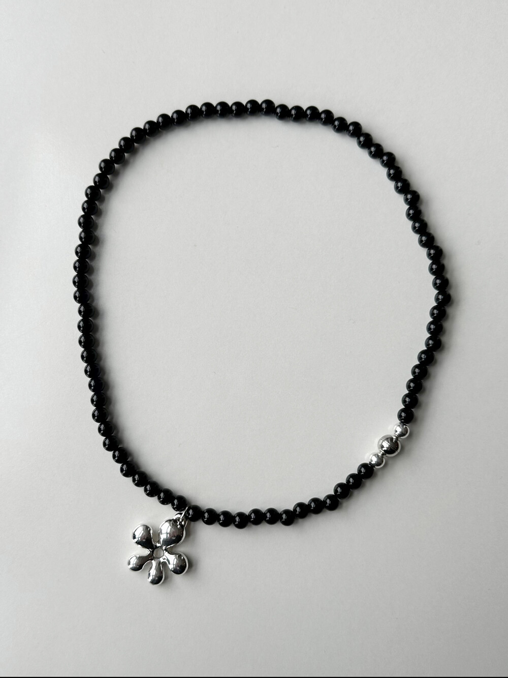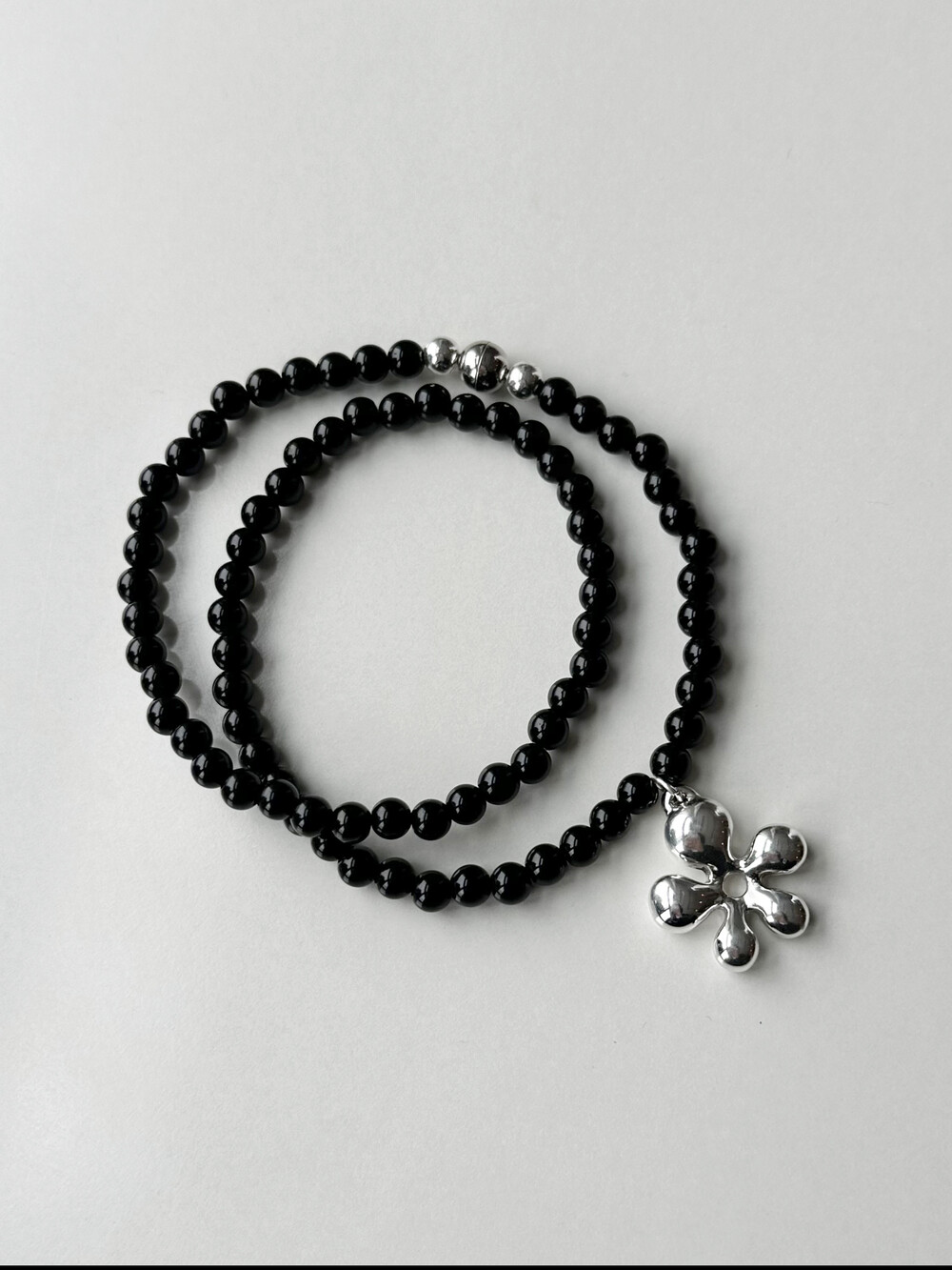 실버 블랙 오닉스 키치 꽃 자석 목걸이