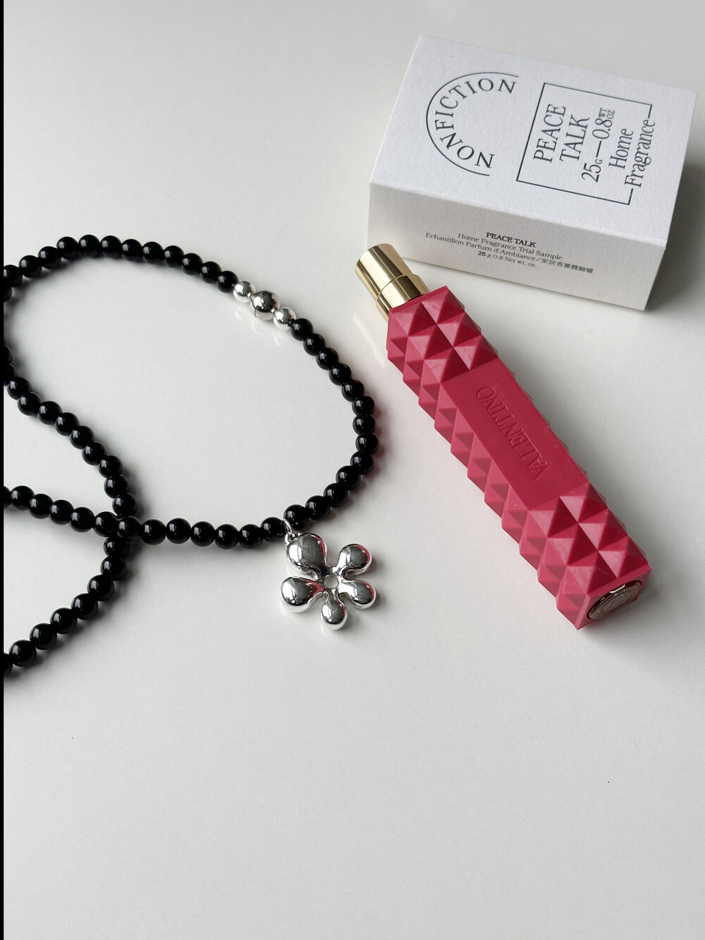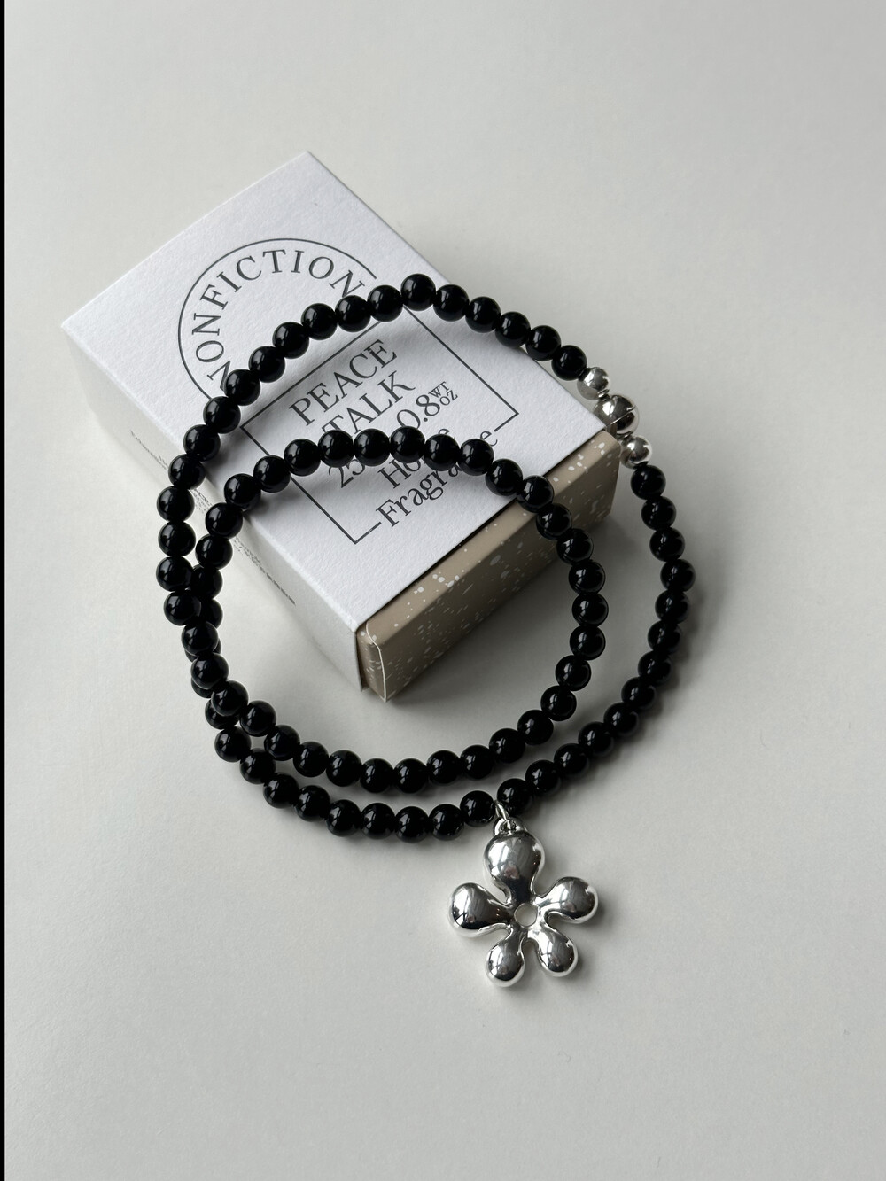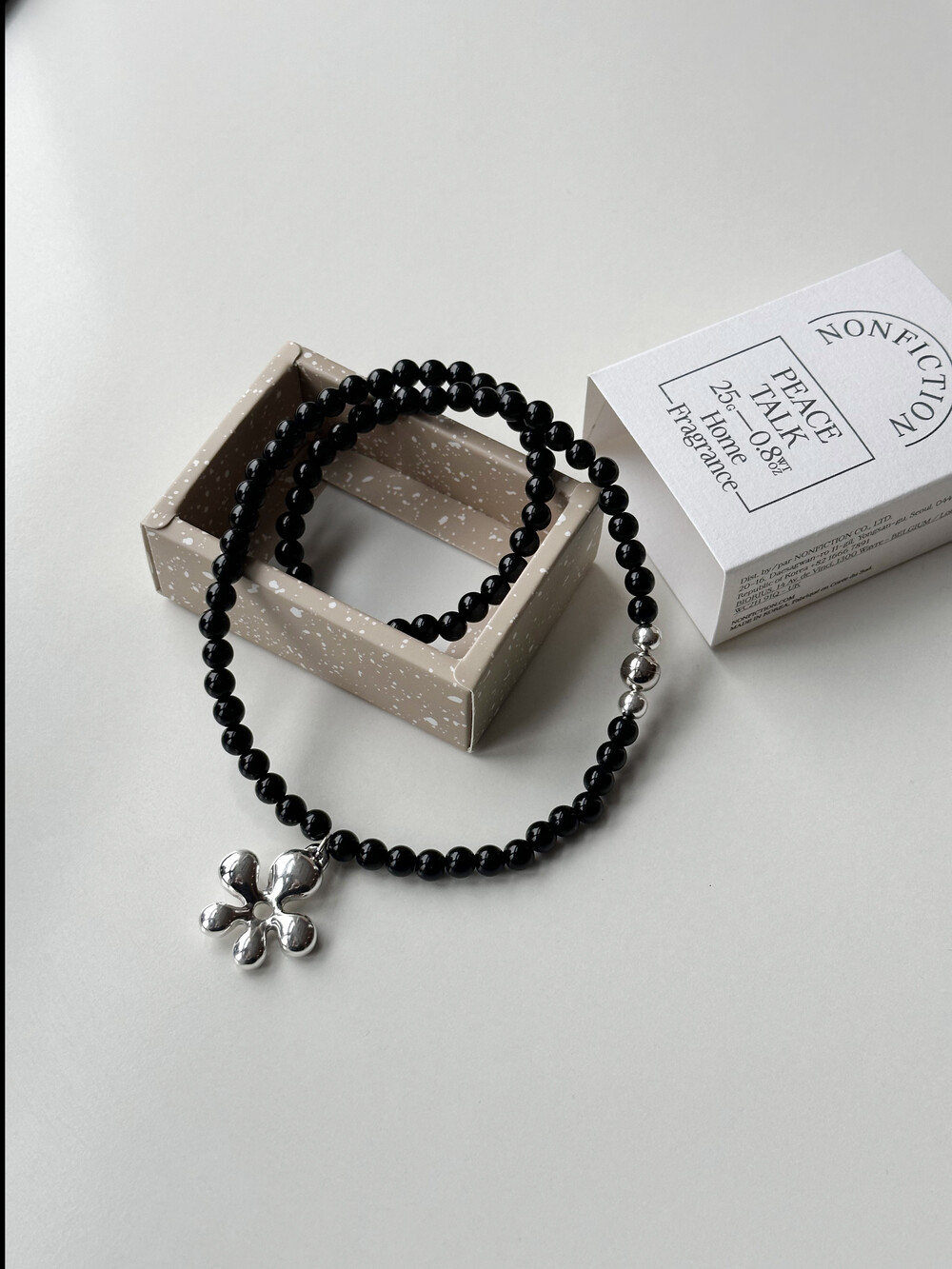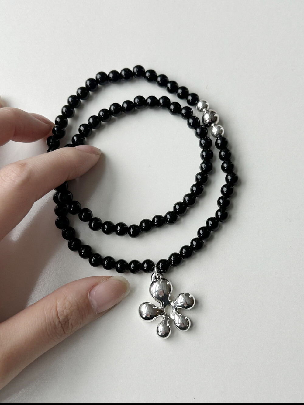 실버 블랙 오닉스 키치 꽃 자석 목걸이