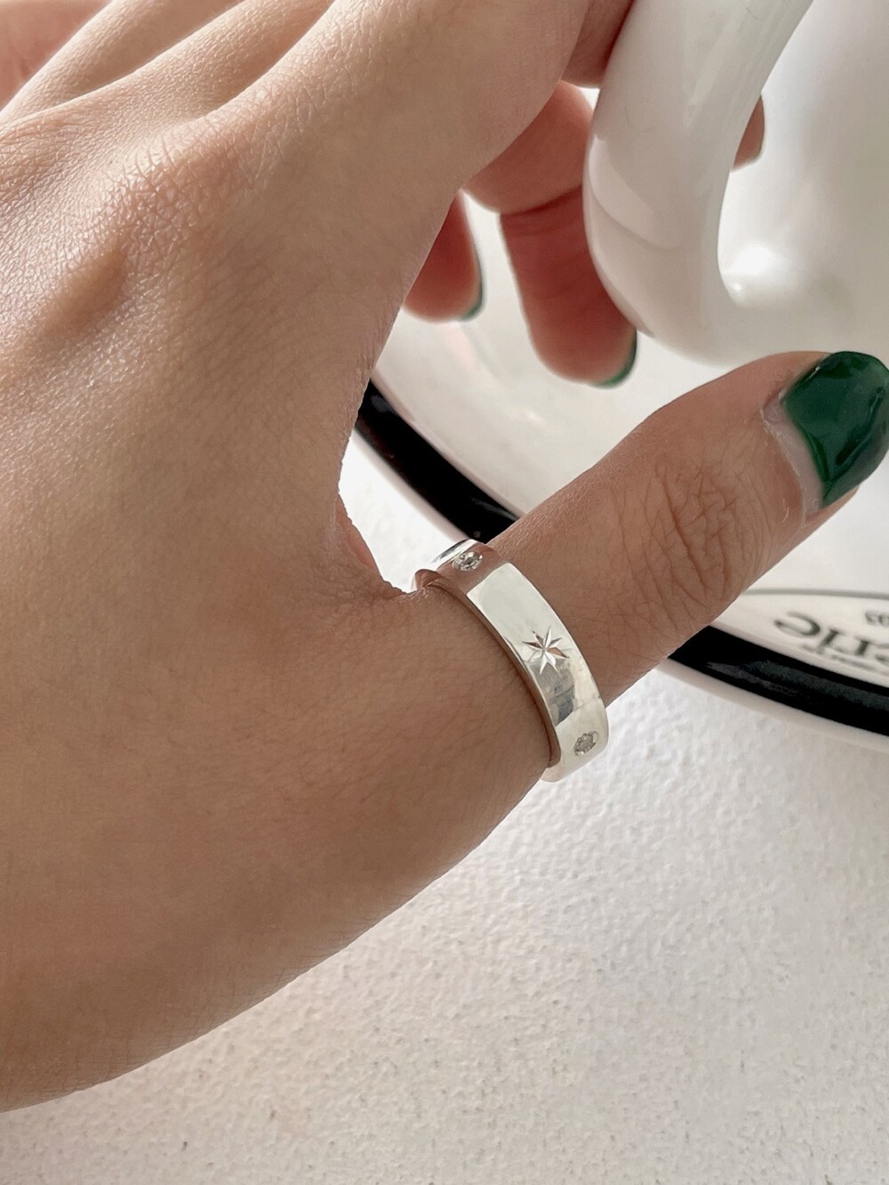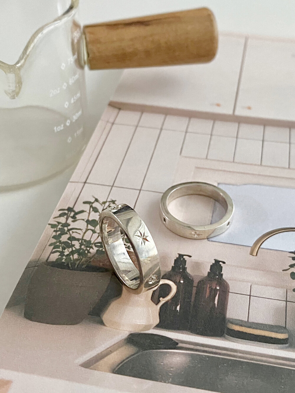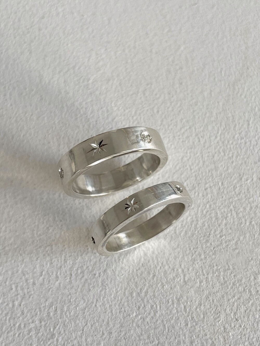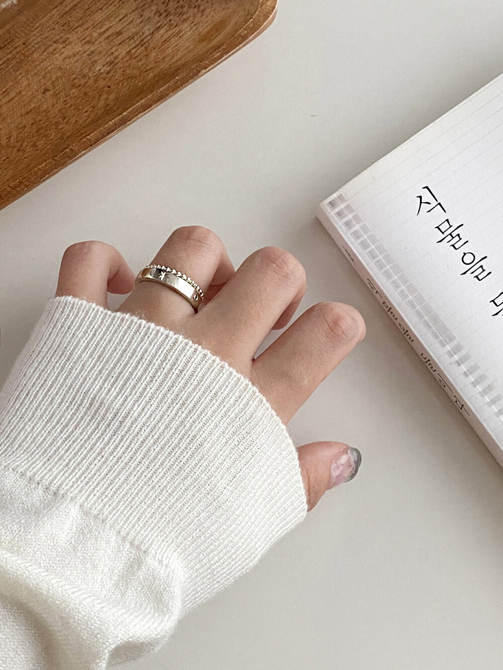 별조각과 큐빅세팅이 전체로 둘러져있는 반지에요 !