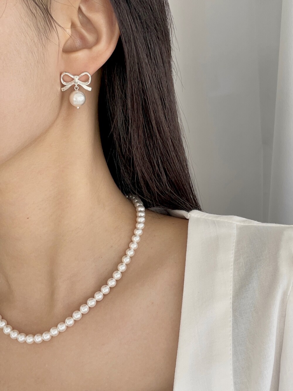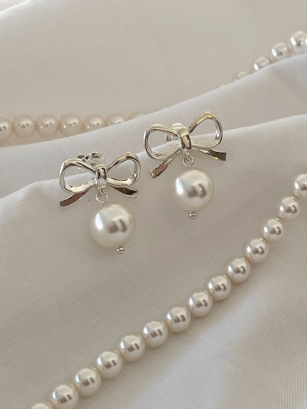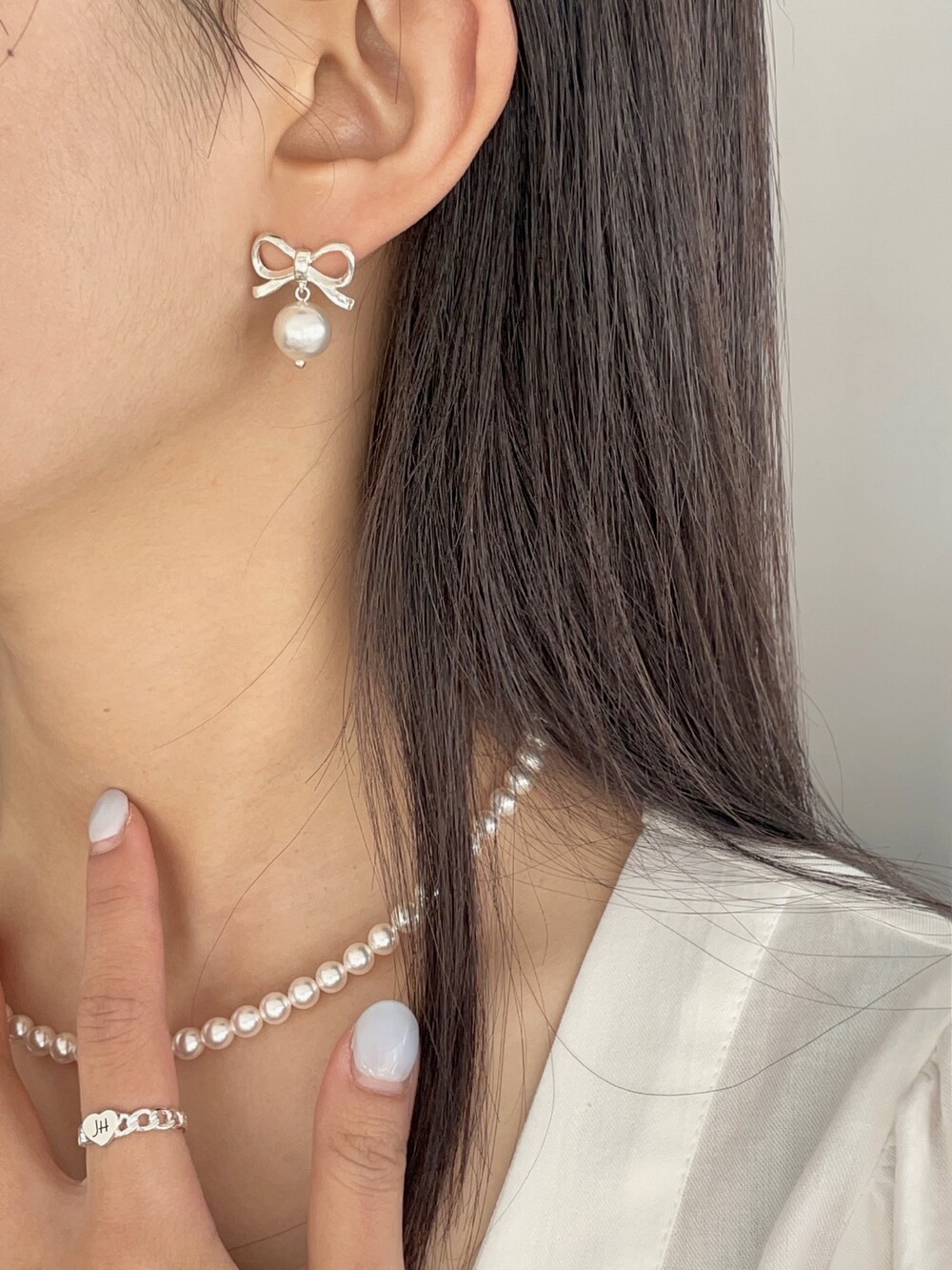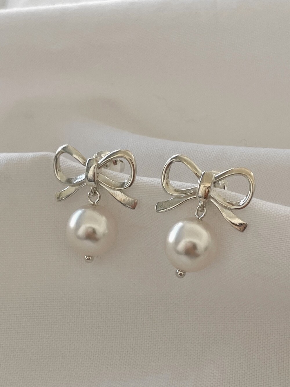 실버 러블리 리본 진주 귀걸이