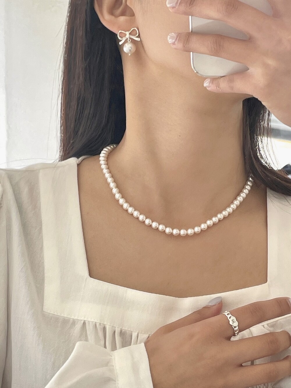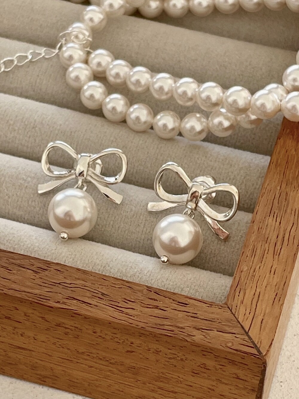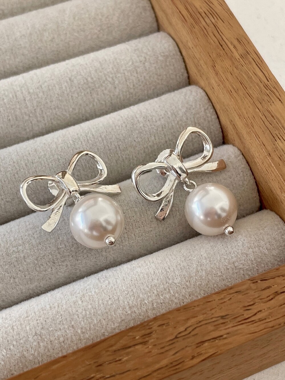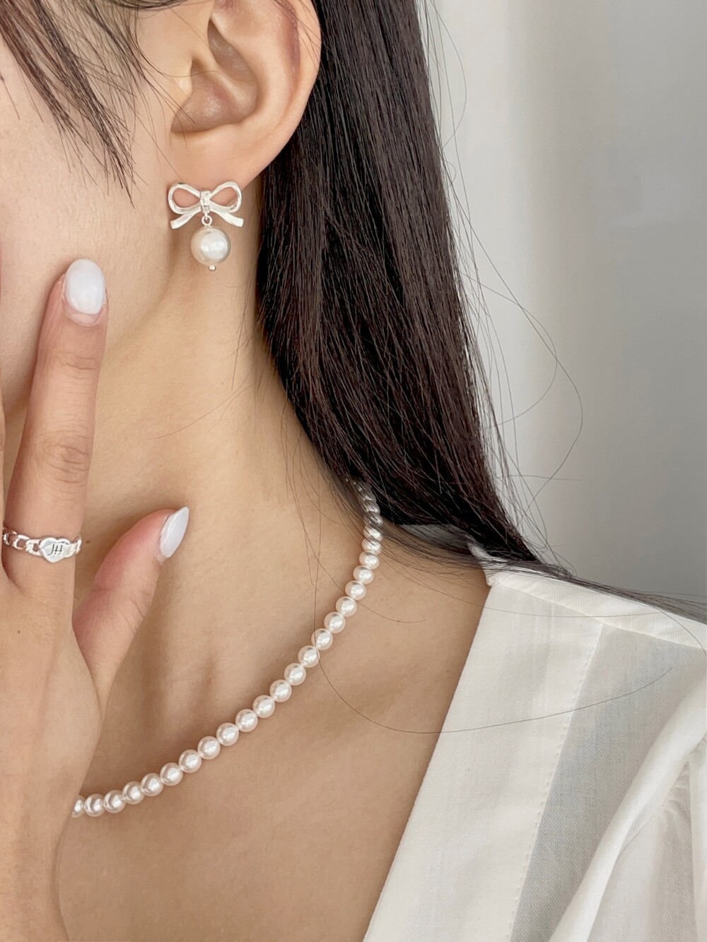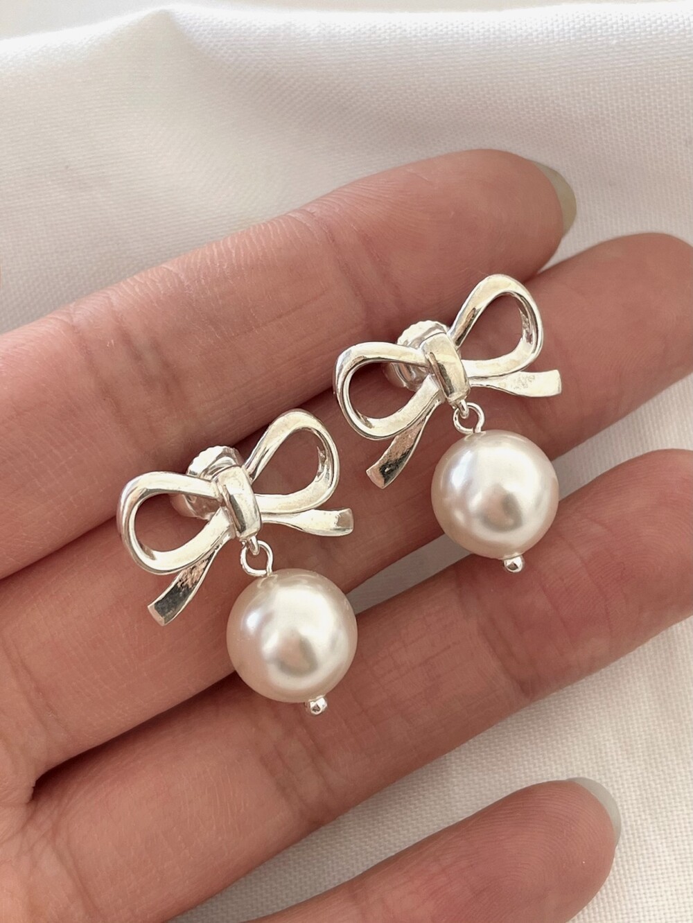 실버 러블리 리본 진주 귀걸이