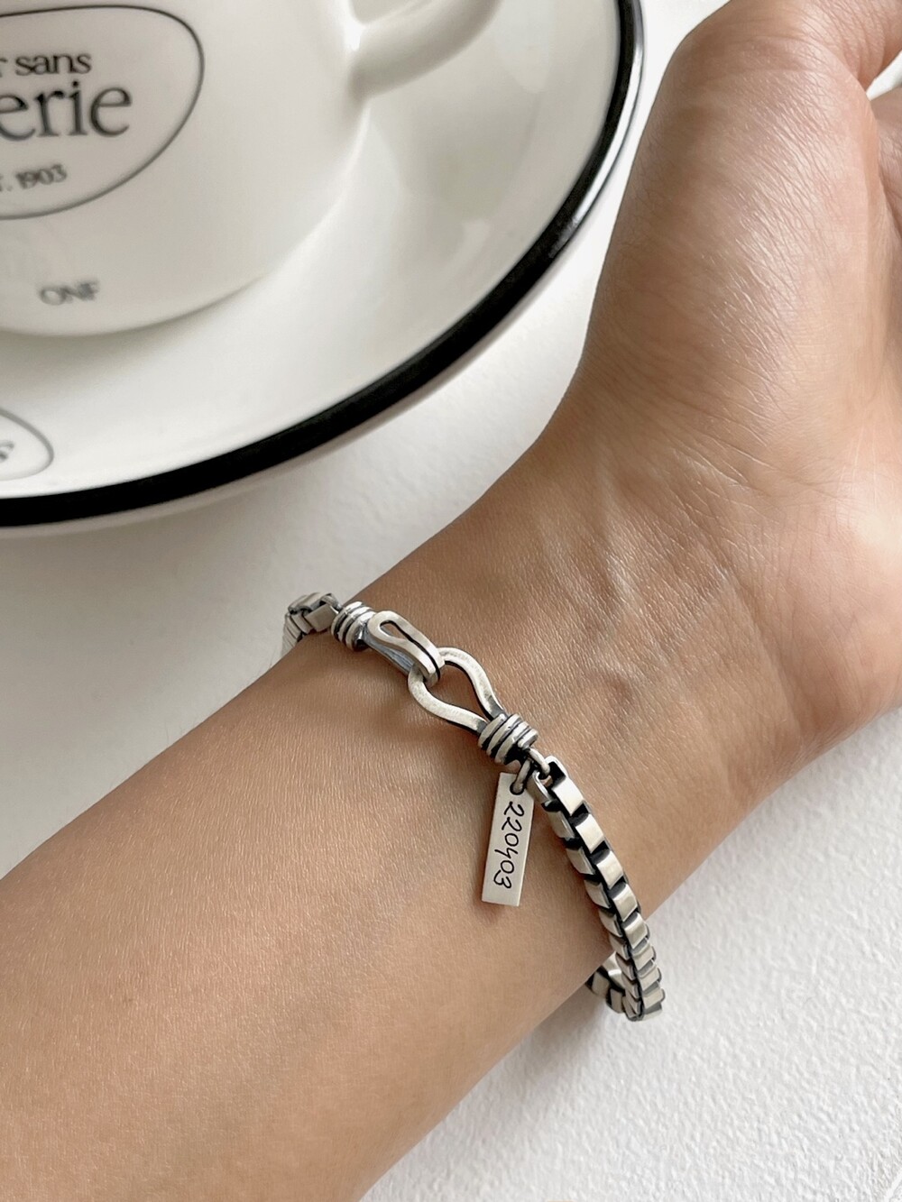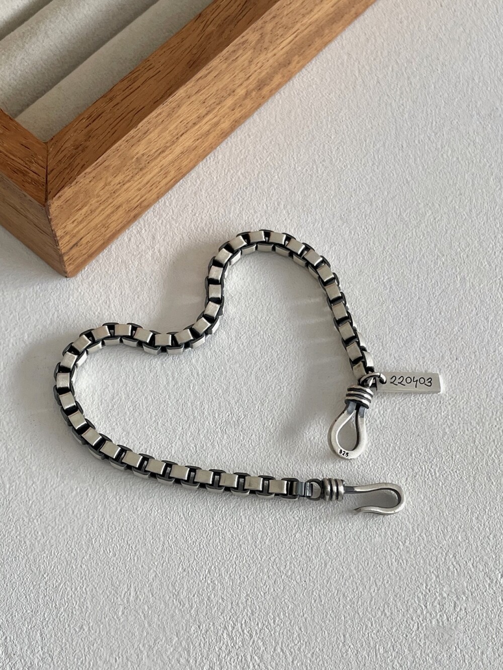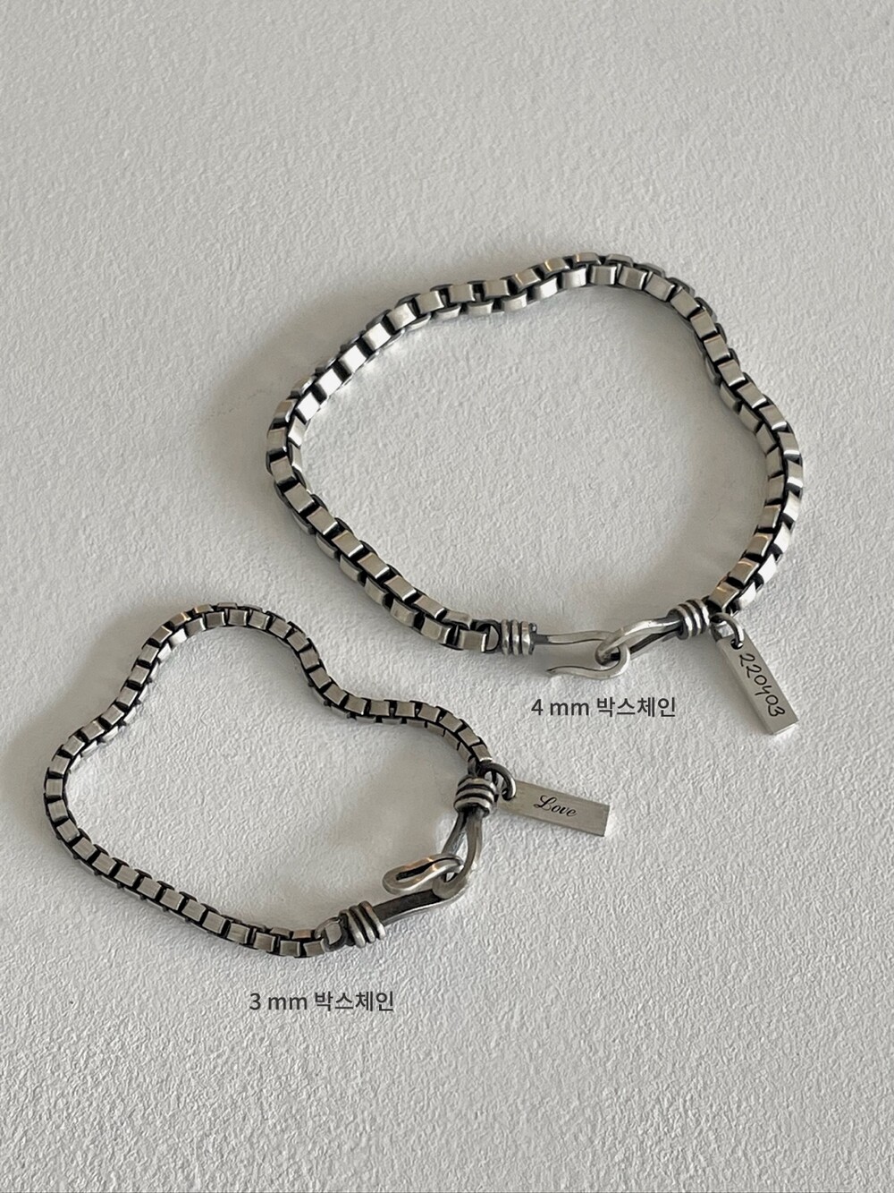실버 갈고리 4mm 박스체인 이니셜 각인 팔찌 발찌