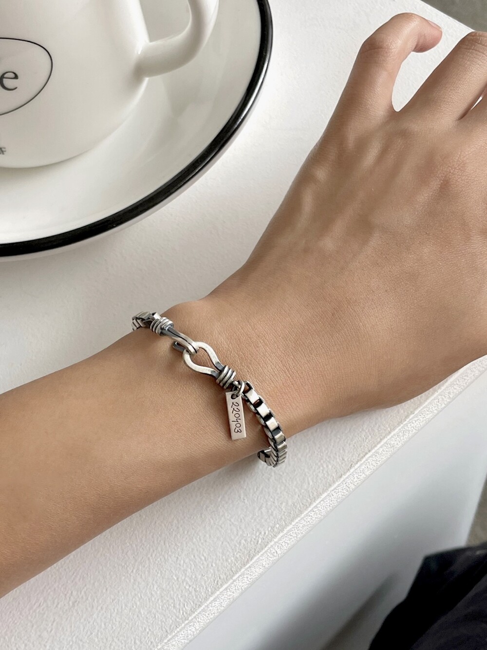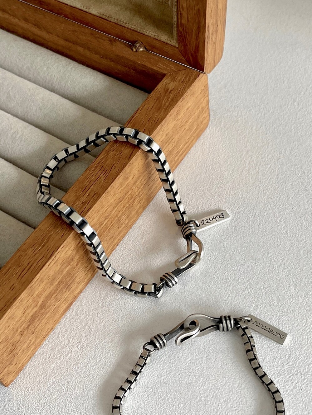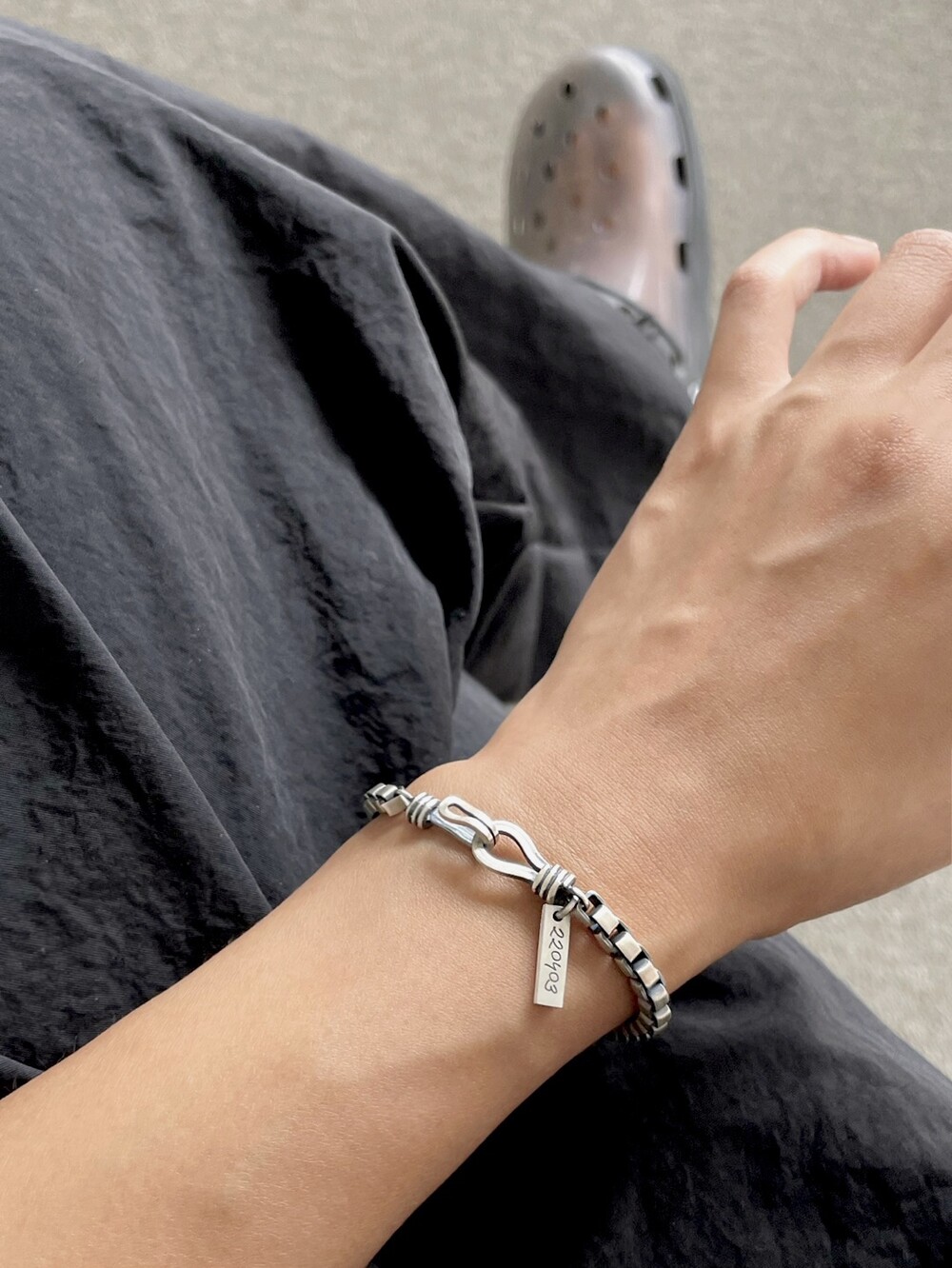 실버 갈고리 4mm 박스체인 이니셜 각인 팔찌 발찌