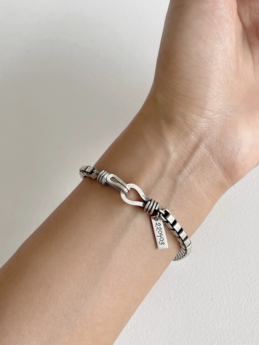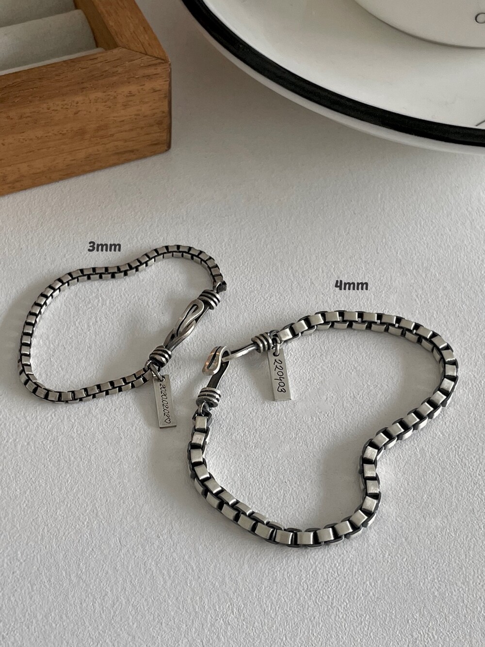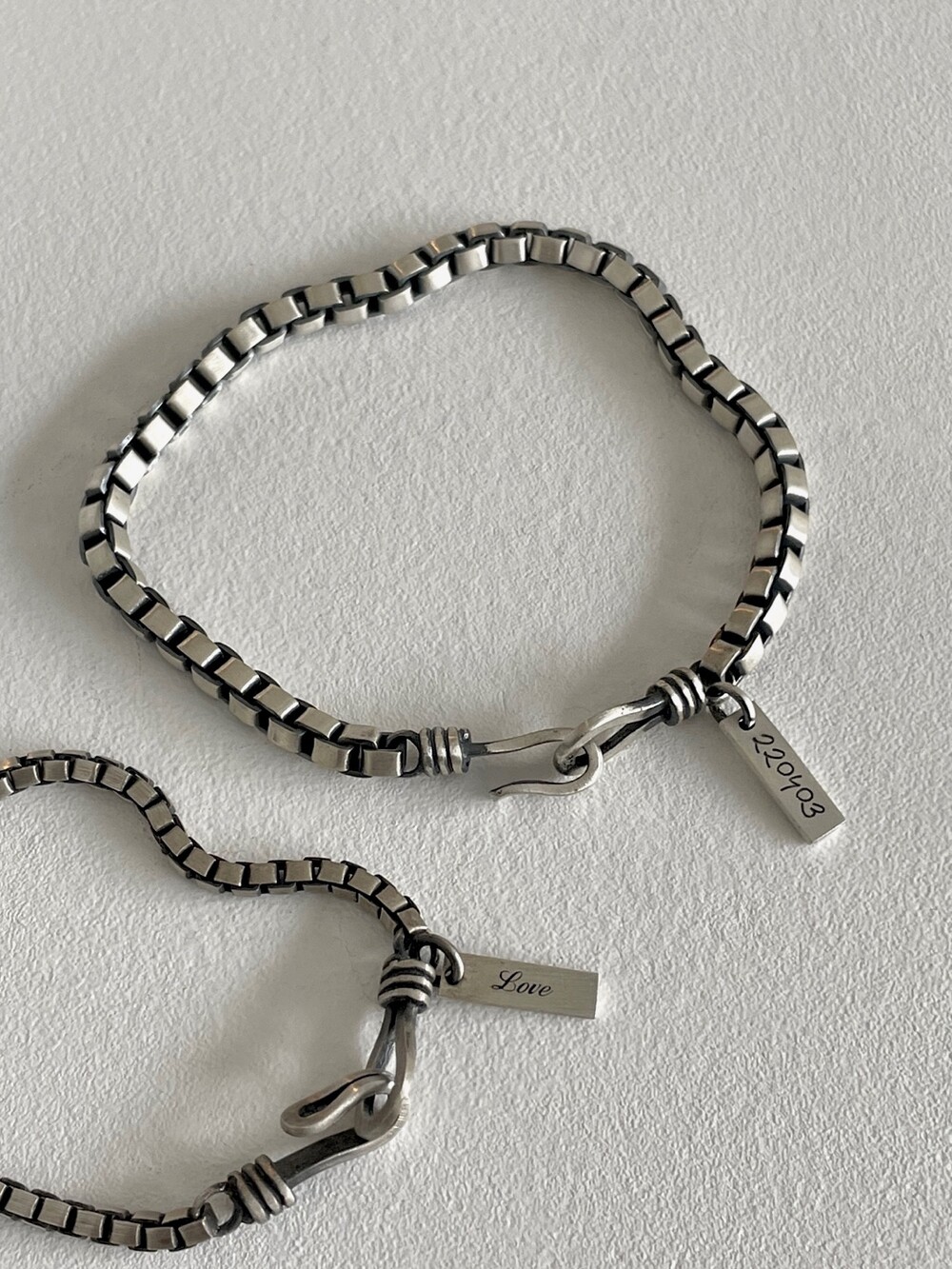 4mm 갈고리 박스체인 이니셜 각인 팔찌 발찌