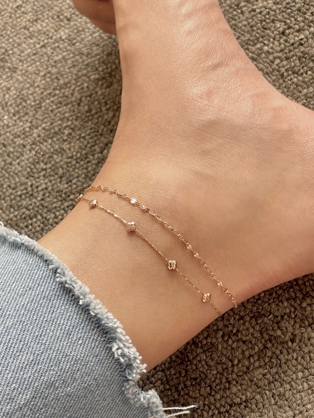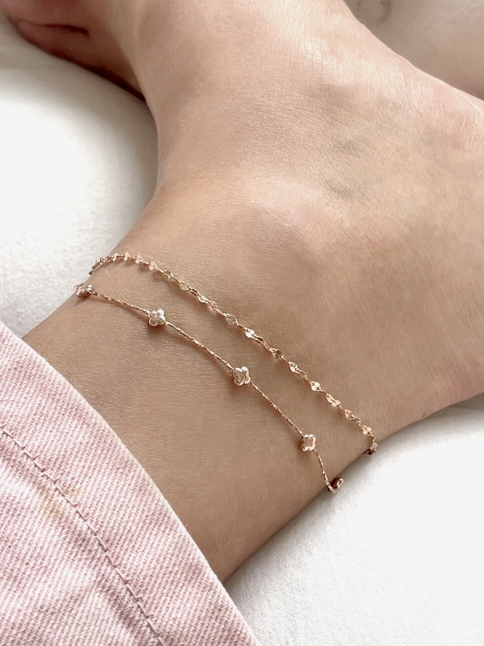 리치 클로버 레이어드 팔찌 발찌