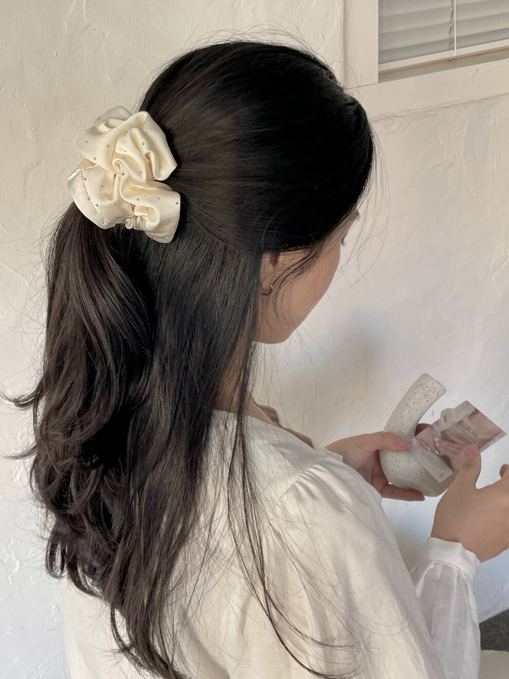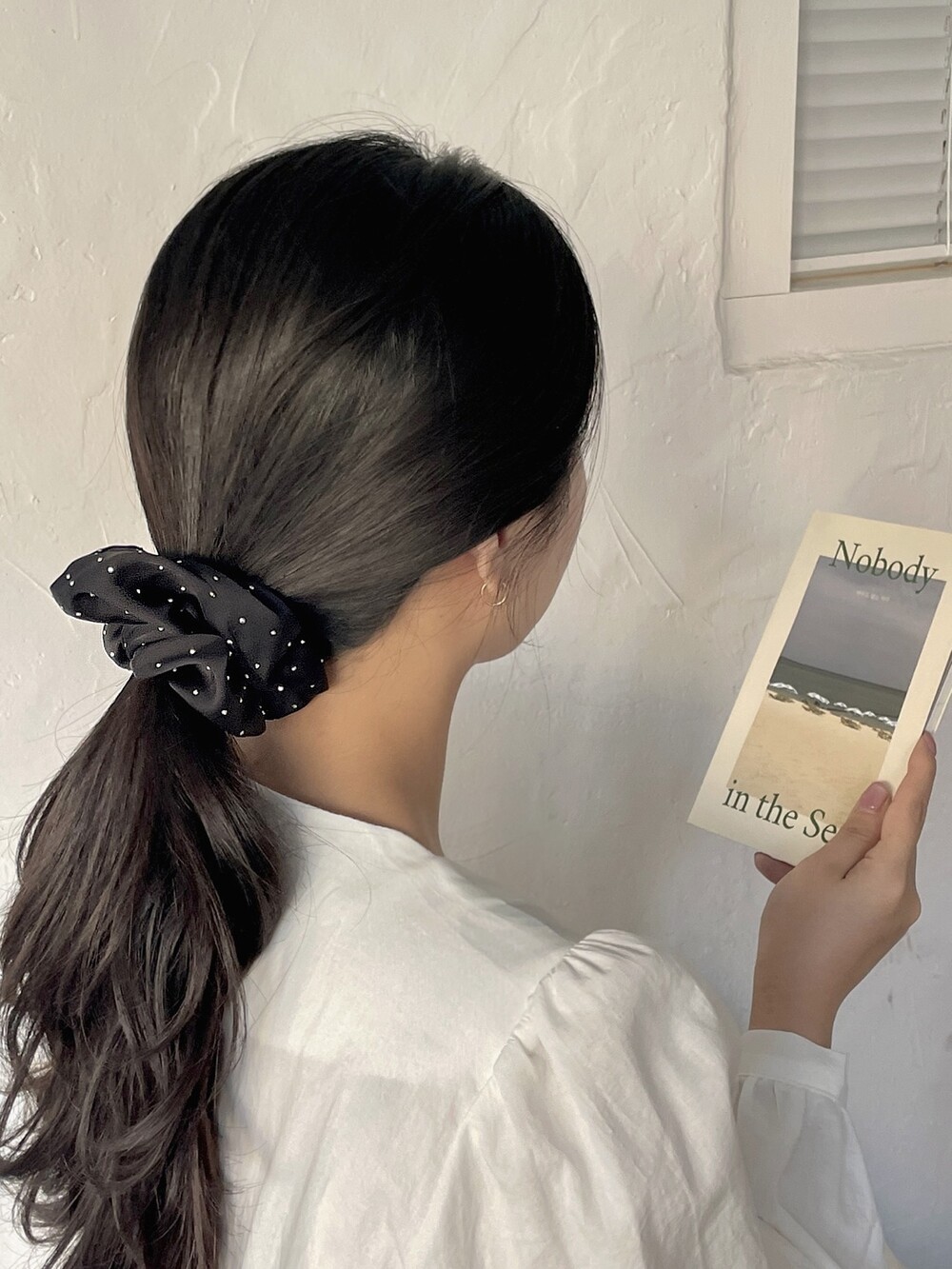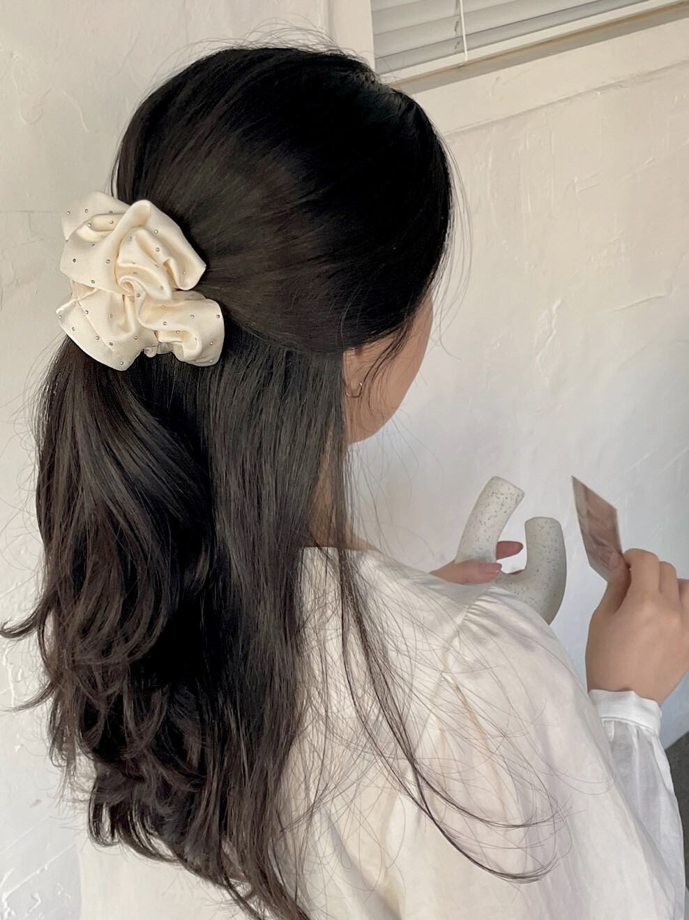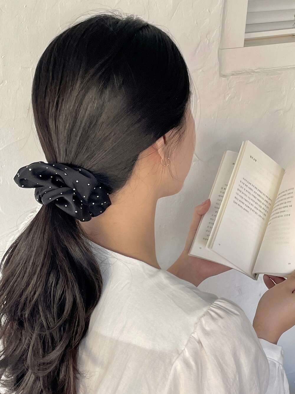 실버 볼 새틴 곱창밴드 헤어슈슈 ( 2 color )