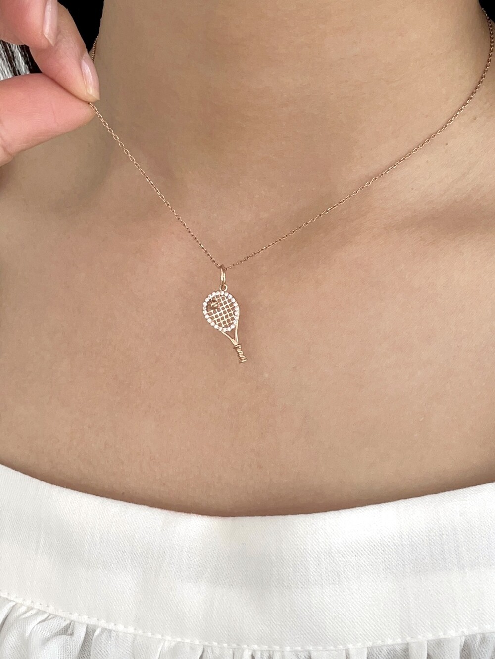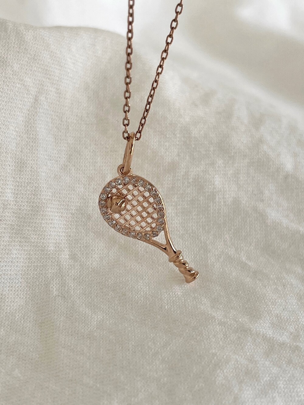테니스 라켓에 테니스볼이 닿아 있는 듯 디테일한 느낌의 펜던트에요 : )
