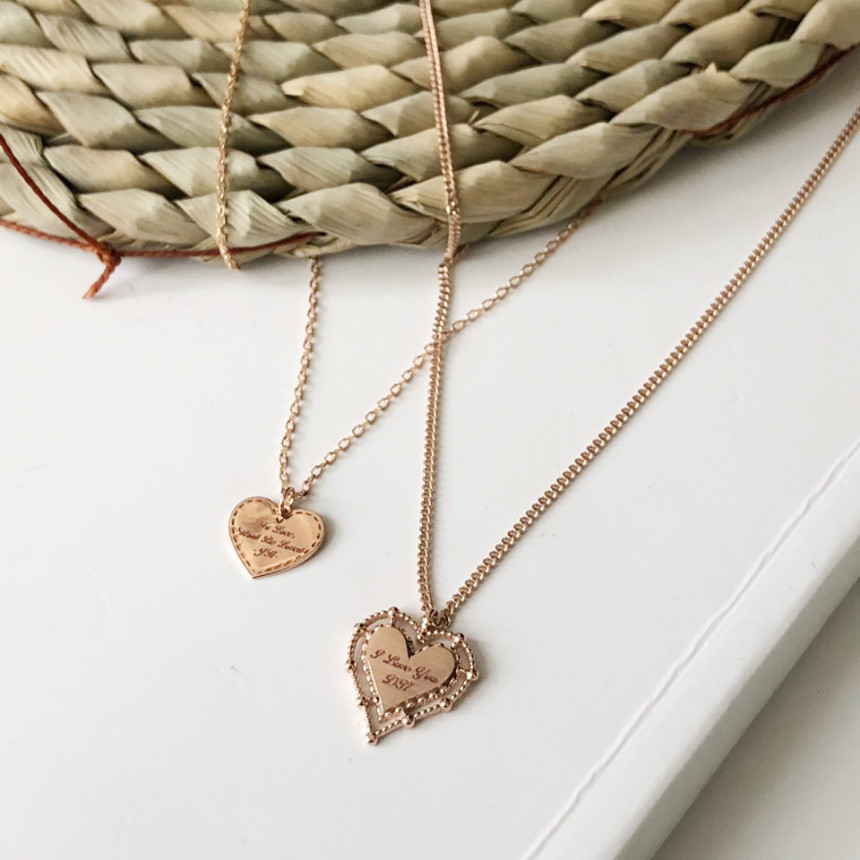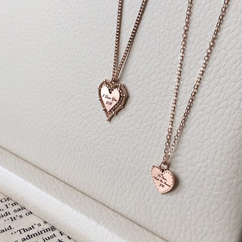원하는 문구 각인 가능한 귀여운 하트 목걸이 랍니다.