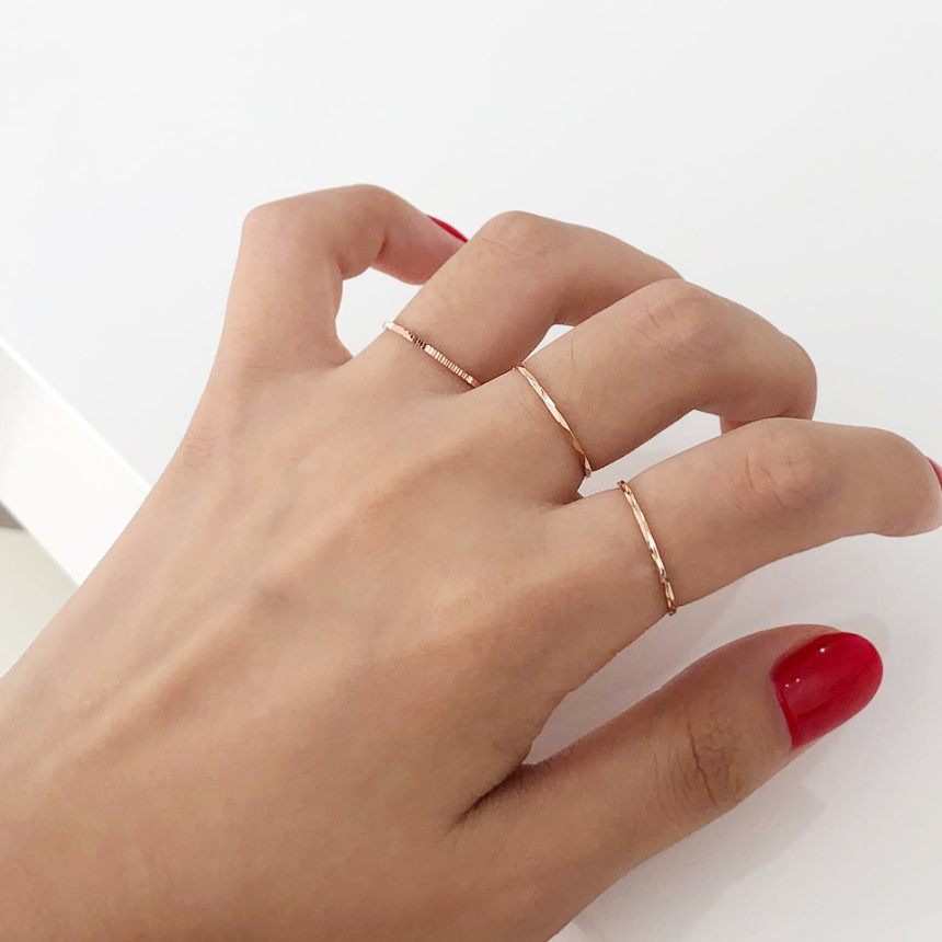 14K 18K 레이어드 미러 커팅 실 반지 링