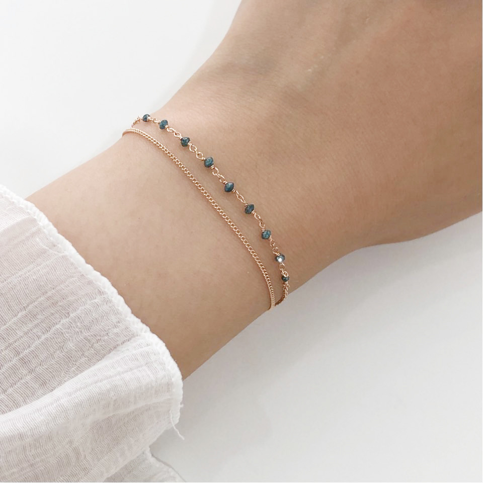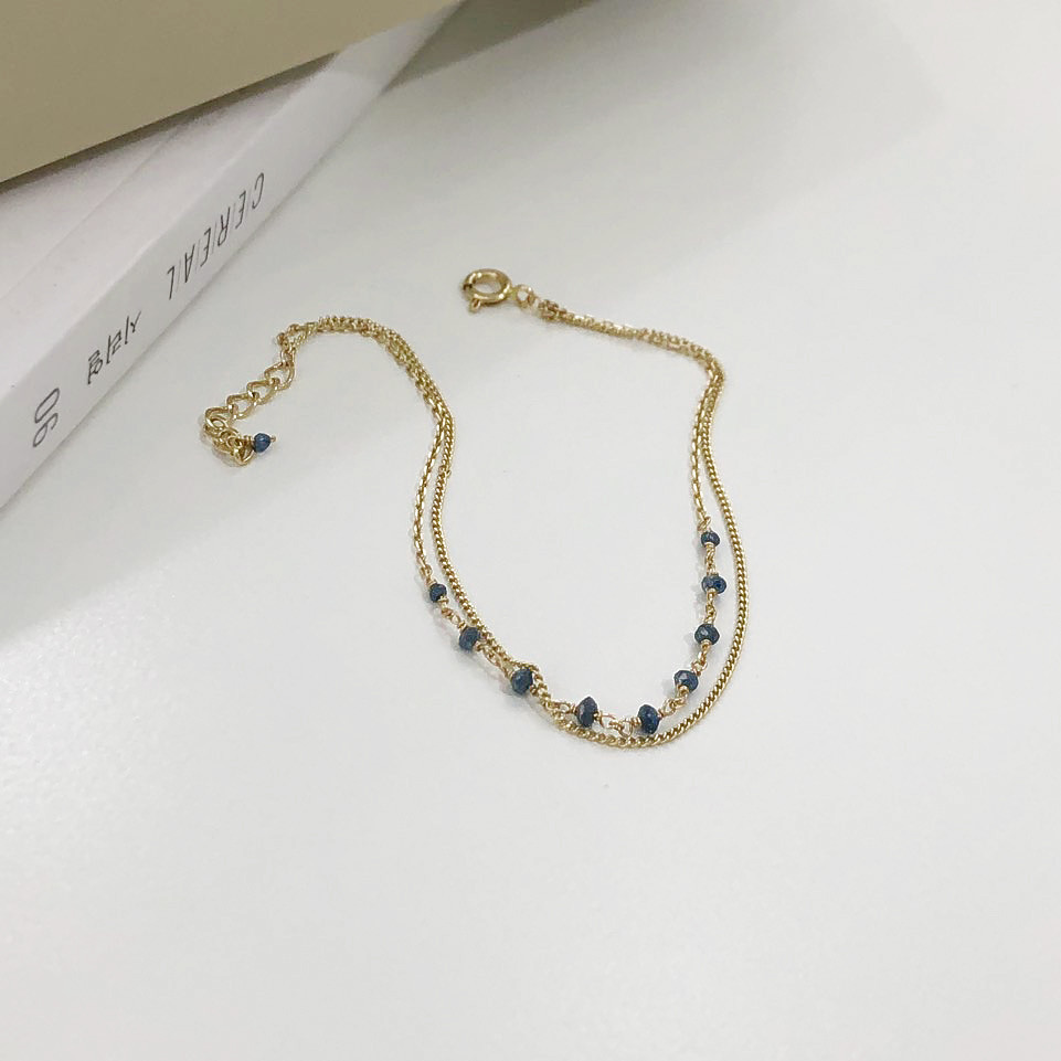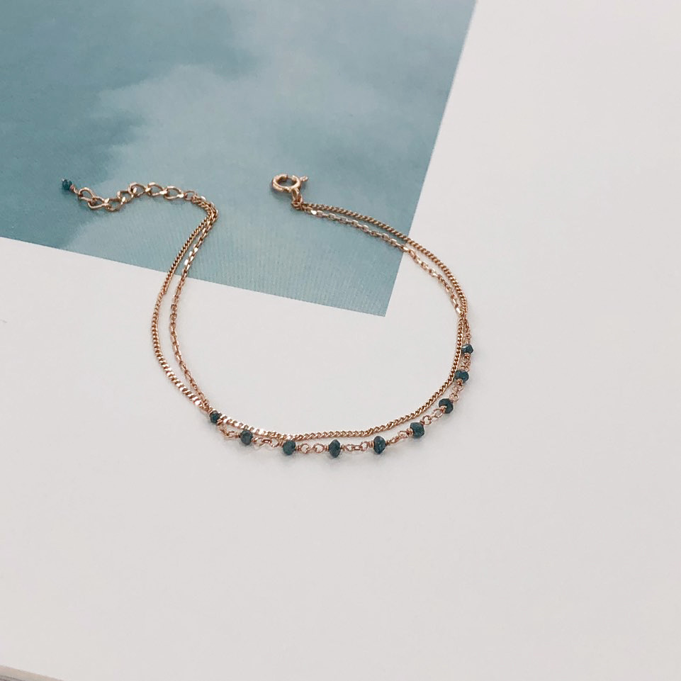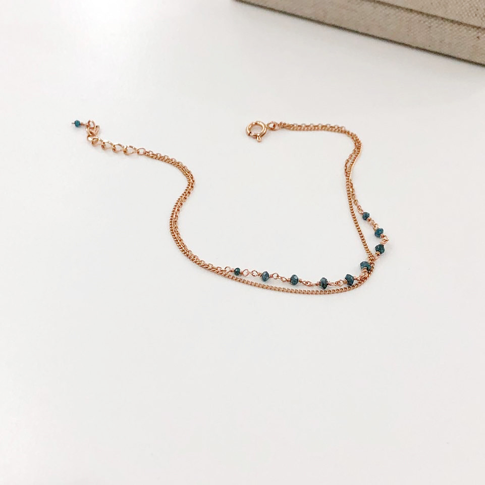 14K 18K 러프 블루 다이아몬드 두줄 레이어드 체인 팔찌 발찌