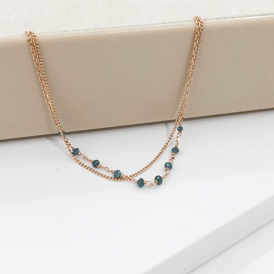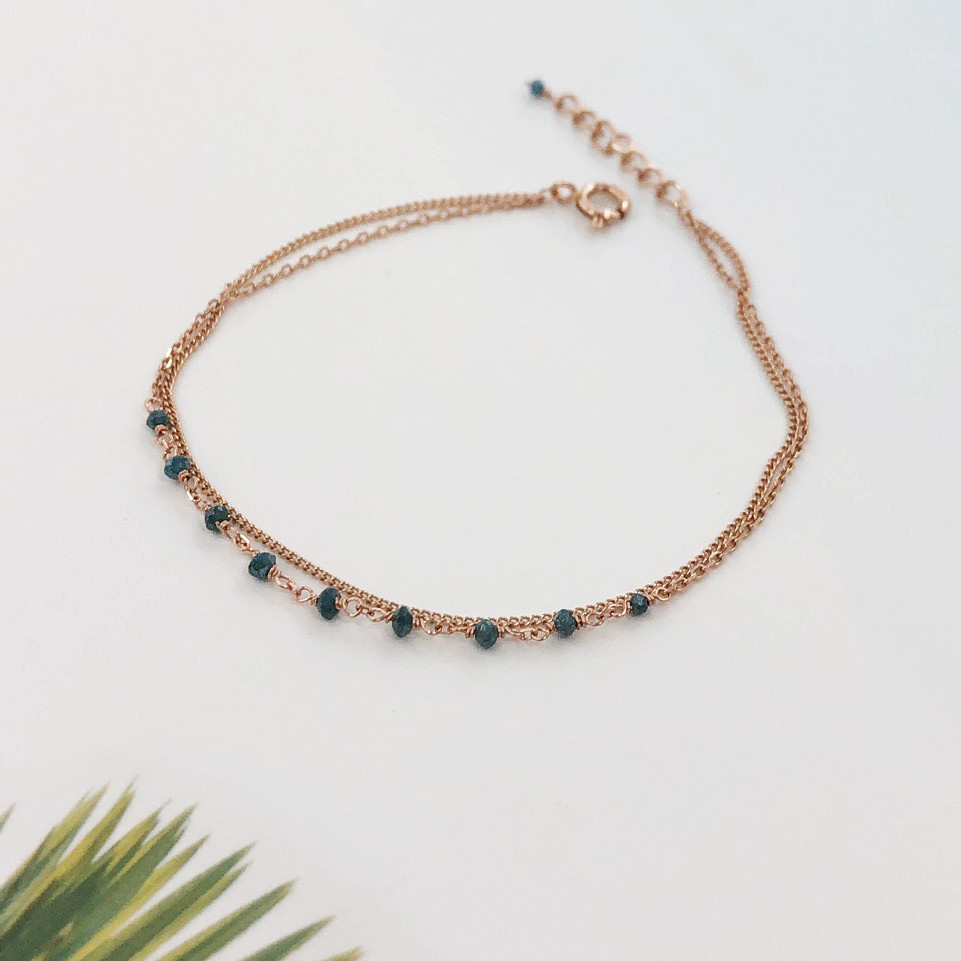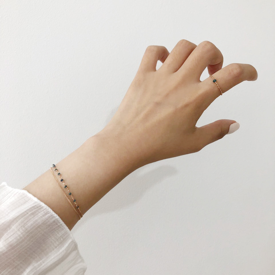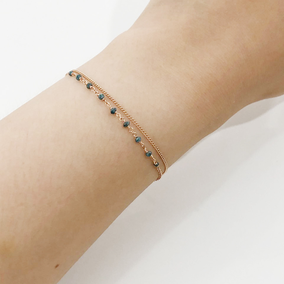 14K 18K 러프 블루 다이아몬드 두줄 레이어드 체인 팔찌 발찌