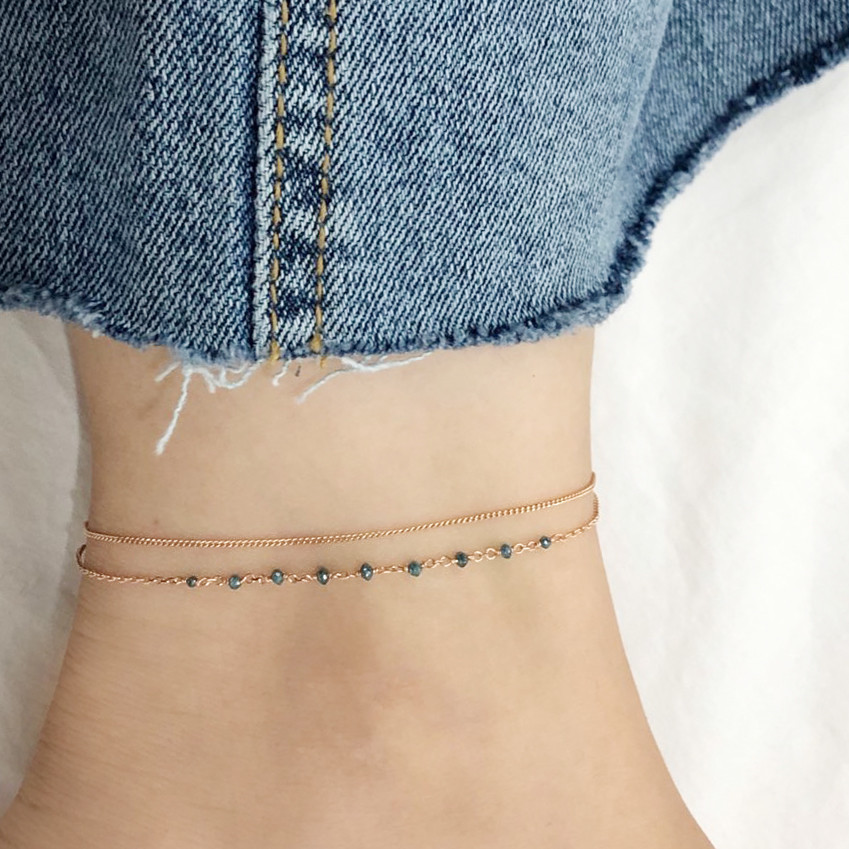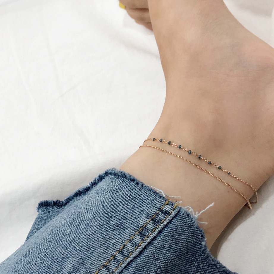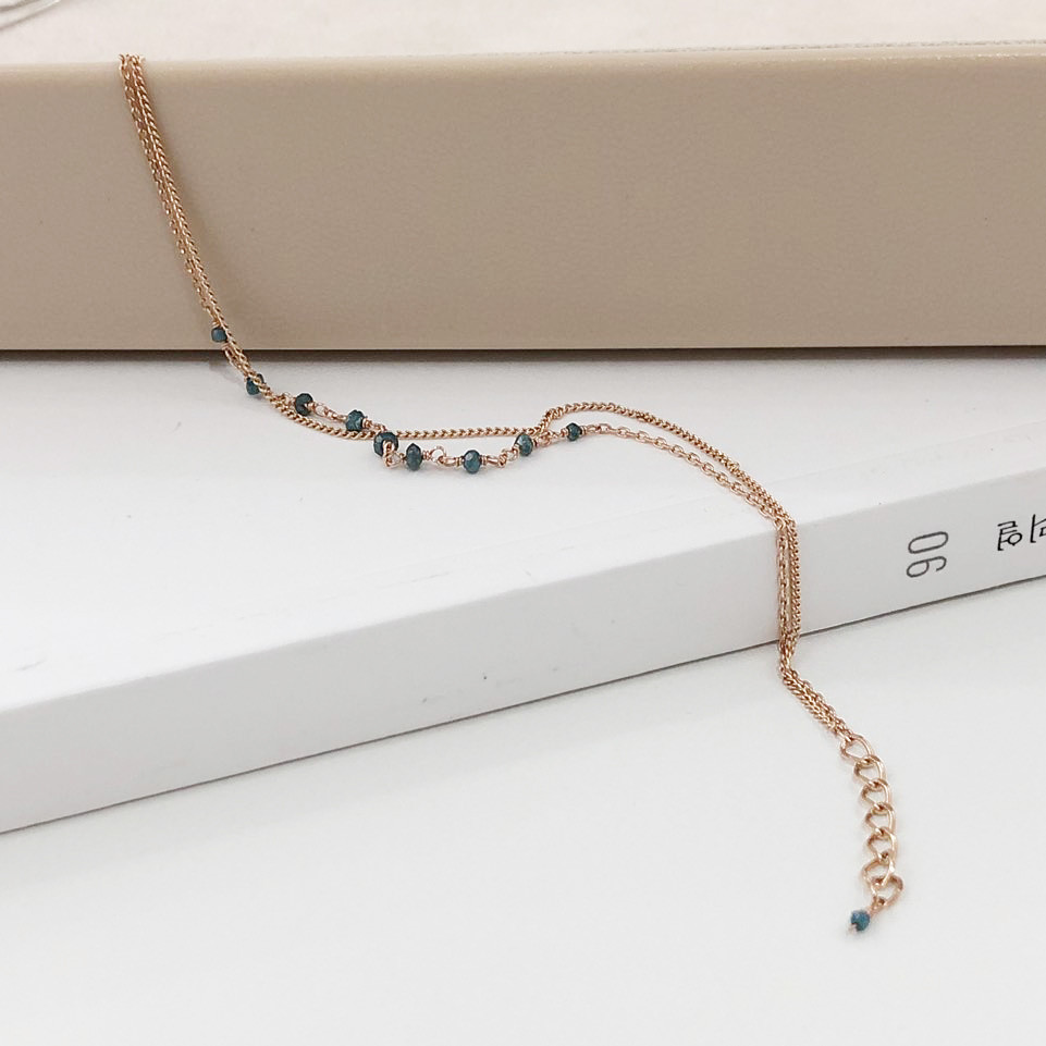 러프 블루 다이아몬드 두줄 레이어드 체인 팔찌 발찌