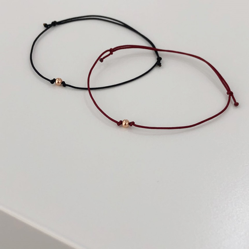 14K 18K 3mm 볼 실크 매듭 끈 팔찌