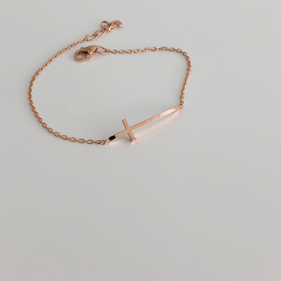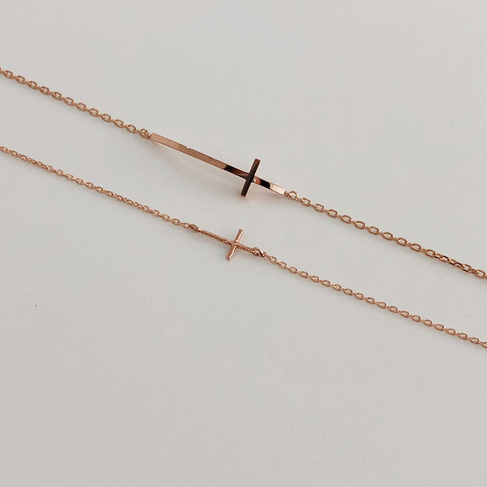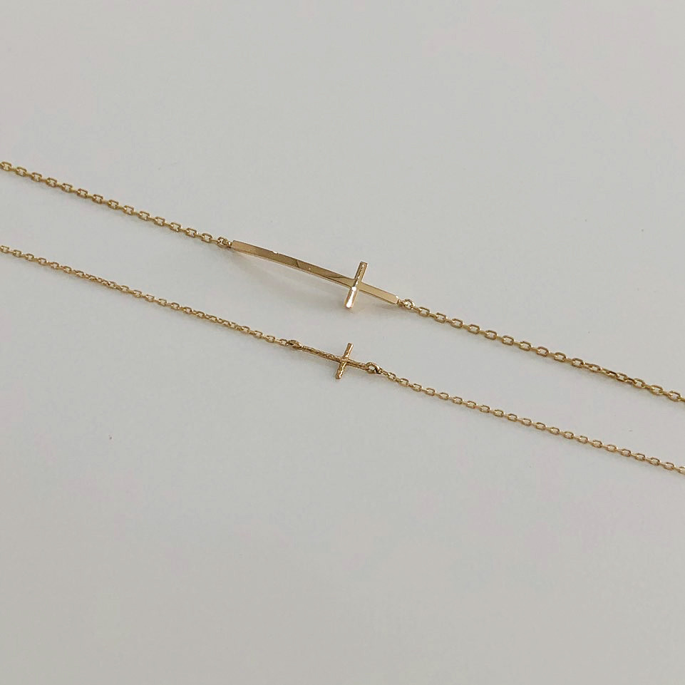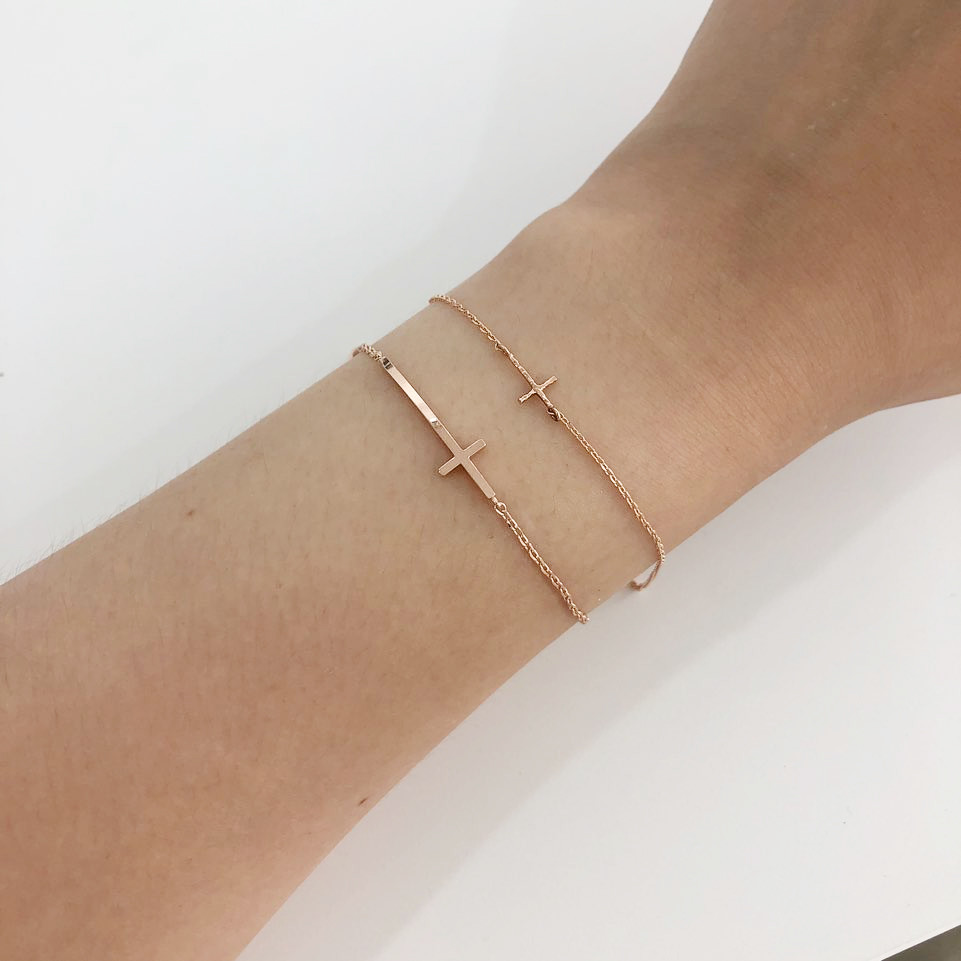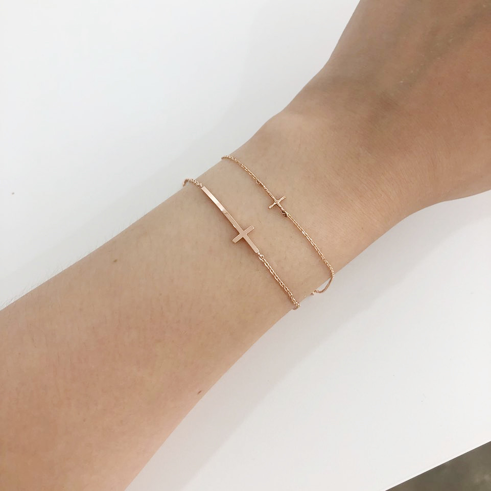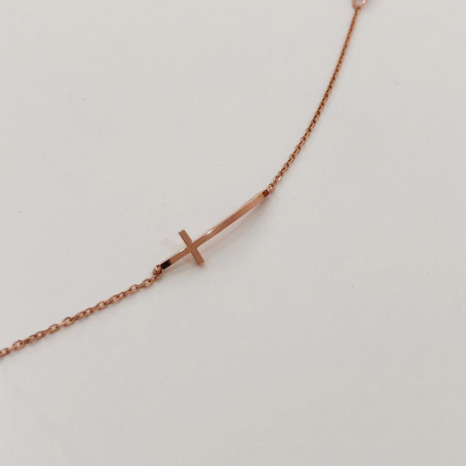 14K 18K 스틱 십자가 체인 팔찌