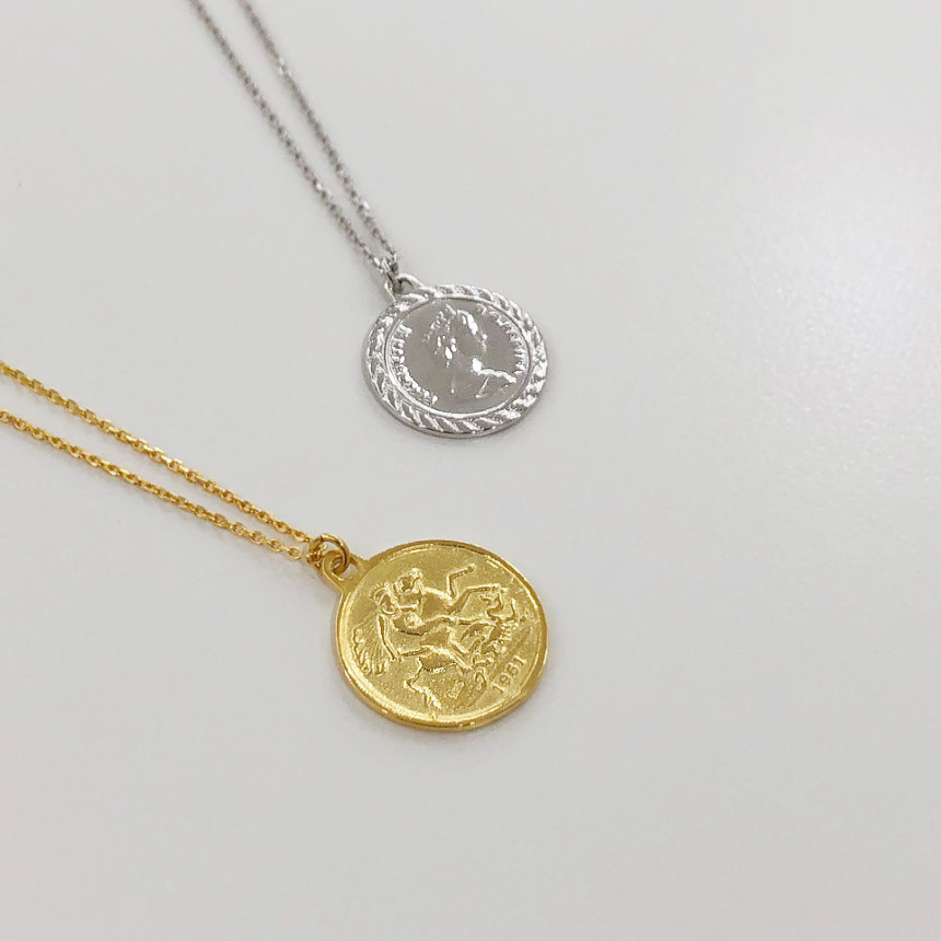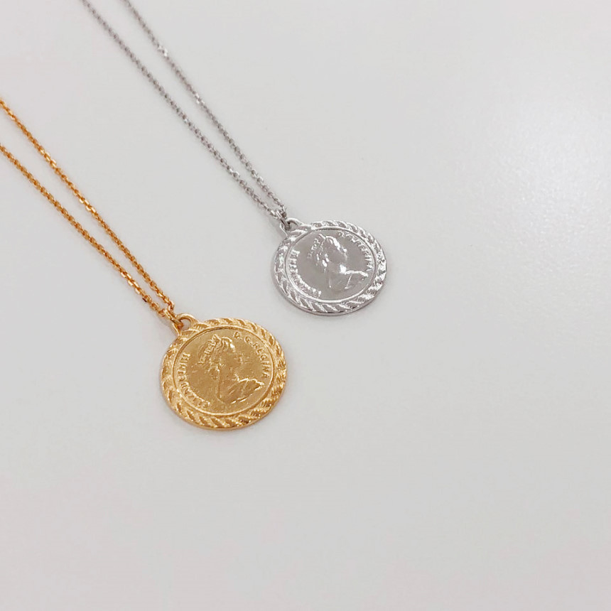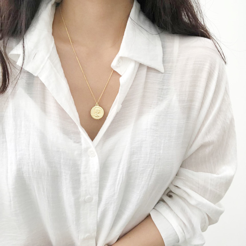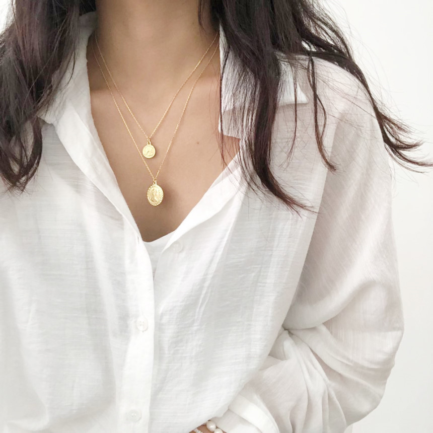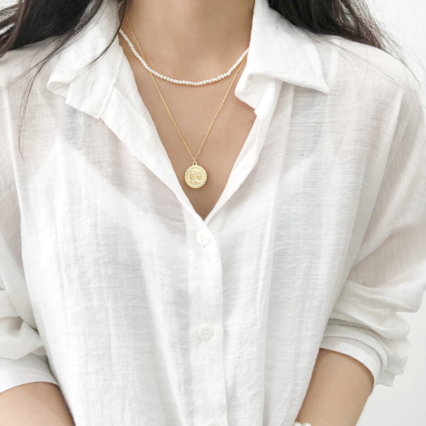실버 미니 라운드 코인 목걸이와 함께 레이어드 해 보았어요