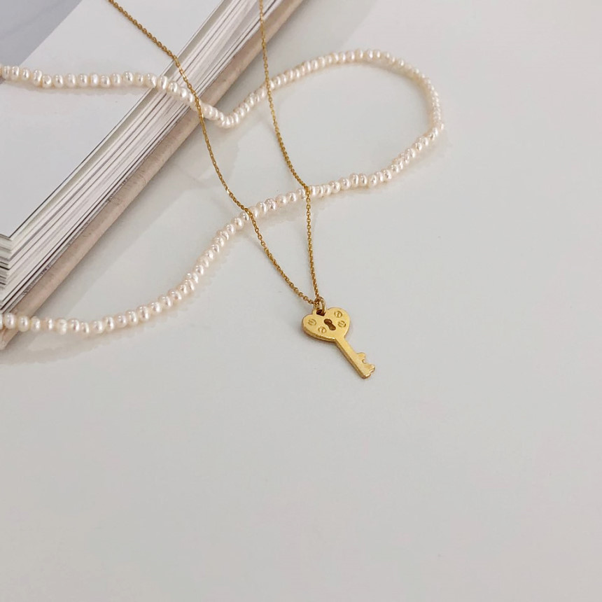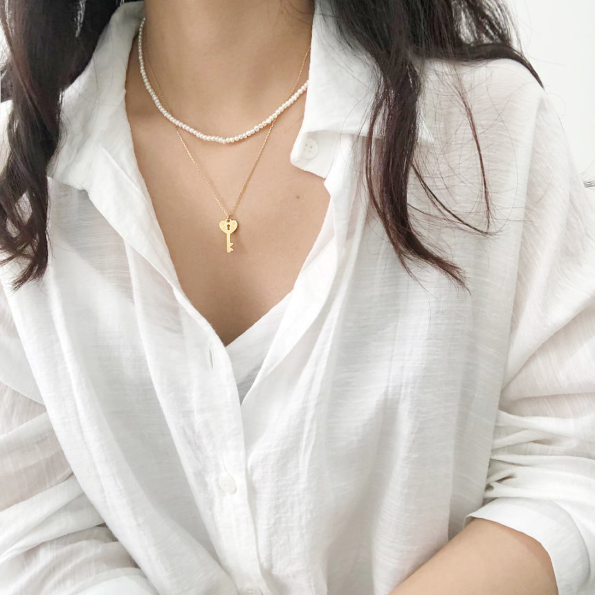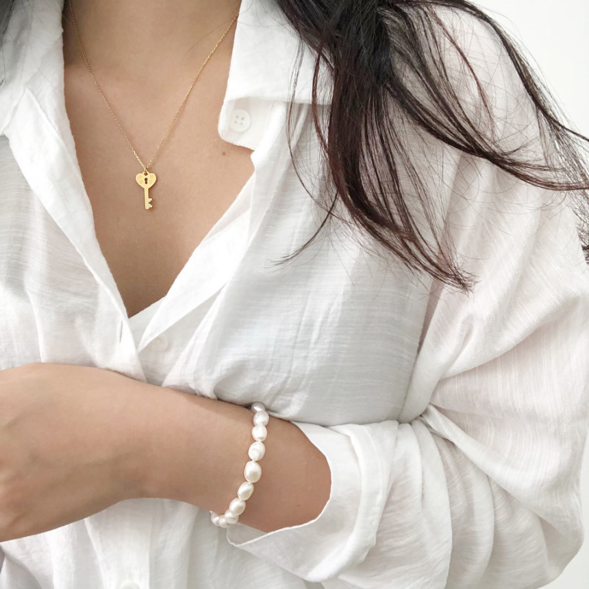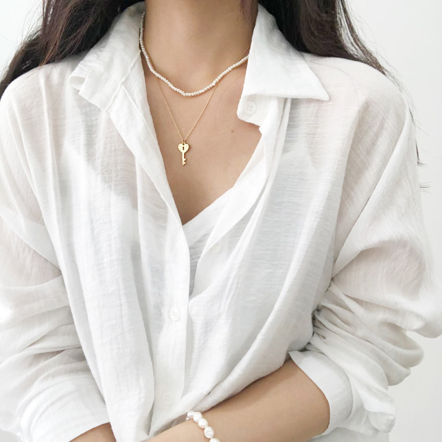 실버 슬림 바로크 담수 진주 비드목걸이와 함께