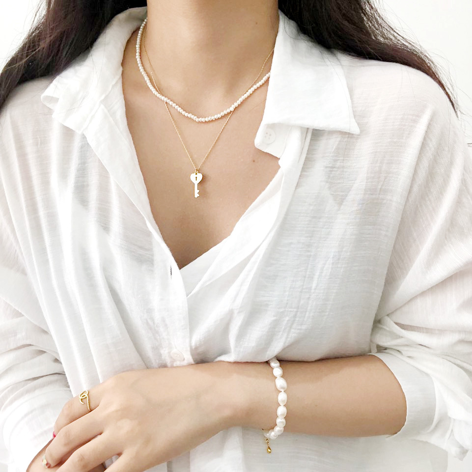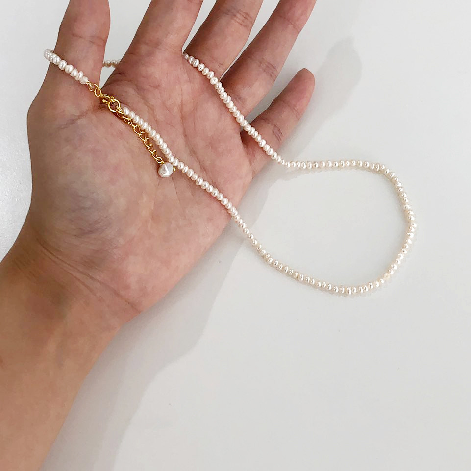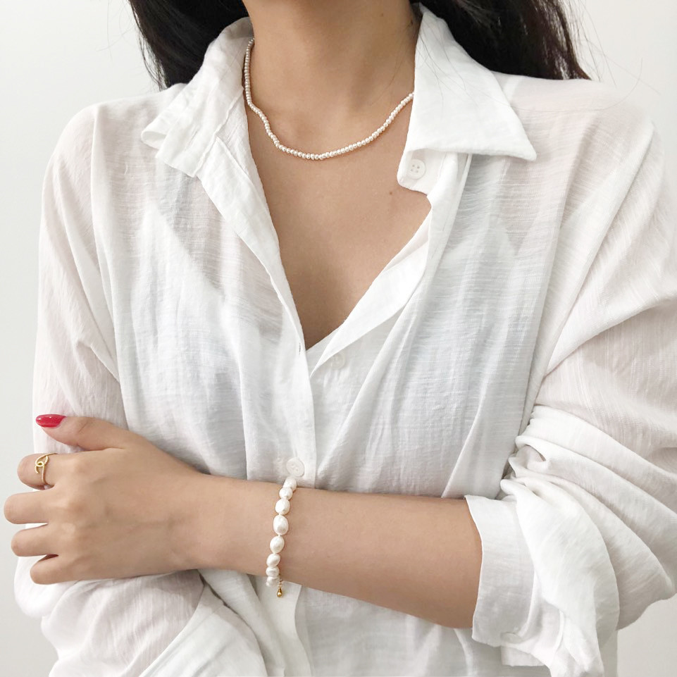 실버 슬림 바로크 담수 진주 비드 목걸이