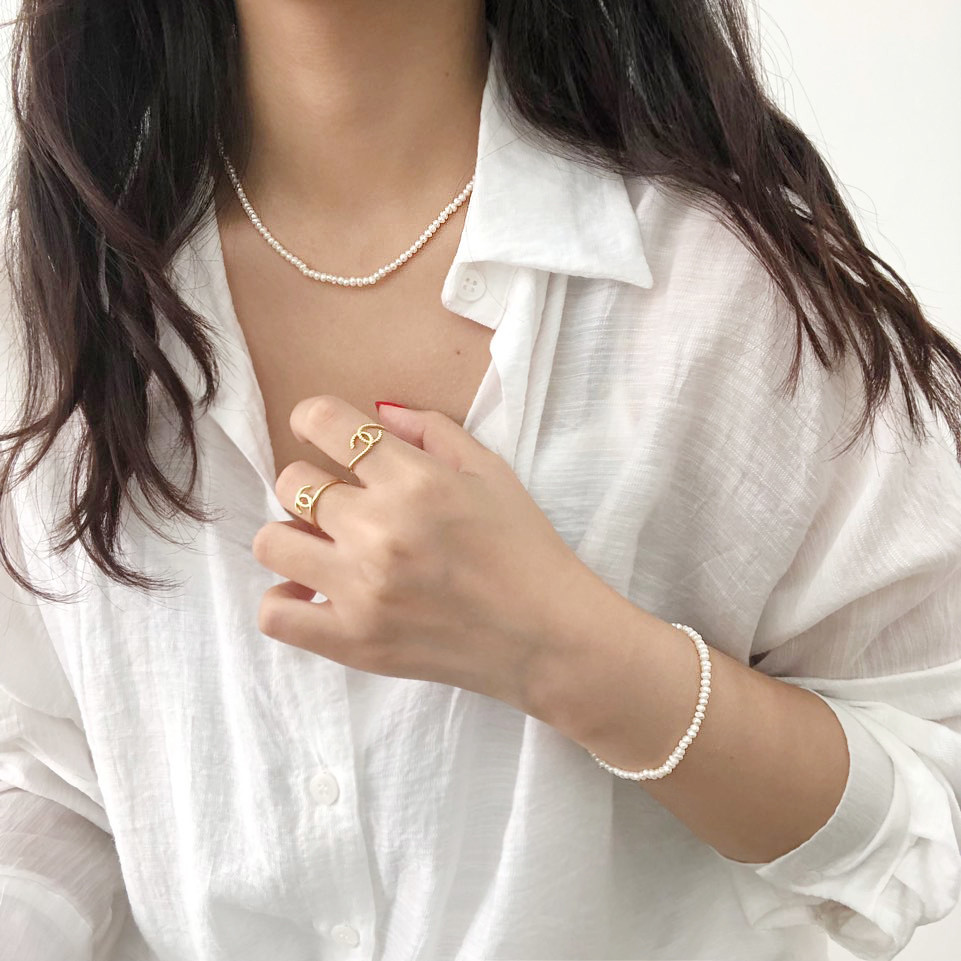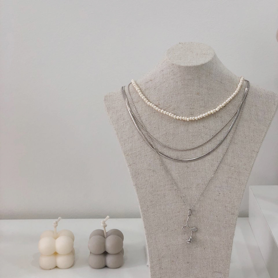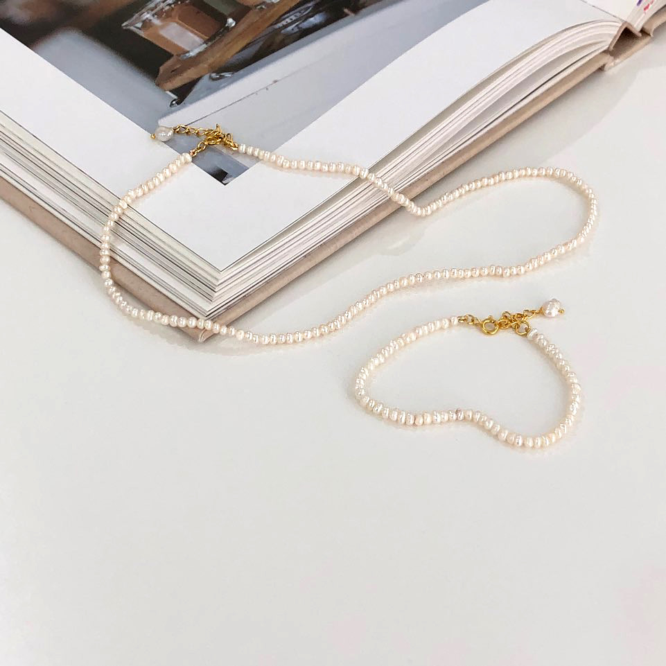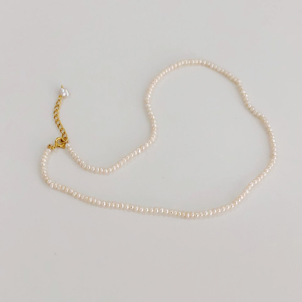 실버 슬림 바로크 담수 진주 비드 목걸이