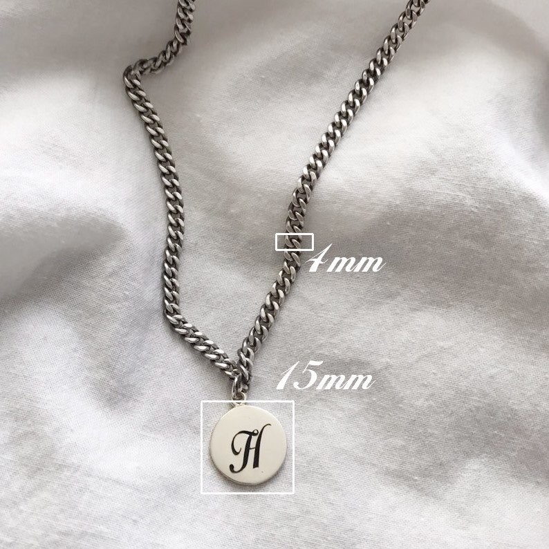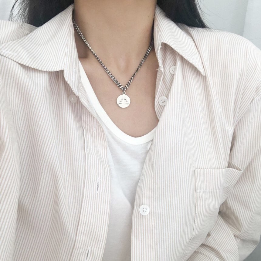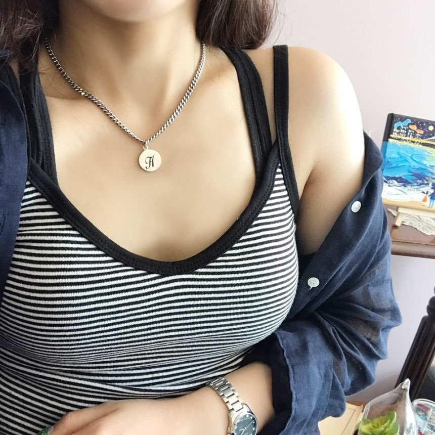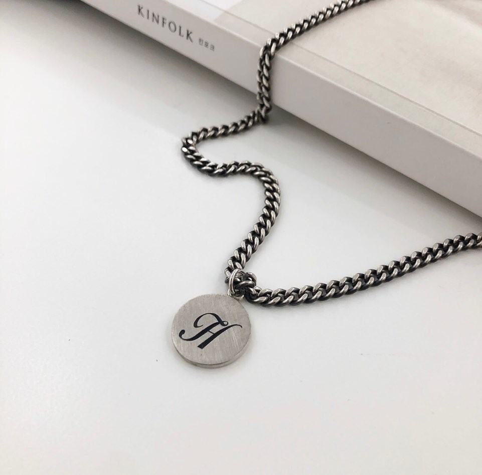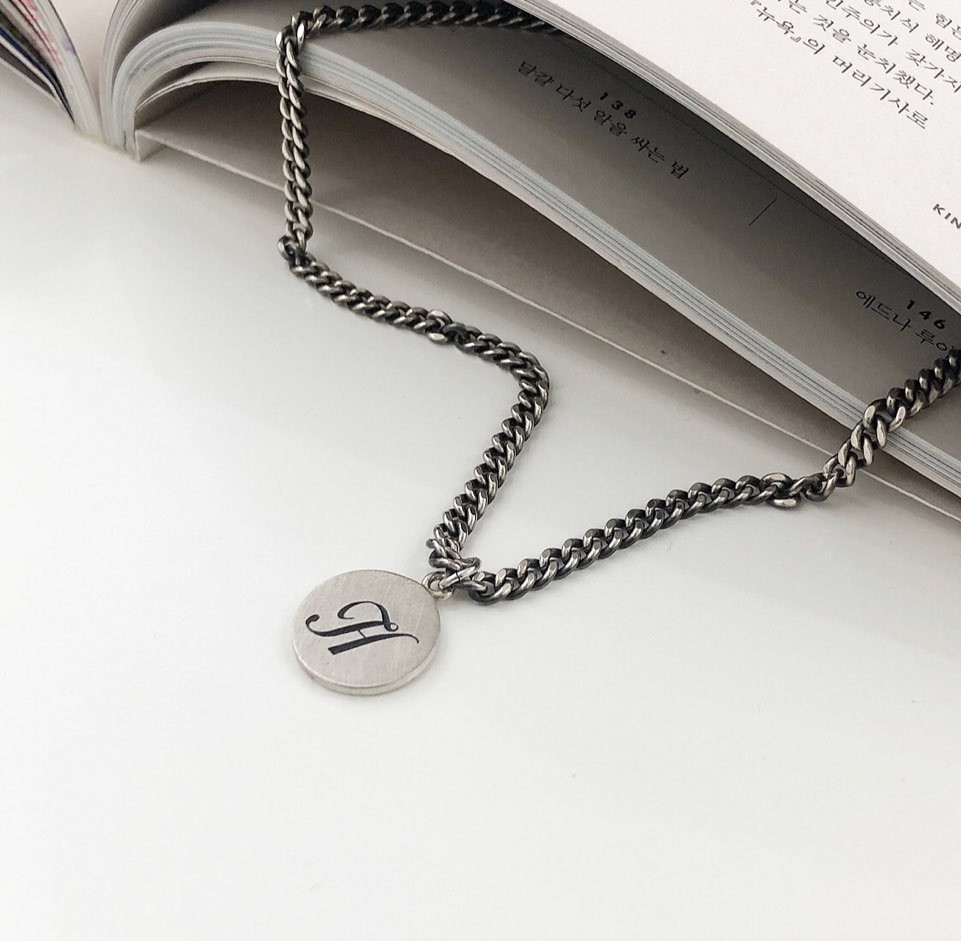 실버 이니셜 각인 코인 유화 볼륨 체인 목걸이