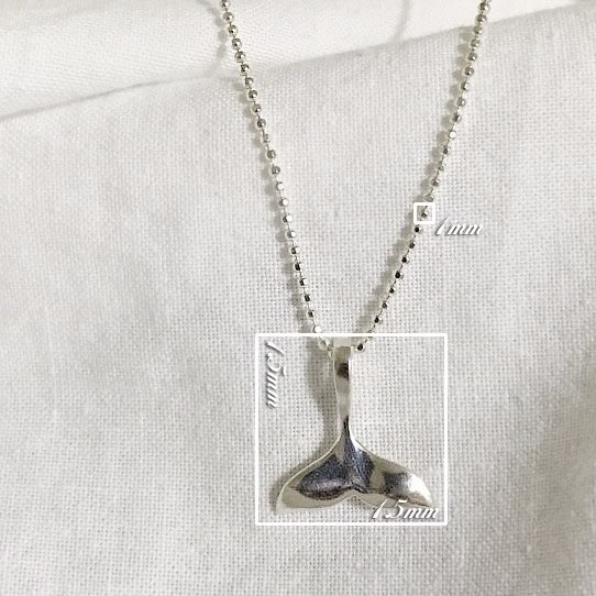 실버 고래 꼬리 이니셜 각인 커팅 볼 목걸이 ( 볼 체인 )