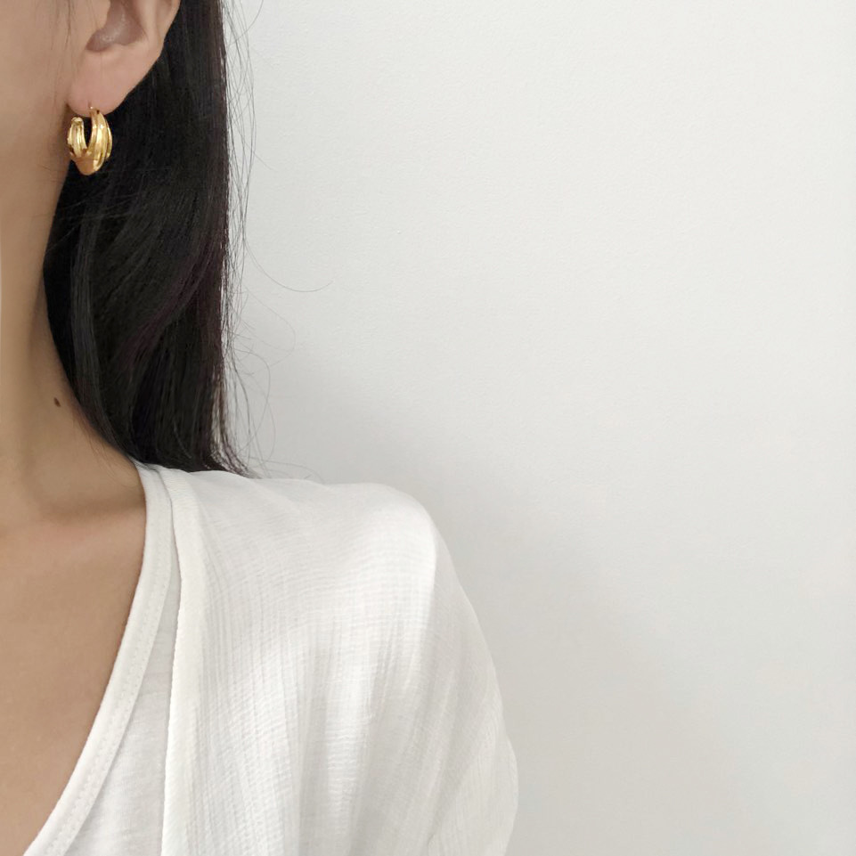 무게감이 느껴지는 볼드 링 귀걸이 입니다.