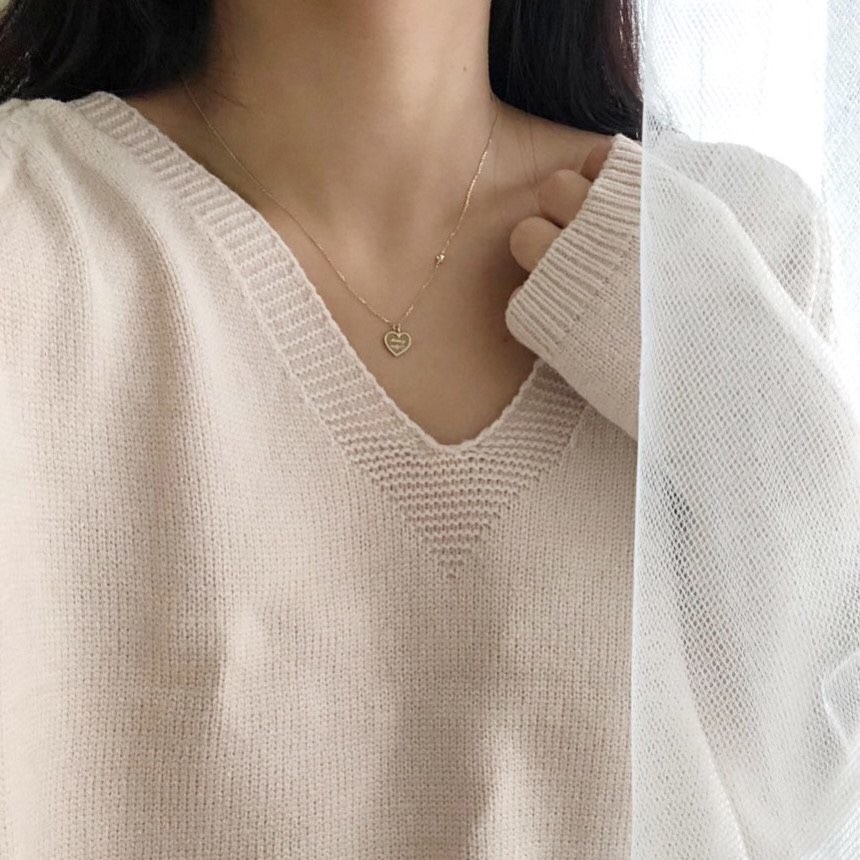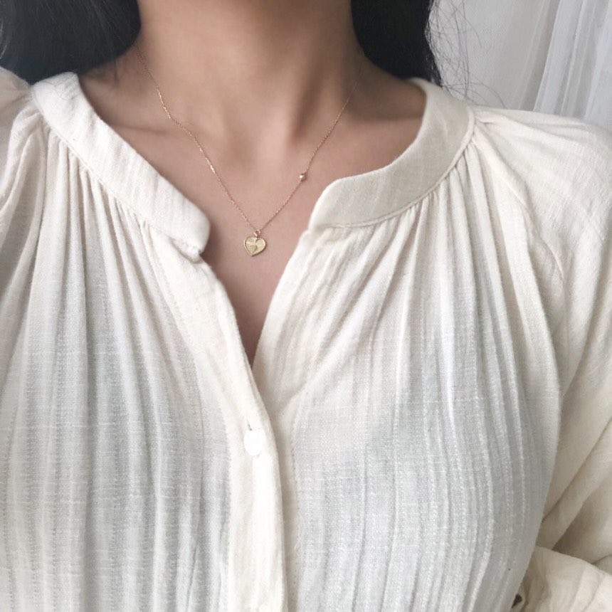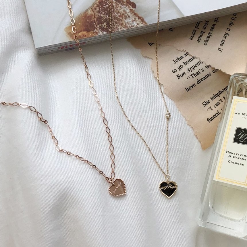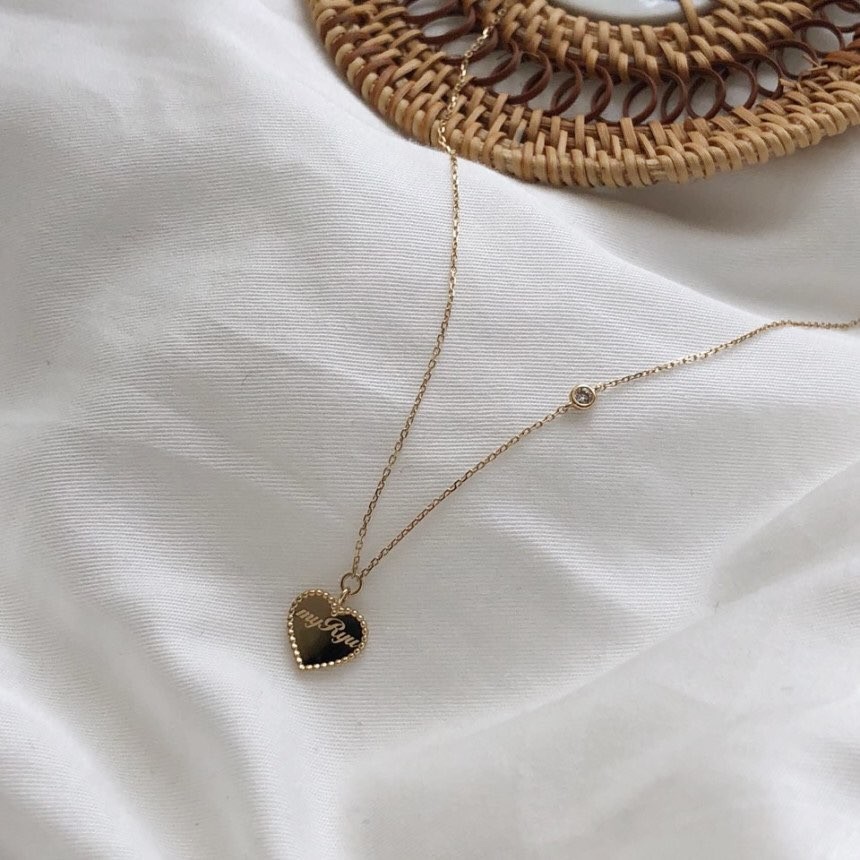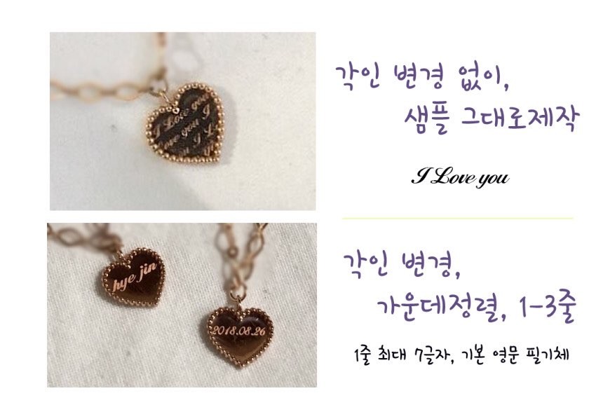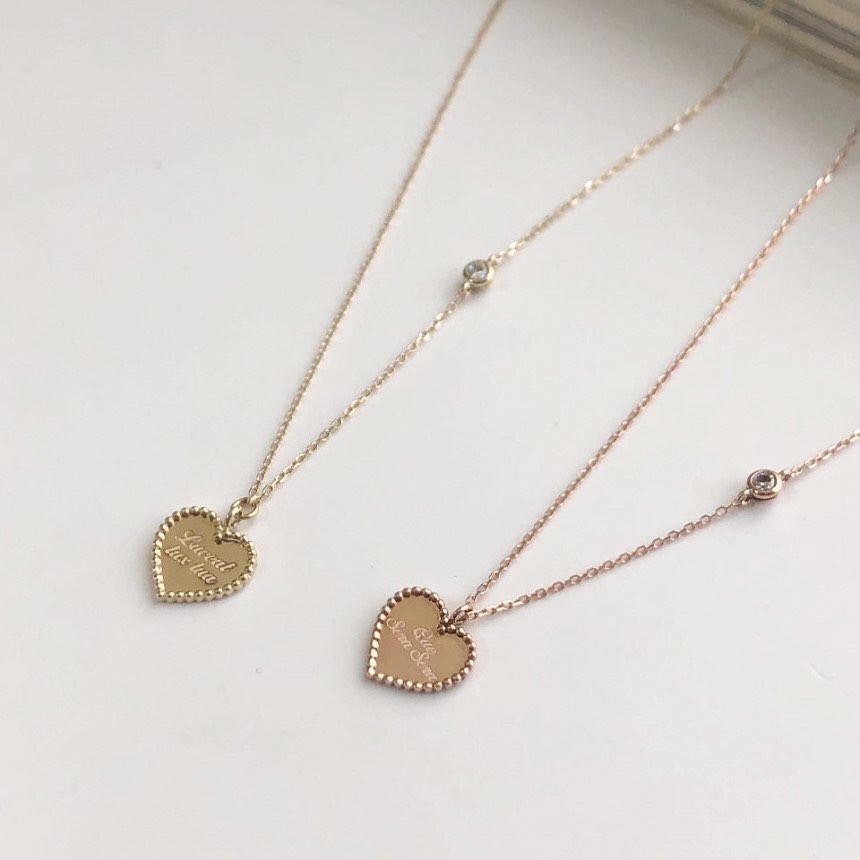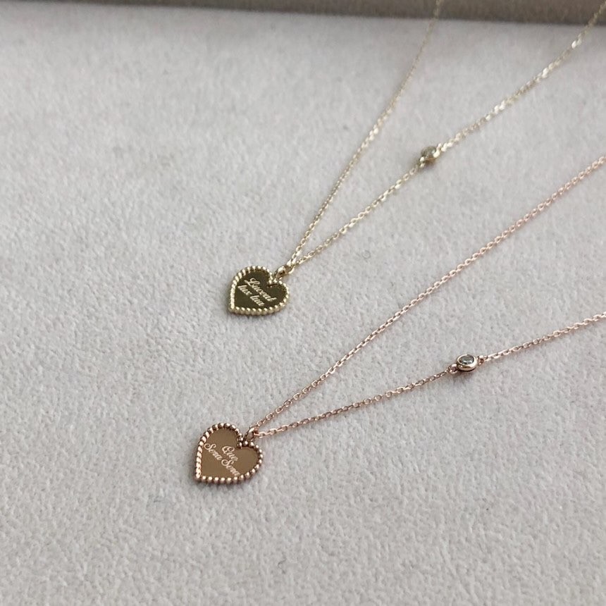 14K 18K 하트 큐 이니셜 각인 목걸이