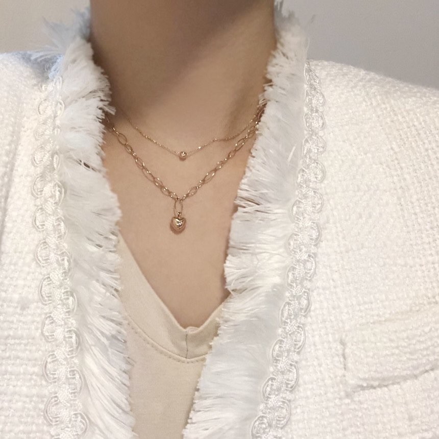 통통 하트 사슬 체인 목걸이와 레이어드 했어요