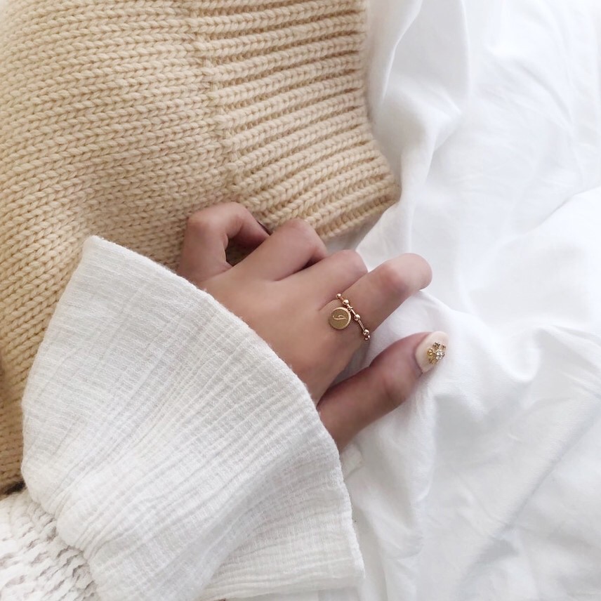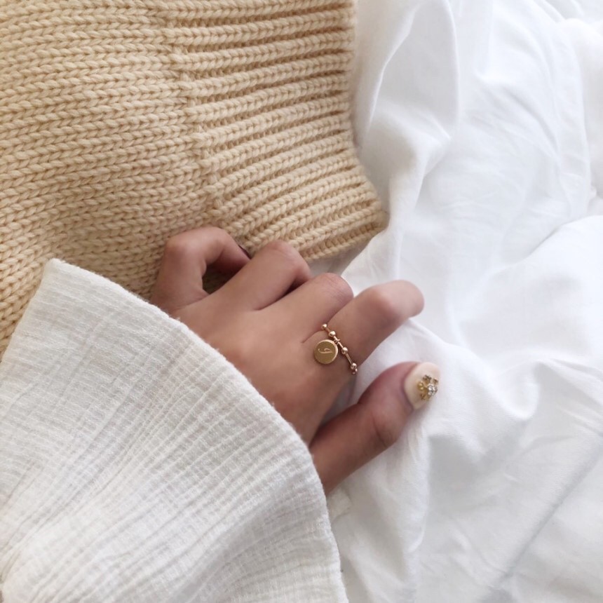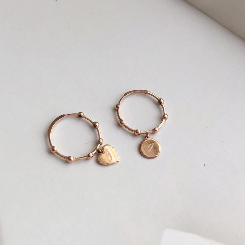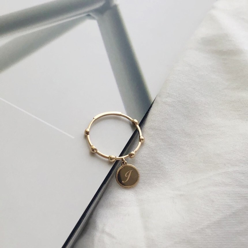 14K 18K 라운드 이니셜 각인 스윙 볼 반지